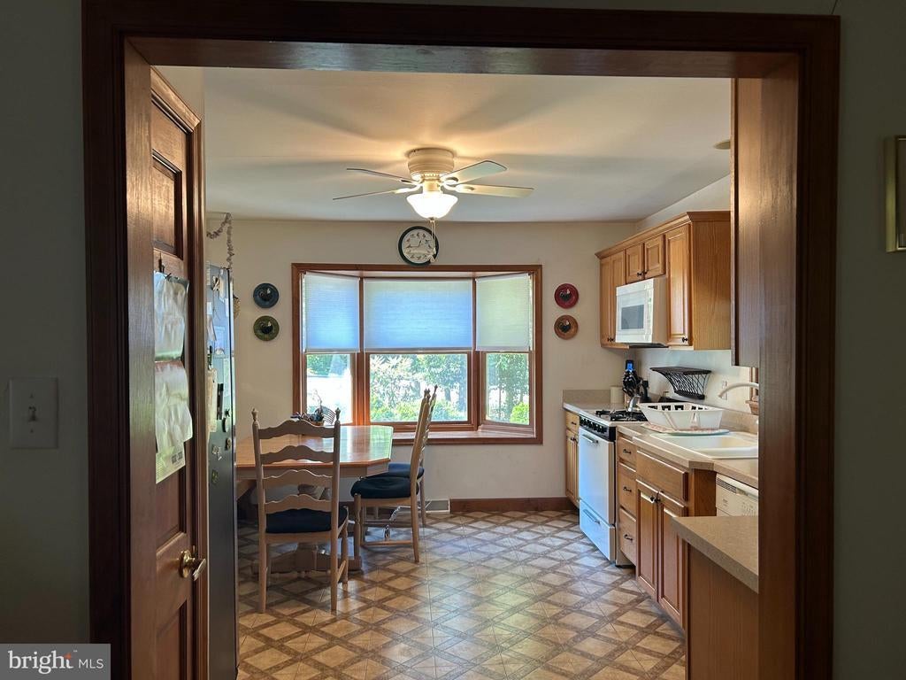 Welcome home to Gibbsboro! This homey ranch features a comfortable, flowing floor plan, hardwood floors and wood trim throughout, and a full kitchen with a beautiful bay window. Kitchen, living room and three bedrooms all have ceiling fans. Full basement & one car attached garage overhead door 7'H x 12'W. Two car detached garage, Oversized. 27' x 27', two overhead doors 8' x 8'. One bay has car lift (air compressor).