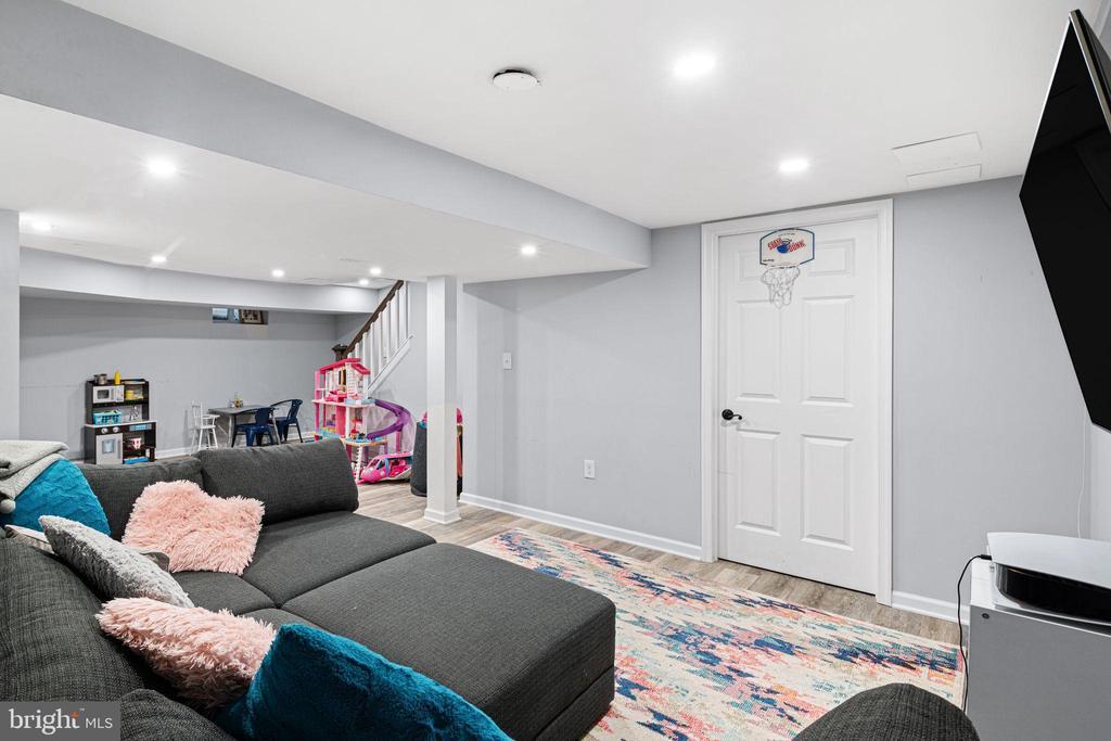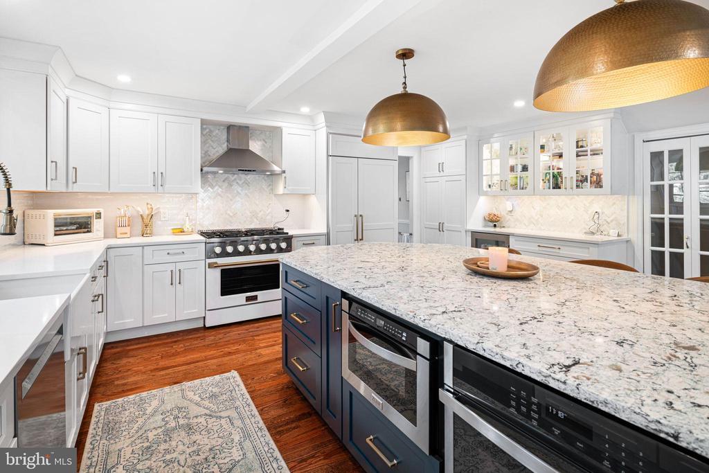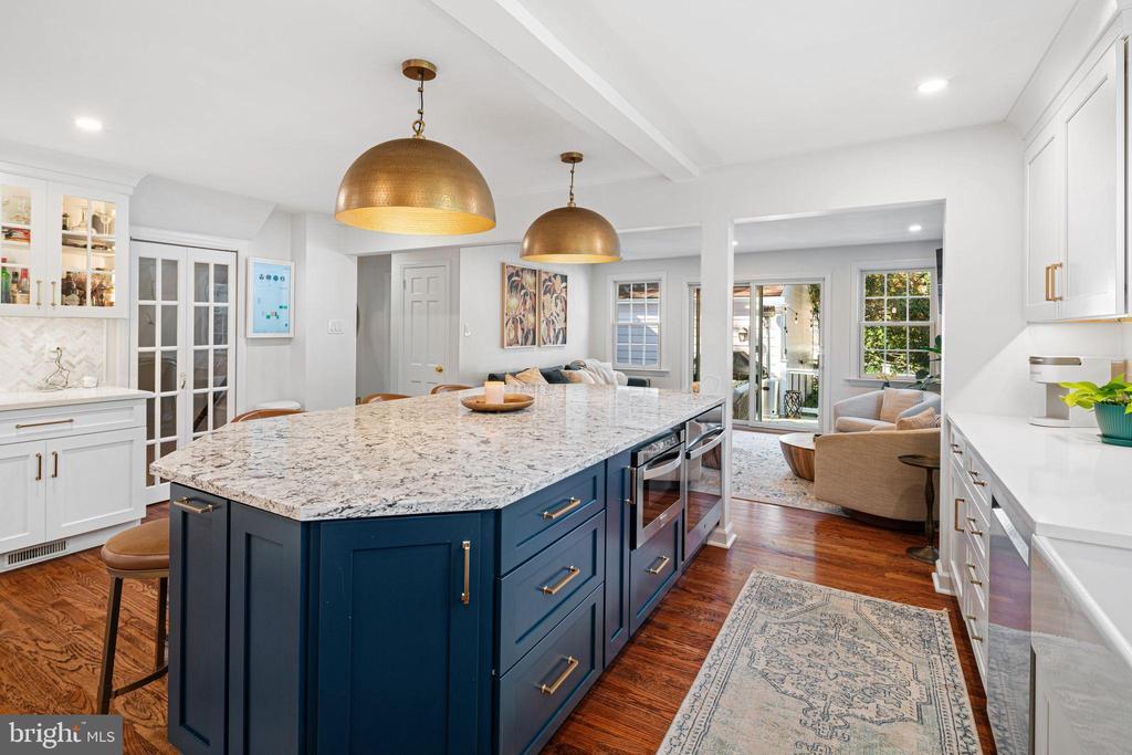 Located in one of Haddonfield's most prestigious neighborhoods, this move-in ready home offers the perfect blend of modern luxury and classic charm. Upon entering the elegant foyer, you are greeted by an expansive, sun-drenched living room anchored by a gas fireplace and a huge wall of windows. An elegant dining room provides a spacious setting for hosting unforgettable holiday dinners and family gatherings. The heart of the home is the spectacular kitchen and family room combination, reminiscent of a spread in Architectural Digest. A massive island with seating for five is the centerpiece, surrounded by high-end appliances, including two ovens and a wine fridge. This culinary dream space also features a large pantry and abundant cabinet storage. It flows seamlessly into a bright and comfortable family room, with direct access to an expansive back deck and a lush, private yard. The first floor is completed by a versatile office that doubles as a functional mudroom and a sunroom—the perfect spot to unwind with a cocktail and a good book. A full first-floor bath adds convenience and offers potential for conversion to a first-floor guest suite. Upstairs, the home features three spacious bedrooms, each with ample closet space. The primary suite includes two walk-in closets, with the option to easily convert one into a luxurious primary bathroom. A charming and thoughtfully updated full bath serves the additional bedrooms. The partially finished basement provides flexible space for a kids' hangout, a home gym, or a media room, while plenty of extra storage can be found in the basement and the attached two-car garage. Mature landscaping creates a serene, private backdrop for your backyard retreat.