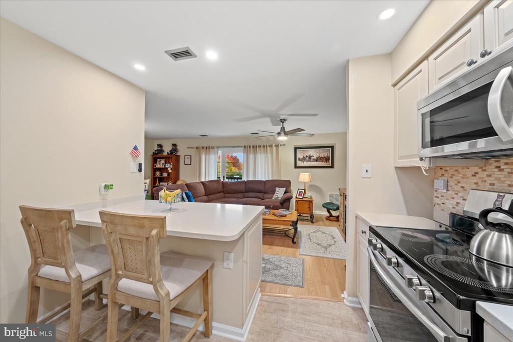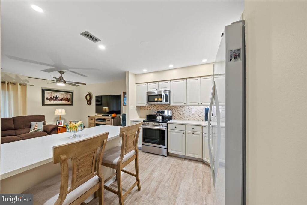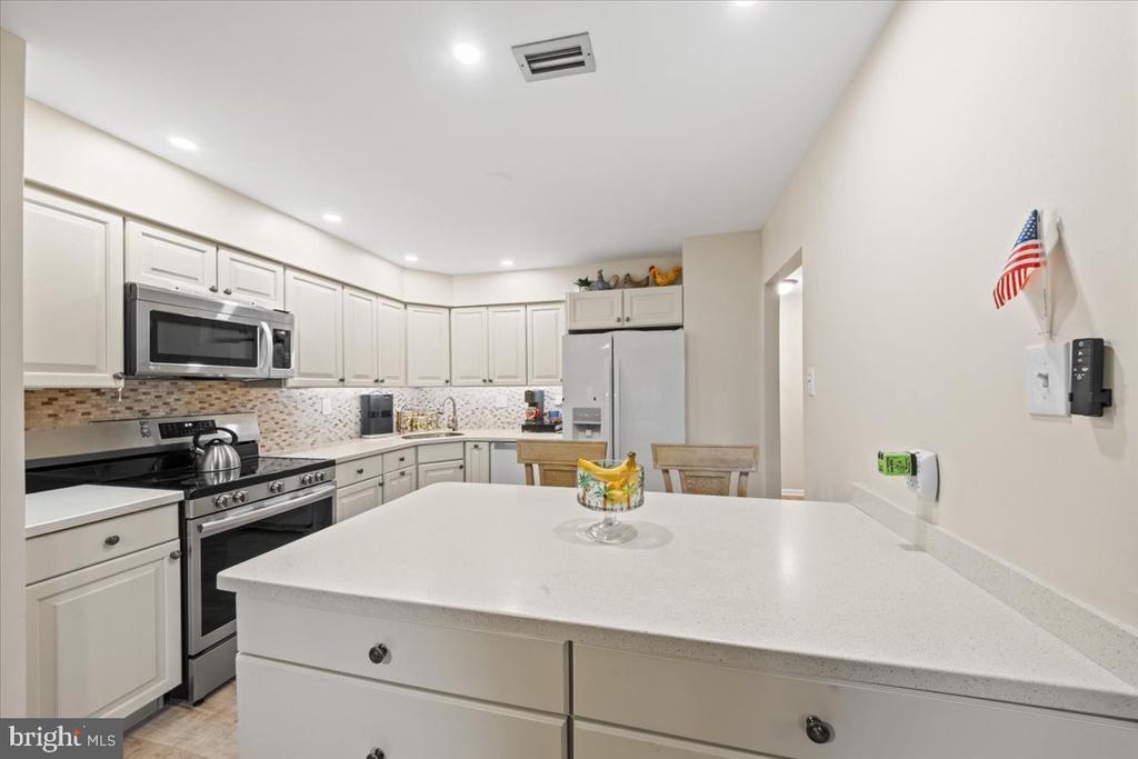 Haddonfield Commons presents an exciting residential opportunity with the rare Penn III-B Model located in the Plaza Building. Our three-bedroom, two-bath condominium offers modern amenities and a functional open-concept, sophisticated single-level floor plan. The updated kitchen features beautiful off-white cabinetry, modern appliances, including a new stove and microwave, Corian countertops, tile backsplash and a peninsula for extra prep space and dining (designer chairs included). The Primary ensuite bedroom features a walk-in closet with organizers and an updated bathroom. The remaining two bedrooms share a beautifully renovated bathroom. You’ll enjoy relaxing outdoors on your private carpeted 20 ft balcony with a front row view to daily tennis matches. Additional upgrades comprise new HVAC, new Hardwood floors with wood-look ceramic floors in the Kitchen, Bathrooms and Laundry Room, new 6 panel doors, neutral painted walls, ceiling fans and Dining Room Chandelier. Community benefits include newer roofs on three buildings, modernized elevators in the Plaza Building, security cameras installed in the hallways that may qualify homeowners for an insurance discount, full-time Condo Manager and maintenance person on site, two assigned underground parking spots (#89 & #140) and a storage locker (#27). Haddonfield Commons' prime location offers easy access to PATCO, shopping, town amenities, top-rated schools, and major highways. Don’t miss this opportunity to live in the desirable Haddonfield Commons. Schedule your showing today and make this stunning condo your new home!
