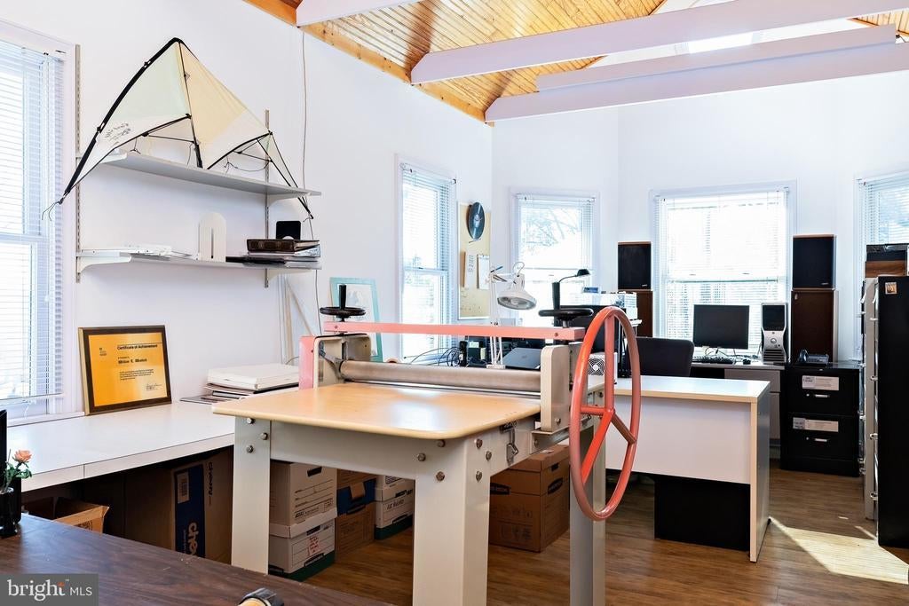 What a fantastic opportunity in the Haddon Heights Professional Office district, allowing residential and professional office as well as mixed use. This gorgeous home was built in 1915 and had an office addition (1992) expertly completed by the historical architects who have lived and worked here for the past 35 years. The grounds and building have been meticulously maintained. The property currently has a side-by-side owner occupied residence and office, a great detached two car garage, freestanding carport and back yard space as well as plenty of parking spaces.There are also many potential conversions that are allowable including a residential duplex or even a triplex. Those could create an incredible income producing property. While completely move-in ready as a 50/50 residence and office just the way it is, another option would be to convert the 2nd floor of the office to expand to a 5 BR residence, and still have 1st floor home office space. This would be perfect for a homeowner with a small business (and also would allow the property to be reclassified as all Residential). These are just glimpses of the potential. Architectural design services are offered to the buyer with an acceptable offer. The homeowners have included some initial sketches to show just some of the possibilities to suit your needs. Keeping it as it is now offers an ideal place to love where you live and work, with the current 2.5 story residential side and 3 story office side. The two sides are connected on the 1st and 2nd floors by interior doors. With the perfect blend of workmanship and woodwork only found in homes of that era, you can also enjoy the renovated kitchen (2016), beautiful master bathroom renovation in the primary bedroom complete with walk-in closet and laundry room (2021). Brick fireplace in the living room with a home theater projection system (negotiable). Gorgeous front porch, side office covered porch entrance, custom back deck complete with sail shade. New roof in 2016, upgraded electric, water softener system (2018), full basement with walk-out door. Please call with any questions. Make your appointment today to see for yourself how truly unique and special this chance is to own in such a great location in Haddon Heights.