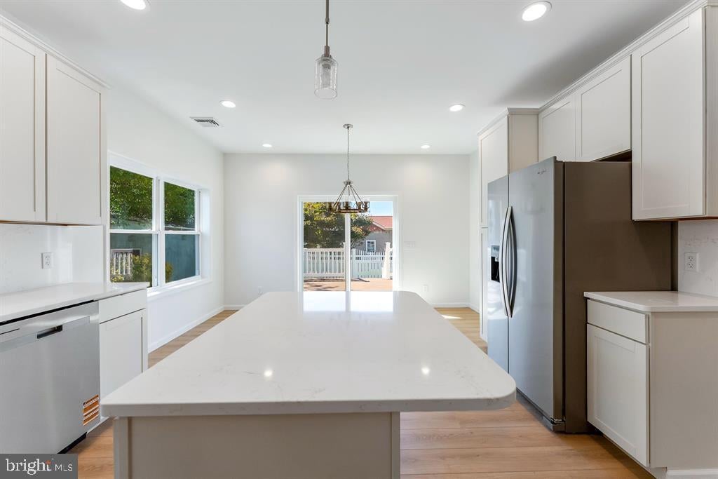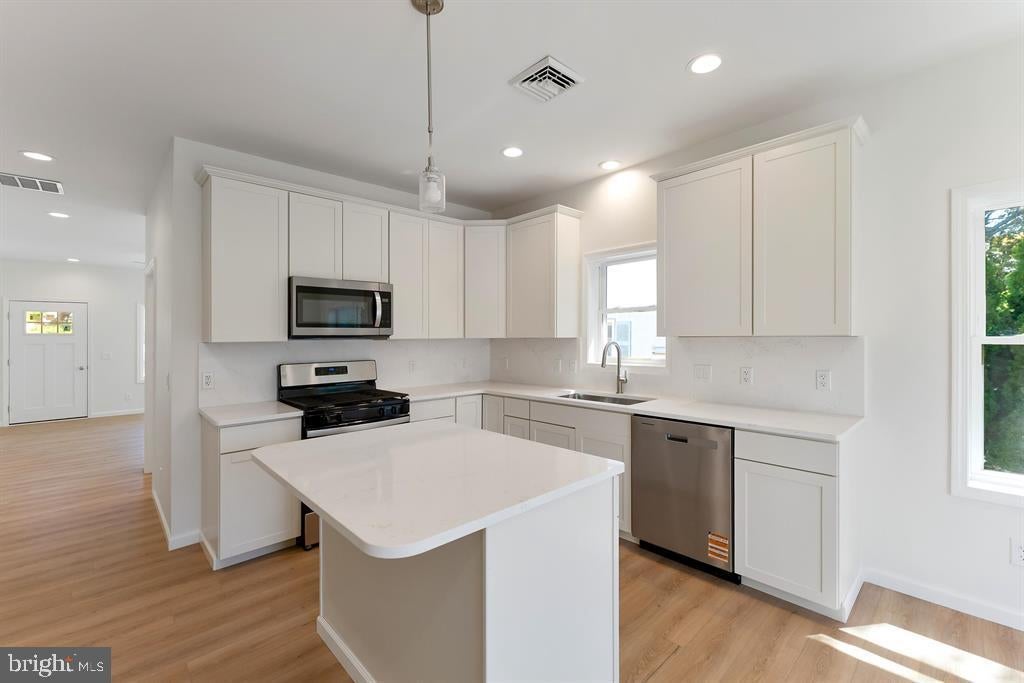 Located just eight houses from the serene bay beaches and stunning sunsets of the Delaware Bay, this brand-new construction home offers the perfect blend of comfort, style, and coastal living. Step inside to a bright and inviting living room that flows seamlessly into a custom kitchen featuring shaker-style cabinets, quartz countertops, a center island, and stainless-steel appliances. The adjoining dining area includes sliding glass doors that open to a spacious 12' x 30' Trek deck—perfect for entertaining or enjoying summer evenings. The private primary suite includes a full bath and a generous walk-in closet, while two additional bedrooms provide ample storage. A convenient hall storage closet/pantry and dedicated laundry room with an exterior door add to the home’s functionality. Additional highlights include gas heat and central air, on-demand water heater, luxury vinyl plank flooring, ceiling fans throughout, sodded yard with irrigation system, raised foundation with flood vents and two-car stone driveway With its ideal location just steps to the Delaware Bay, this home is the perfect choice for a summer getaway or comfortable year-round living.