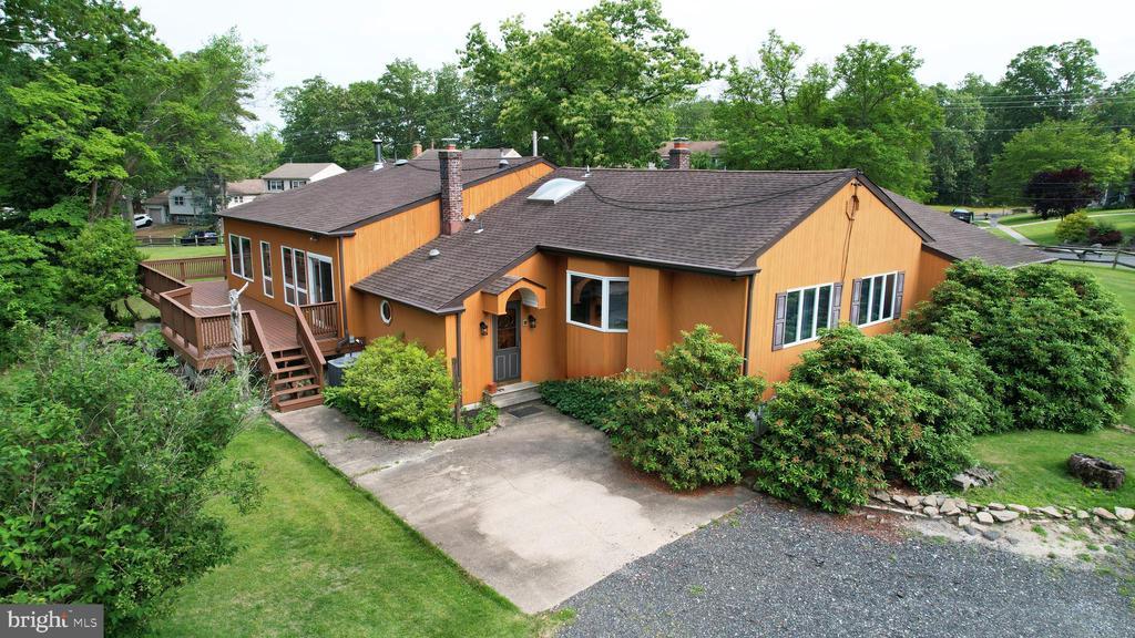 Step into a home like no other- this distinctive split ranch is bursting with personality, potential and architectural flair. Nestled on four buildable, subdividable acres, the property offers a rare opportunity for investors, creatives, or anyone seeking space and character in a private yet accessible location. Inside youll find Bruce hardwood floors throughout the main living area and a sunken conversation pit framed by panoramic windows- a magical spot to gather and watch the snowfall by the warmth and glow of the wood-burning stove (Vermont soapstone air tight stove). Stained glass windows and custom built touches add a timeless charm throughout the home. A wraparound deck overlooks the ample grounds. Outside youll also find an 8ft deep in ground pool- currently in need of restoration, but full of potential to reclaim its former beauty. Additional highlights include: - freshly painted interior -newer hvac system -tankless water heater -multiple garages and a detached barn (stalls have been removed) -Central vac system throughout -Large cedar closet in basement -fully finished rec room with wood burning fireplace (georgia marble), full bathroom, and marbled epoxy floors in basement -second basement space ideal for office with its own private entrance - distinct architectural details and add-ons throughout this home Whether you're an investor looking to subdivide and develop or a buyer searching for a one of kind homestead to make your own, this property is a MUST SEE. With space, charm and vision this treasure is ready to be reimagined.