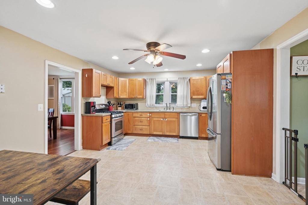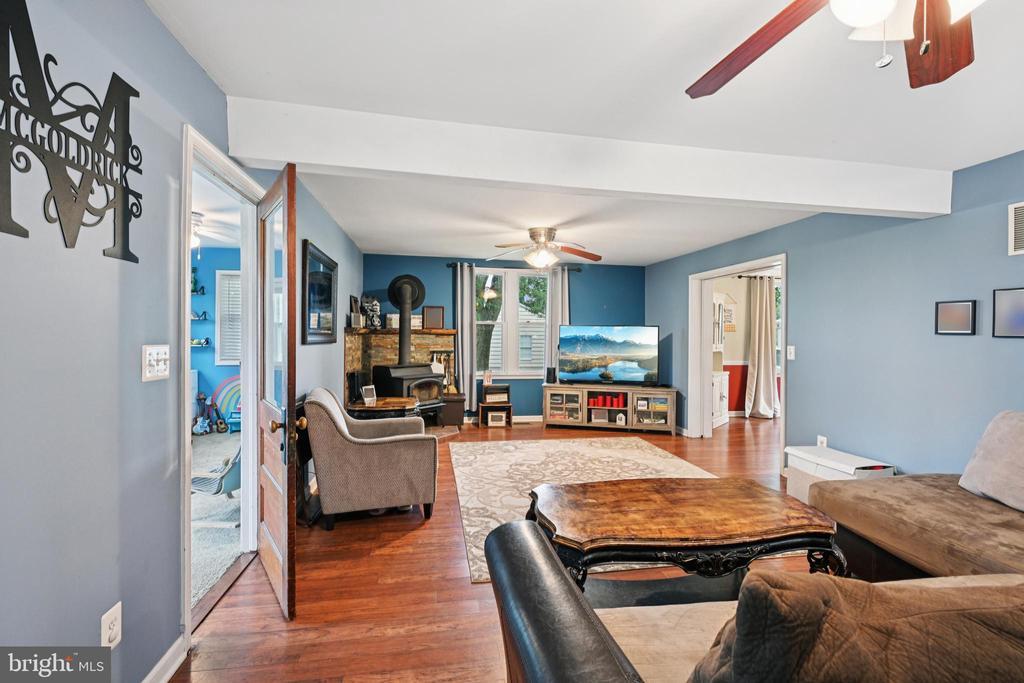 Welcome to 42 Jackson Street in Swedesboro—an updated and spacious 4-bedroom, 2.5-bath home featuring an oversized 2-car garage and low annual taxes. This well-maintained property offers a large mudroom with first-floor laundry and a half bath that includes additional closet space and pantry access to the eat-in kitchen. The kitchen is equipped with stainless steel appliances and generous counter space, perfect for everyday cooking and entertaining. A formal dining room with crown molding, chair rail, and chandelier provides a classic touch. The family room features an arched entry with pocket sliding doors and a stone hearth wood stove, complete with a blower system for supplemental heat. A sun-filled, four-season sunroom overlooks scenic farm fields—ideal for morning coffee or quiet relaxation. Upstairs, the primary suite includes double closets and a private bath with ceramic tile flooring, stall shower, and vanity. Three additional bedrooms offer ample space and ceiling fans. The full hall bath includes a tub/shower with tile surround, ceramic tile flooring, a vanity, and linen closet. The attic adds bonus storage space. The basement features a French drain system, Bilco doors to the backyard, and generous storage. The oversized garage is outfitted with a 100-amp subpanel, compressor line plumbing, utility sink with hot and cold water, custom-built dry bar, and plumbing for a wood stove. A large driveway provides ample off-street parking. This home combines functionality, space, and comfort in a peaceful setting. Schedule your tour today!