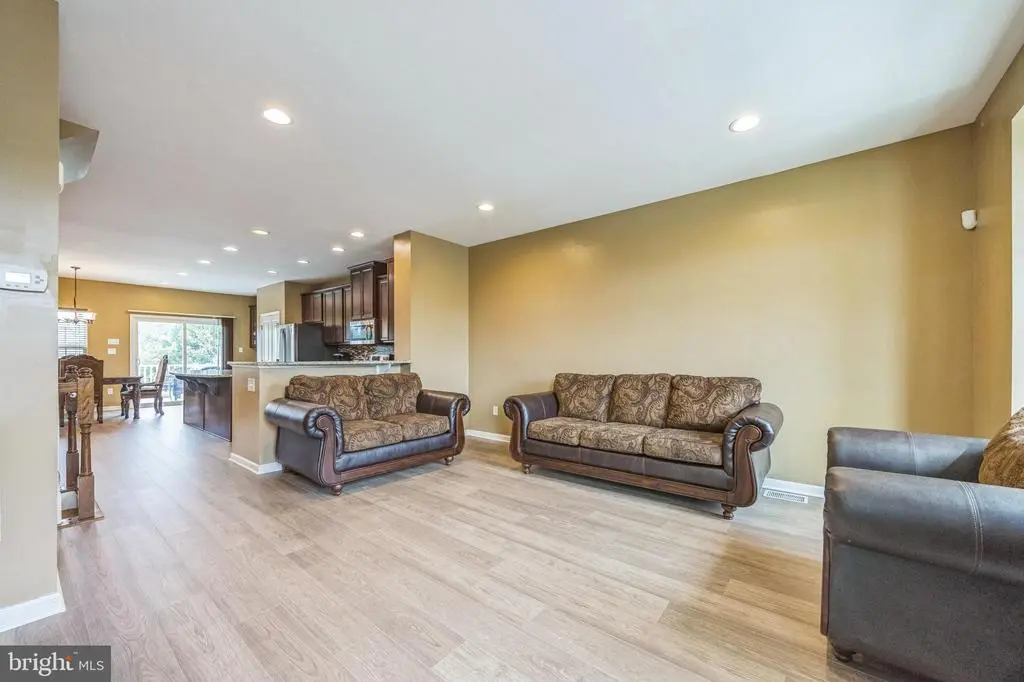 BACK ON THE MARKET and a PRICE IMPROVEMENT! Nestled in the highly desirable Parkwood Manor community, this beautifully updated townhouse is the LARGEST MODEL AVAILABLE and exudes sophistication and comfort at every turn. With three spacious bedrooms, two full bathrooms, and a stylish half bath, this move-in ready home offers thoughtful design and exquisite details throughout. Crown molding throughout, complementing the luxury vinyl flooring and fresh, modern, paint palette. The lower level welcomes you with new flooring in the foyer and powder room, and features a generous wet bar ideal for entertaining. A glass door leads to a private backyard oasis, perfect for quiet evenings or lively gatherings. Upstairs, the main level boasts a gourmet kitchen equipped with granite countertops, a tiled backsplash, coffee bar, pantry, and an island with granite top. Sliding glass doors connect the dining area to an elevated deck, expanding the living space into the outdoors. The upper level is a haven of comfort, featuring a serene primary bedroom with a tray ceiling, walk-in closet, and a spa-inspired en-suite bath with a soaking tub, a large walk-in shower, and exquisite tilework. Two additional well-sized bedrooms and a conveniently located laundry area complete this level with functionality and ease. Located within easy reach of Philadelphia and the Jersey Shore, this exceptional home also includes a transferable PWSC warranty for added peace of mind. Discover the perfect blend of elegance and practicality in a community known for its charm and convenience. Room dimensions taken from builders specs are rounded and vary slightly. The Guardian Security System is currently not activated. Property being sold "As-Is".