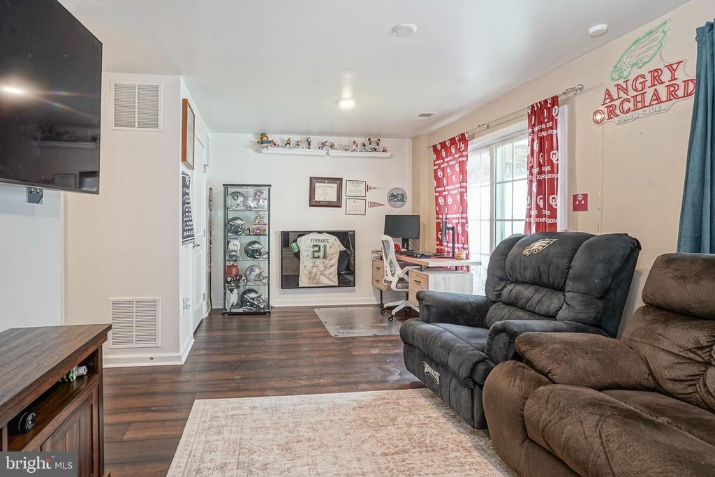 Welcome to Parkwood Manor! Beautiful 3-story townhome built by Ryan Homes in the desirable Parkwood Manor section of Washington Township. This home features a finished basement with living area to suit your own needs, also sliding glass door walk-out access to the fenced in backyard, powder room, 2 convenient closets and also an entrance to a one-car garage. The main level offers a spacious kitchen with center island, stylish countertops, ebony cabinetry, and a deck with built-in gas grill—perfect for all your entertaining. The adjacent dining room and cozy family room round out the main level. Upstairs, the primary suite includes a walk-in closet and en-suite bath with shower stall. Other features include stylish Crown molding throughout, beautiful hardwood flooring and convenient laundry on the upper level. Secondary bedrooms are generously sized with ample closet space. With easy access to Route 55, major highways, shopping, restaurants, and medical facilities and walking distance to beautiful Atkins Park, the location is a winner. Also, the development has an agreement with the next door loan center for additional parking. Come look then make the investment.