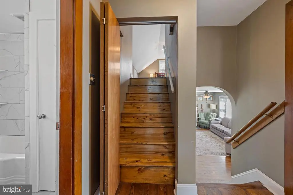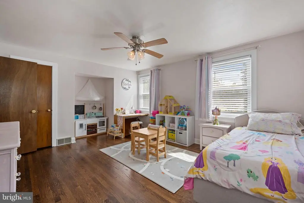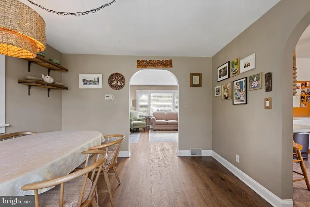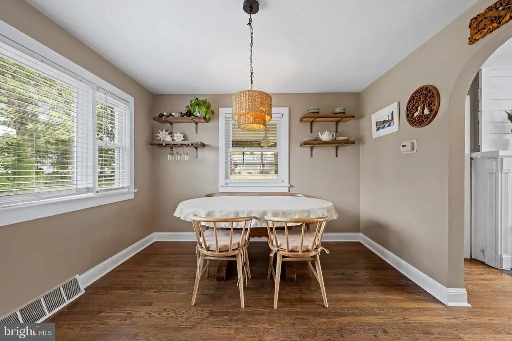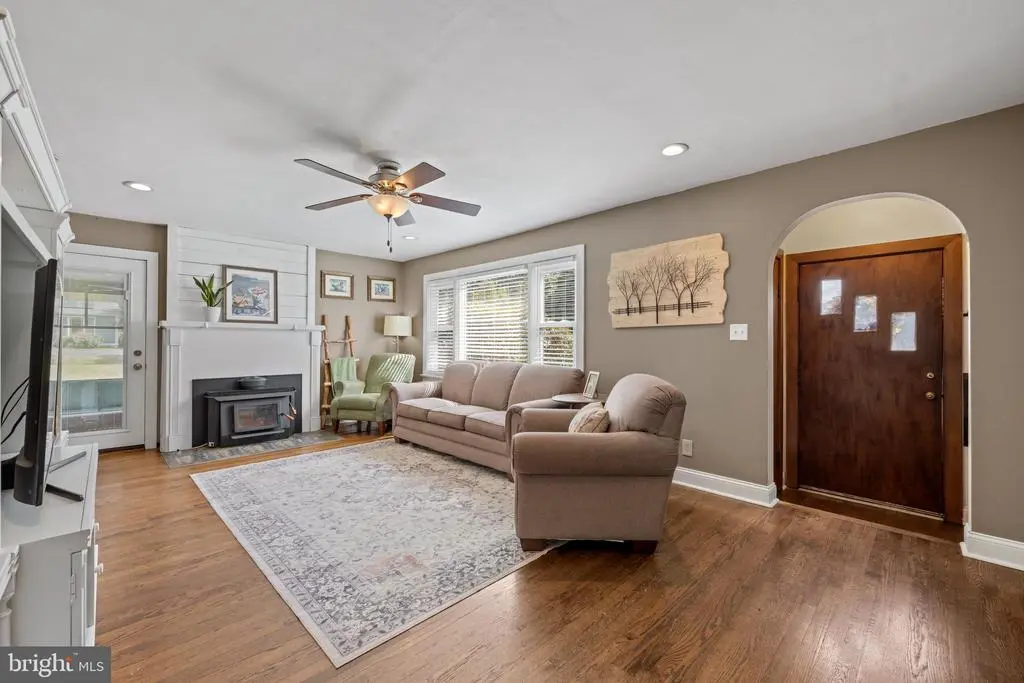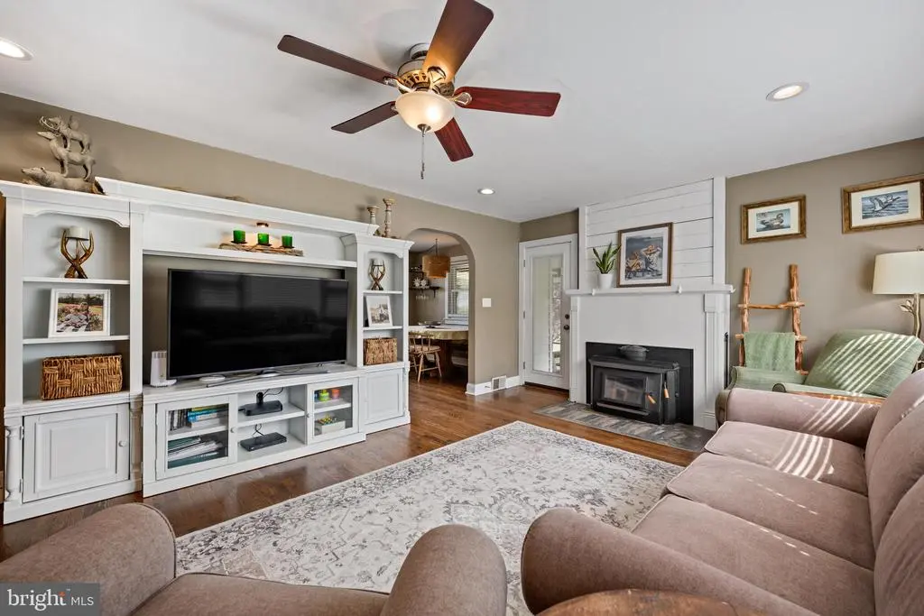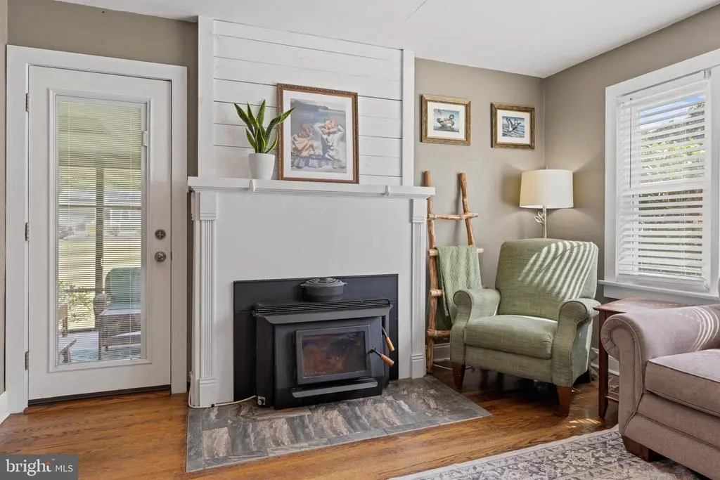 Step inside this beautifully maintained 4-bedroom, 1.5-bath home and instantly feel the warmth of natural light streaming across elegant hardwood floors throughout. The inviting living room features a charming wood-burning stove, creating the perfect setting for cozy evenings. Flowing seamlessly from the dedicated dining room to a well-appointed kitchen with a full stainless steel appliance package, the home is designed for both comfort and an easy flow. Upstairs, two spacious bedrooms share a beautifully updated full bath, while the secluded third-level primary suite offers a private retreat with an abundance of built-in storage and closet space. A fourth bedroom off the living room doubles as the perfect in-home office. The finished garage has been transformed into a stylish entertainment space with its own half bath, easily reverted to a garage if desired. The basement provides generous storage, laundry, and flexible space for hobbies or workouts. Outdoors, enjoy a large screened porch, manicured landscaping, and a corner lot with plenty of play space to enjoy the outdoors. The expansive asphalt driveway provides ample parking for both daily living and all of your entertaining needs when hosting family and friends. Just blocks away from a serene lake and a vibrant downtown with coffee shops and dining, this home offers an amazing experience both inside and out. Welcome home!