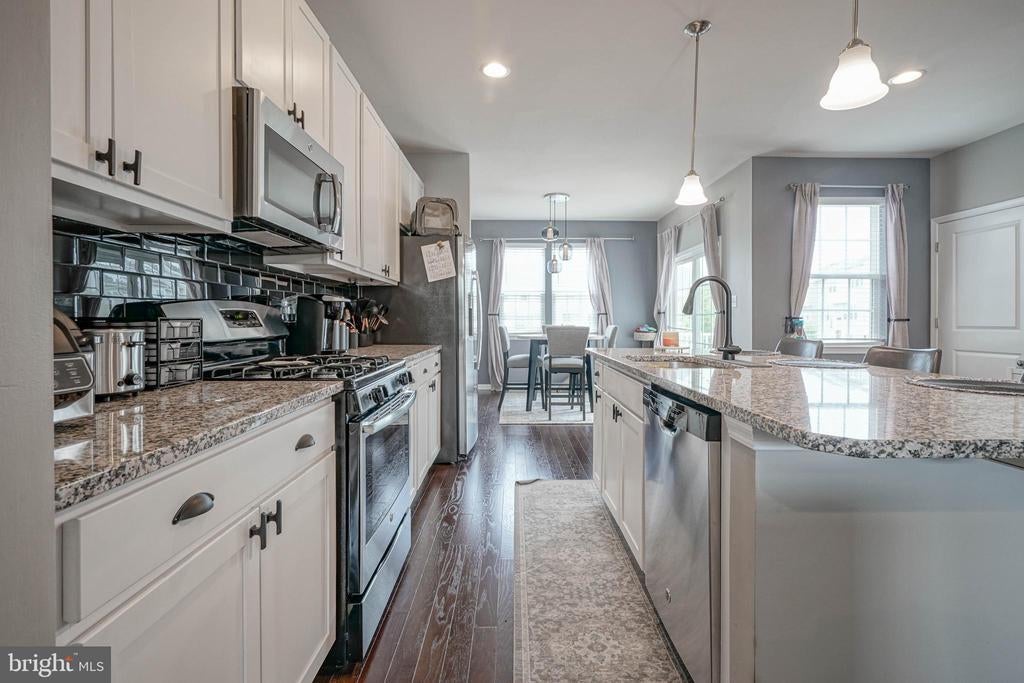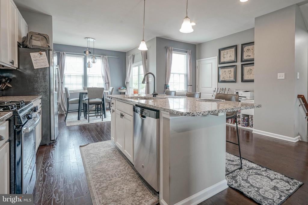 END UNIT Executive Style 3-story Townhome in Villages at Washington Square in Deptford Twp just "stone's throw" from the Mall area. Home is located on a Cul-de-sac. This unit is upgraded with a Bump Out for additional square footage on all 3 levels. Walk in to the Lower Level with a Family Room boasting engineered hardwood flooring and sliding door leading to the back yard. One half bath located on Lower Level and one on Main. Main Level features a bright Open Floor Plan witth Large Windows allowing plenty of natural light in. Gourmet Kitchen has 42"inch White Cabinetry, Granite Countertops, huge Center Island, Stainless Steel Appliance Package and Pantry. Kitchen has Open Floor Plan to the Dining Area and Living Room. Engineered Hardwood Floors on the Main Level as Well. Recessed Lighting Throughout. Sliding Door leading onto a Maintenance Free Trex Deck. Upper Level houses the Primary Bedroom Suite with Vaulted Ceilings, Sitting Room, Huge Walk-In Closet and a Private Bath. 2 Additional Bedroom, Hall Bath and Laundry Room complete this Level. Neutral Carpeting on the Upper Level. 2-Car Garage. Close to area shopping and restaurants. Easy access to local highways for convenient commute to Philadelphia, Wilmington and the Shore Points. Make your appointment today.