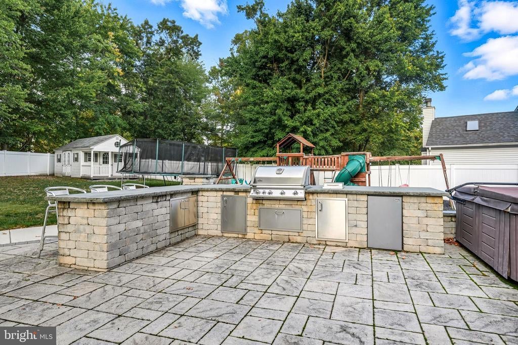 This stunning 4-bedroom, 2.5-bath home sits on an oversized lot with a fully fenced yard, perfect for entertaining. The backyard is an outdoor oasis featuring a spacious paver patio complete with a built-in firepit and grill/kitchen area. Inside, enjoy modern updates throughout, including a stylish kitchen, refreshed baths, and a cozy living area with gas fireplace. The partially finished basement adds extra living or recreation space, and the attached 2-car garage offers convenience and storage. A perfect blend of comfort, function, and style in one of Deptford’s most desirable neighborhoods!