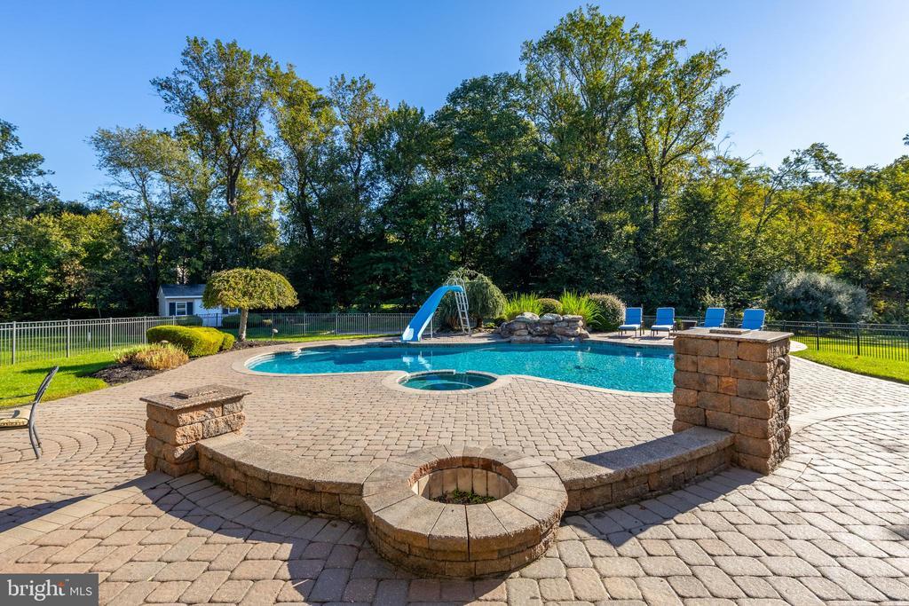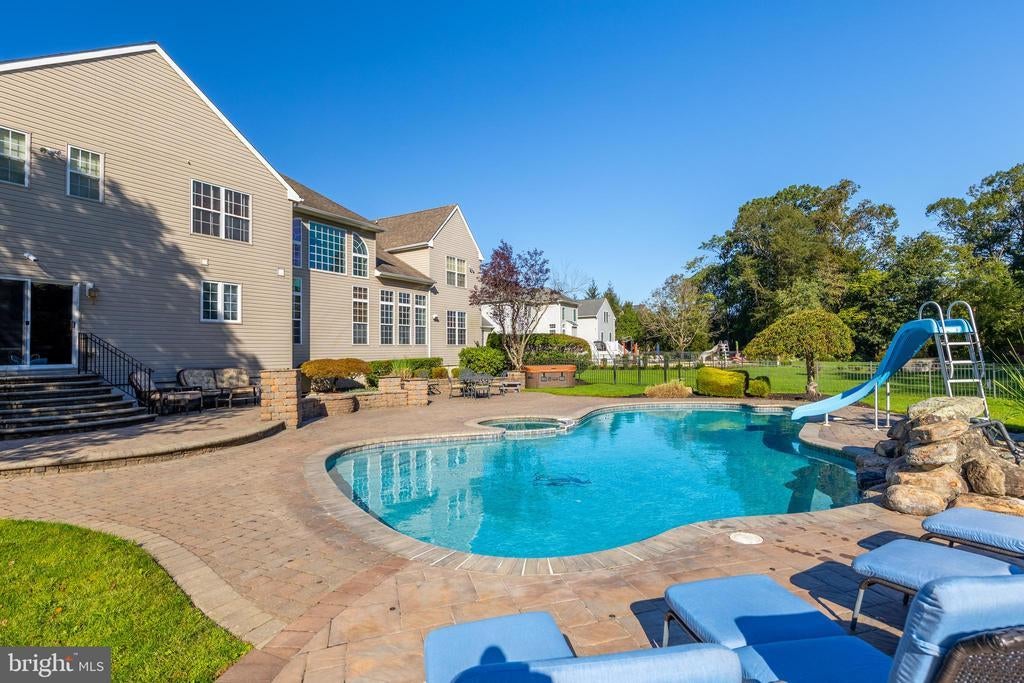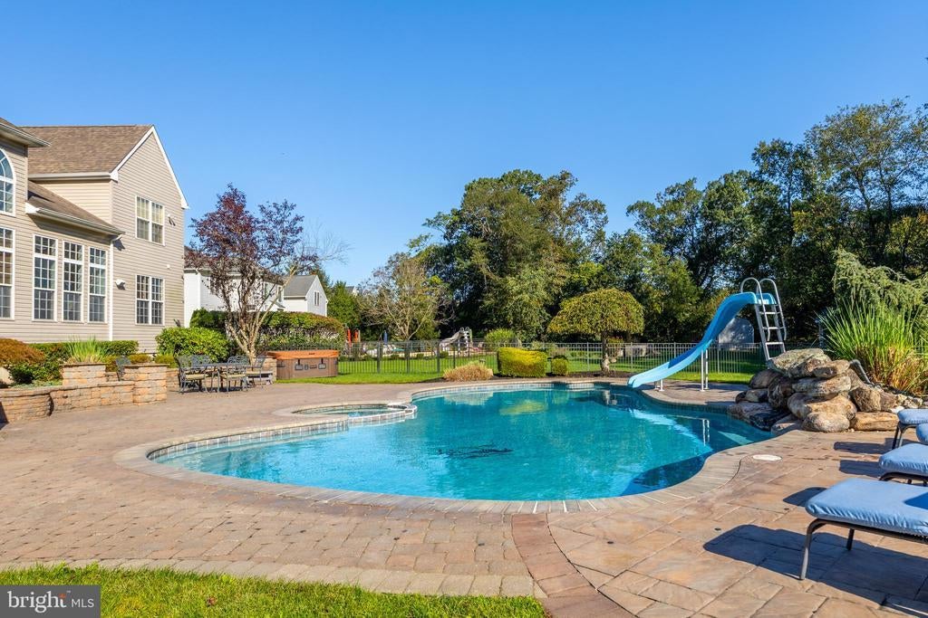 Welcome to this luxurious, executive home nestled in the highly sought-after community of Nature’s Walk. Designed with timeless elegance and comfort in mind, this stunning 4-bedroom, 4.5-bath brick residence offers a perfect blend of sophistication, functionality, and resort-style living. Step through the grand foyer and be greeted by an open and inviting floor plan that flows seamlessly throughout. The formal living and dining rooms provide an elegant setting for entertaining, while the spacious family room, complete with a cozy gas fireplace, opens to the gourmet kitchen—a true chef’s delight featuring granite countertops, stainless steel appliances, a large center island, and a bright eat-in area overlooking the backyard oasis. A private study offers the ideal setting for working from home or quiet reflection. Upstairs, the primary suite is a serene retreat with a sitting area, walk-in closet, and a spa-inspired en suite bath boasting a soaking tub, walk-in shower, and dual vanities. The additional bedrooms are generously sized and share a well-appointed hall bath. Amazing entertaining space on main and lower floor, with game room, custom bar and THEATER room. Step outside and experience your own Backyard Paradise—an entertainer’s dream. The architecturally designed hardscaping and landscaping create an impressive setting for gatherings, complete with a built-in BBQ, patio, and a sparkling in-ground pool surrounded by lush greenery. A storage shed adds extra convenience for pool and garden essentials. Situated in a picturesque, tranquil neighborhood known for its walking trails, top-rated schools, and community charm, this home offers the perfect balance of luxury, comfort, and natural beauty. All this, just minutes from major commuting routes, airports, premier dining destinations, and the historic heart of downtown Swedesboro. Experience refined living at its finest—schedule your private tour today!