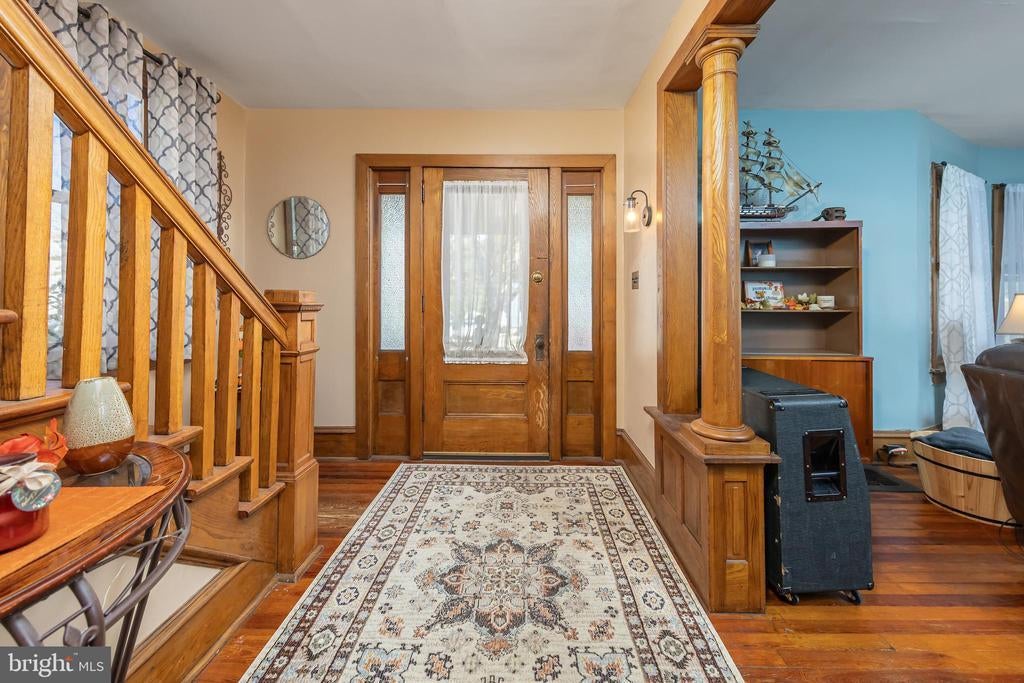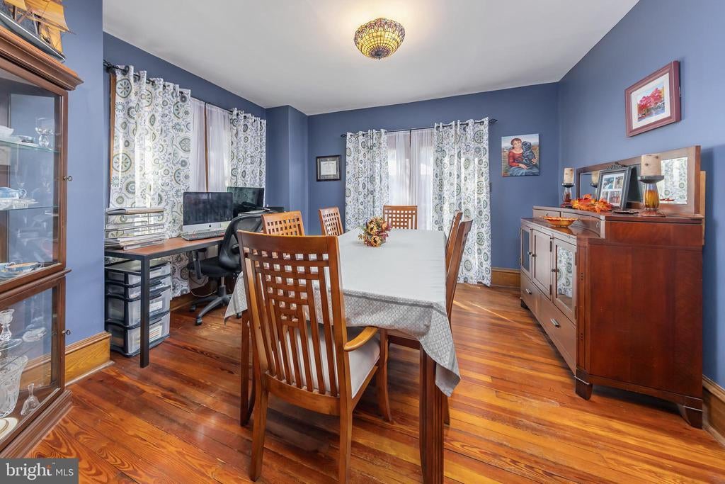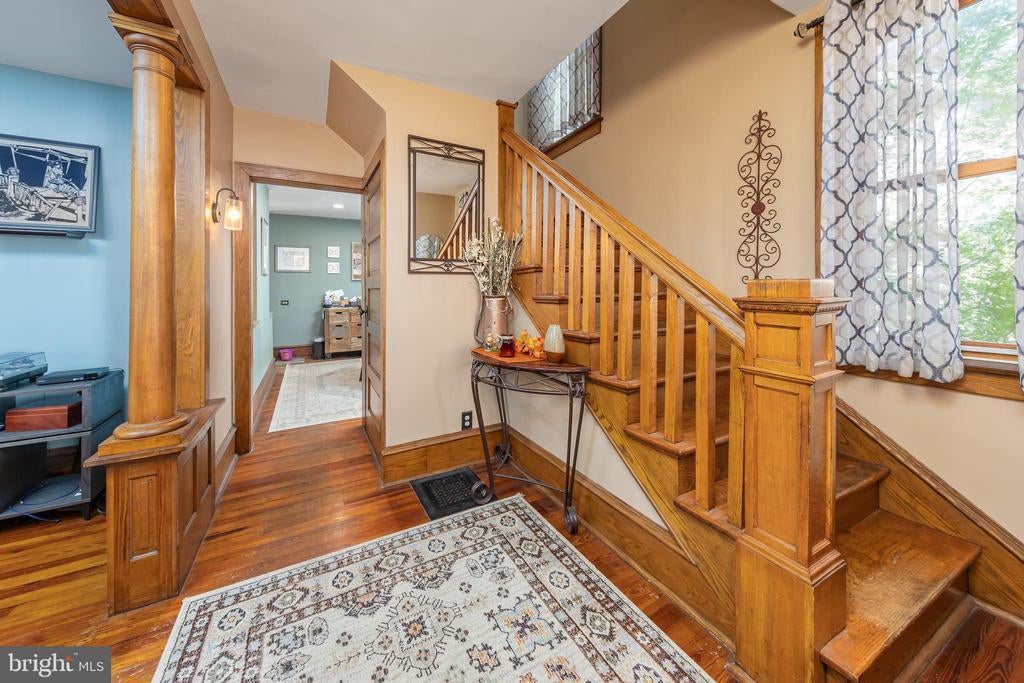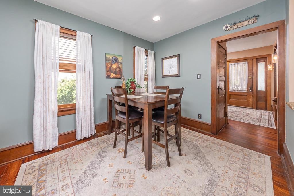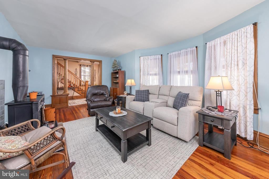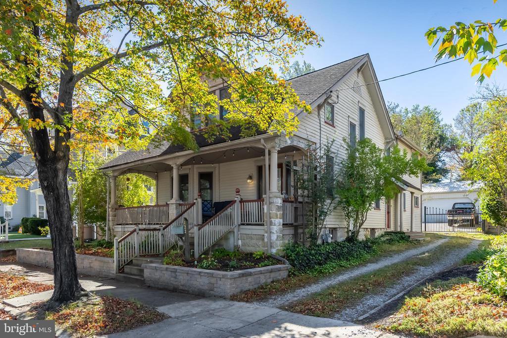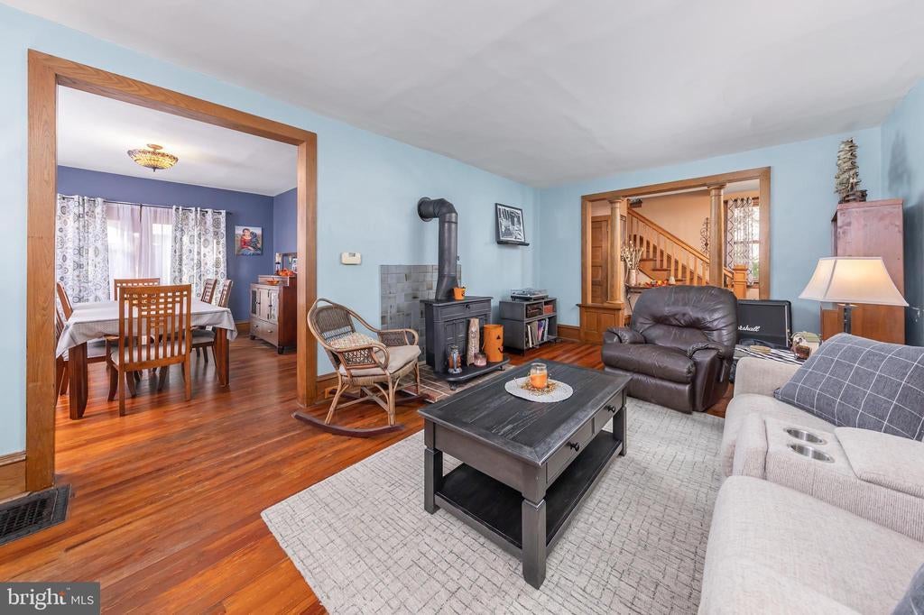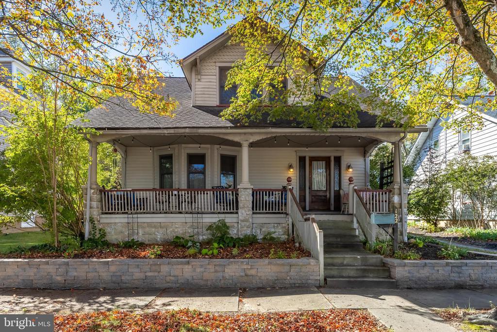 Welcome to this charming and beautifully preserved 4-bedroom, 2.5-bath home in historic Swedesboro! Bursting with character and architectural integrity, this home showcases timeless details including an original oak staircase with classic baluster railings, wide-plank hardwood flooring, and a cozy wood-burning stove that adds warmth and charm. A covered front porch invites you inside to a spacious formal dining room featuring a lovely bay window bump-out and access to the back porch—perfect for gatherings or relaxing evenings. The updated eat-in kitchen offers granite countertops, stainless steel appliances, a stainless hood, and plenty of cabinetry. Upstairs, the oversized primary suite impresses with hardwood floors and three closets, while all additional bedrooms feature generous walk-in closets. The renovated hall bath is tastefully updated, offering both comfort and modern style. Additional highlights include a large laundry room with pantry space, a versatile bonus room leading to the patio, and a basement with outside access. Enjoy peace of mind with newer Andersen windows, and newer water heater. The detached oversized garage provides ample storage and workspace. Blending original charm with thoughtful updates, this home offers the best of both worlds—historic character and modern convenience—all in the heart of Swedesboro!