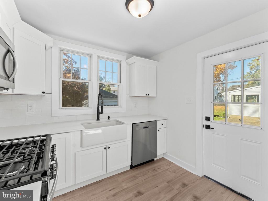 Welcome to this beautifully updated 4-bedroom, 3-bath home that blends modern finishes with functional design. Step inside to the inviting living room with warm-toned plank flooring that flows through most of the main floor. The living room and formal dining room layout create the perfect gathering space for entertaining and relaxing with friends and family. The eat-in kitchen features granite counters, tile backsplash, a farmhouse style sink and white shaker style cabinetry. One bedroom, along with a full bath and laundry hook-ups are also located on the main level. Upstairs, there are three additional bedrooms, with nice sized closets, ceiling fans and new carpeting, and two full bathrooms. All three bathrooms feature new vanities, mirrors, lighting, toilets, tile flooring, and tile tub surround. The unfinished basement provides ample room for storage. Other finishing touches include new 2-panel interior doors with lever handles and fresh paint in a neutral color palette. Outside, there is a nice size backyard and long driveway with a detached two-car garage making parking a breeze. Located just a quarter mile from the park and close to downtown Woodbury, this home has all of the charm and function that you have been looking for.