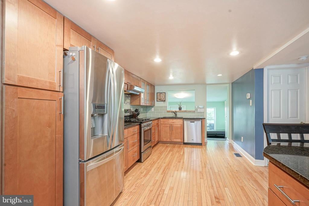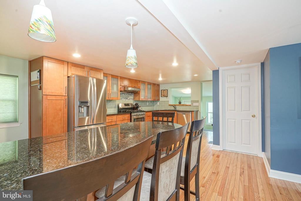 Welcome to this charming and beautifully updated 2-bedroom, 1-bathroom ranch-style home in Glassboro. Thoughtfully remodeled from top to bottom, this home combines classic charm with modern convenience. Step into the bright and open living room, where real hardwood floors flow seamlessly into the stunning kitchen. Designed for both function and style, the kitchen features custom soft-close cabinetry, granite countertops, a glass tile backsplash, and stainless steel appliances—including gas cooking. The peninsula offers seating for four, making it the perfect spot for casual dining or entertaining. A smart and open floor plan connects the kitchen and living area, with direct access to the backyard deck—ideal for indoor-outdoor living. The front entry includes a coat closet, and there’s an additional versatile storage or pantry closet between the kitchen and primary bedroom. The spacious primary bedroom offers plush neutral carpeting, a ceiling fan, and a large closet. The full bathroom has been tastefully renovated with tiled floors, a tile-surround shower, and a stylish vanity. Conveniently, the laundry area is tucked inside the generously sized bathroom. Toward the rear of the home, you’ll find a cozy mudroom and a sunroom that adds extra flexibility for lounging, hobbies, or enjoying morning coffee. Upstairs, the second bedroom and a separate office space feature ample built-in storage, including a large closet with built-in drawers and four additional smaller storage closets—perfect for organization. A full, unfinished basement offers even more storage or potential for future finishing. Outside, the fully fenced backyard and deck create a private retreat ready for gatherings, pets, or gardening. Situated in a walkable neighborhood with plenty of nearby shopping, dining, and everyday conveniences, this home also offers an easy commute to Philadelphia, Delaware, and popular shore points—blending lifestyle and location in one perfect package. Don’t miss your chance to own this move-in ready gem in one of South Jersey’s most convenient and desirable areas!
