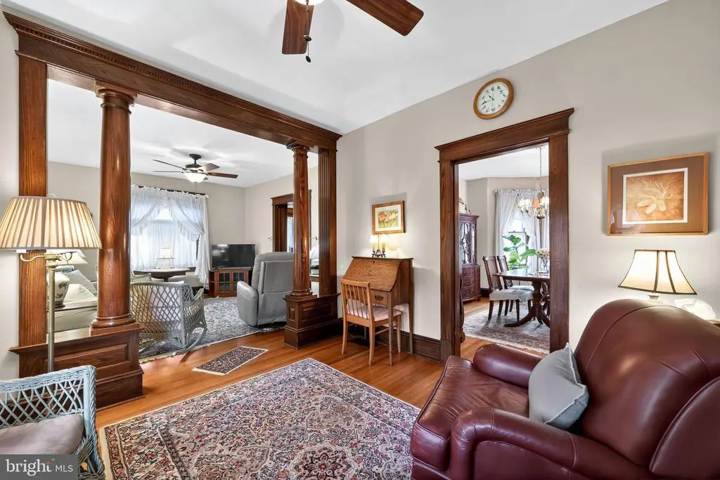 If you have been waiting for a meticulously maintained Colonial/Victorian in Pitman, NJ, the wait is over! Nestled in a serene setting, this exquisite Colonial-Victorian residence, built in 1906, seamlessly blends timeless elegance with modern comforts. With 4 bedrooms, 2 full bathrooms, Four Season Sunroom, 1+ car garage and a basement, this home offers an inviting atmosphere that is perfect for both relaxation and entertaining. As you step inside, you are greeted by the charm of classic architecture, featuring intricate moldings and stained glass that evoke a sense of grandeur. The living areas are bathed in natural light, creating a warm and welcoming ambiance. The thoughtful layout ensures that every corner of the home feels both functional and inviting. You will fall in love with the gorgeous chestnut woodwork the moment you walk through the original doorway. The pocket door leads you to even more beautiful woodwork in the living room and sitting room. The well appointed, bright kitchen is where culinary dreams come to life. Equipped with ample counter space, it is a chef's paradise. The adjoining dining room is perfect for hosting intimate dinners or larger gatherings, making it easy to create lasting memories with loved ones. All 4 bedrooms are spacious and provide generous closet space, comfort and versatility. Soak away the troubles of any day in the deep free standing tub located in the 2 floor full bathroom. The vintage light fixture is a focal point, not to be missed! The walk-out, dry basement is where you will find a workbench and shelving to store items with peace of mind. Step outside to discover the beautifully landscaped yard, where a sprawling lot invites outdoor enjoyment. The detached oversized garage and driveway provides ample parking and storage. The sunroom is the coziest place to retreat to and take in the beautiful surroundings. Whether you envision summer barbecues or quiet evenings under the stars, this outdoor space is a canvas for your lifestyle. This home is not just a residence; it is a lifestyle choice. Enjoy the peace of mind that comes with living in a well-maintained property that honors its historical roots while providing modern conveniences. It's more than just a place to live; it's a place to thrive. Don't miss the opportunity to make this exceptional property yours!