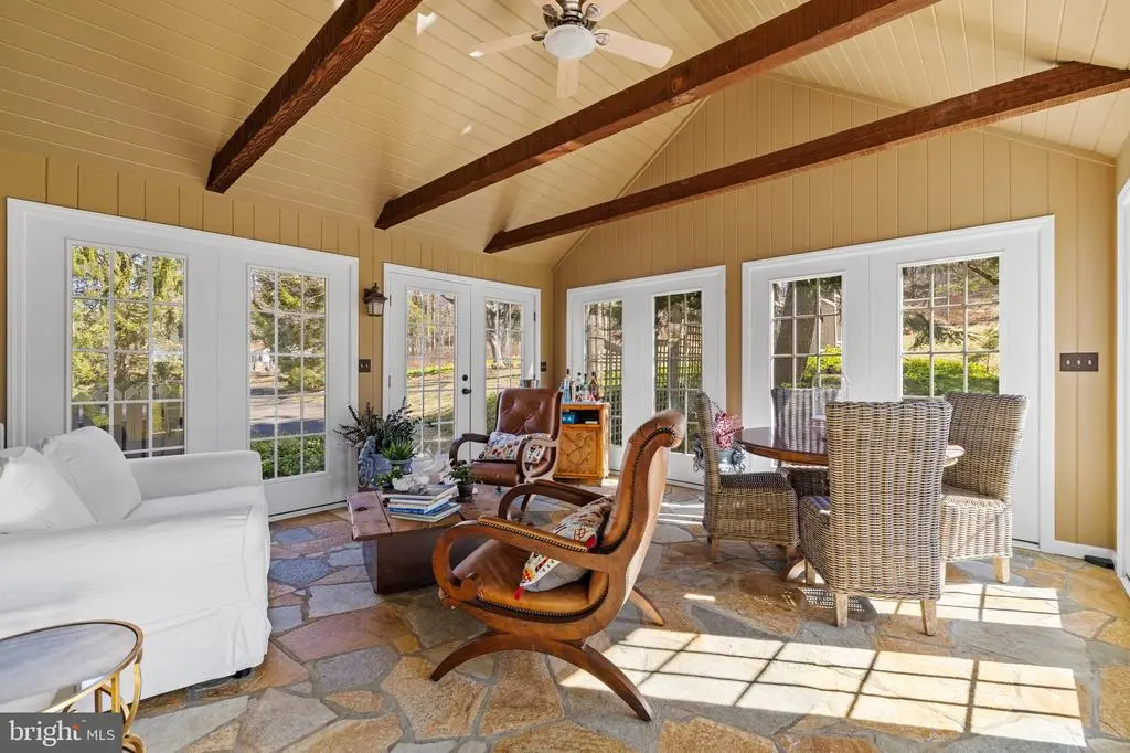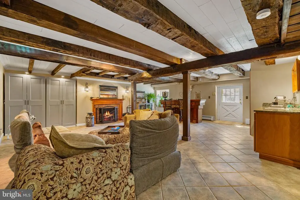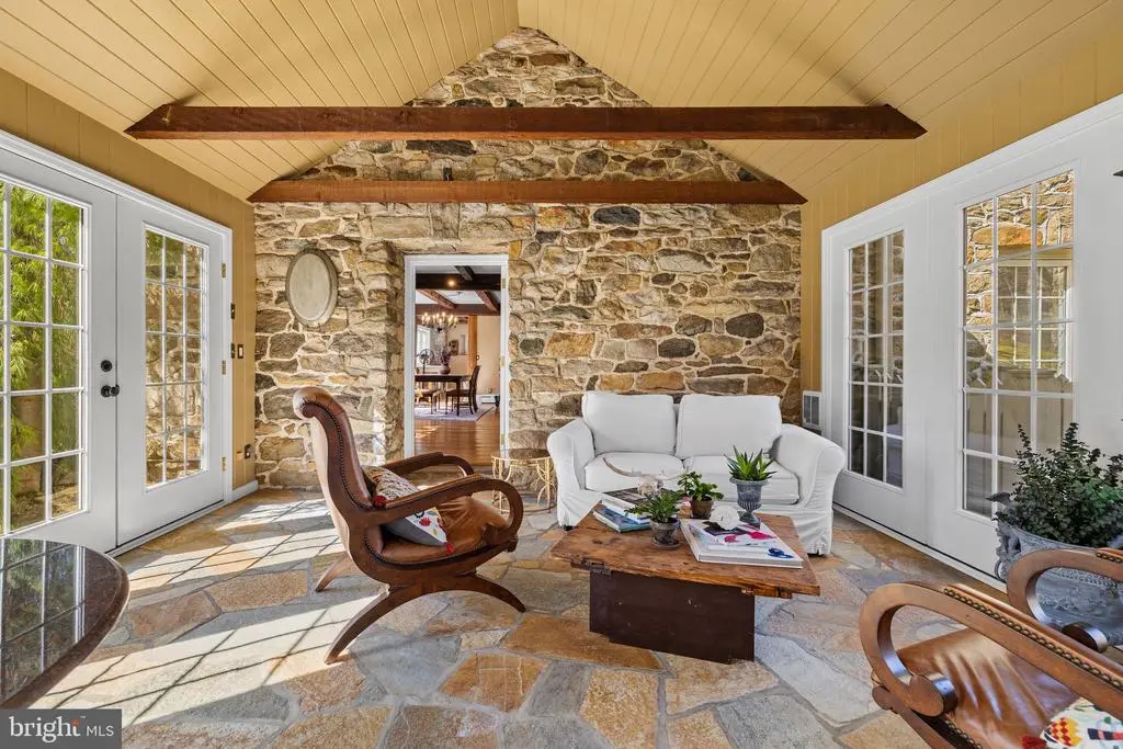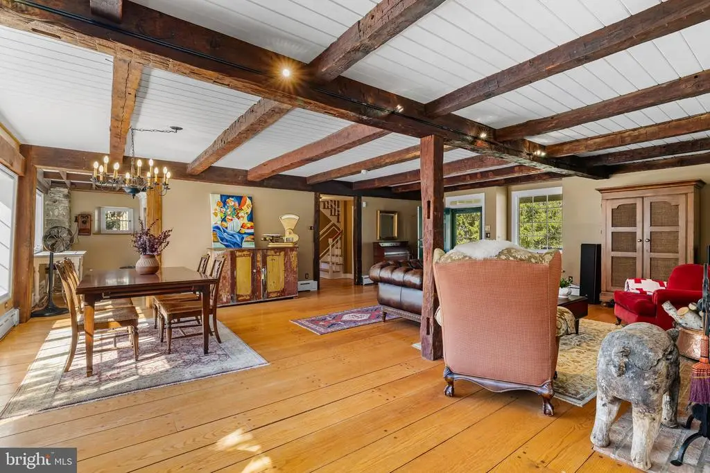 Welcome home to this meticulously maintained and ultra charming barn conversion in the quaint village of Mountainville. A stunning showcase of stone, standing seam copper and Vermont Slate on the exterior that sets the tone for the reclaimed wood and antique delights with fresh, modern amenities on the interior. Listen to the sounds of the babbling creek as you enter from the bluestone front porch and are instantly greeted with an open concept Gathering Room with gorgeous pine floors and propane fireplace, dining area with a wall of sunlit windows that leads to the Designer Kitchen with classic soapstone counters, farmhouse stainless steel sink, crisp white cabinets and high-end appliance suite. The 3 seasons sunroom is a fantastic space to enjoy with an exposed stone wall and access to the English gardens. The upper-level Primary Suite boasts Brazilian cherry floors, sitting area, enormous closet with separate make-up vanity and custom organizers, spa-like bath with soaking tub, bidet, double pedestal sinks and large frameless shower. The private Study provides access to the Main Suite and features wonderful ceiling heights, custom millwork, and herringbone patterned hardwood. 3 additional bedrooms, full hall bath and a convenient powder room are tucked away in a private corridor offering a fantastic respite for family or guests alike. The walkout lower level is an extension of the living space and demonstrates a new propane fireplace, bar area, access to the heated garage and the wonderful outdoor space. The barn offers endless possibilities with additional finished space that includes its own heating/cooling, an abundance of windows and a versatile loft. Additional amenities include a pergola, arbor, potting shed, front and back driveways, crushed gravel sitting areas, specimen plantings, deer fencing and more! This wonderful property is just over 3 acres and offers the privacy of a stand-alone estate but also has the unique connectedness of a community. Views of the wooded landscape, gardens, stone walls, water feature and rolling hills make this a special place to call home. Offering convenient access to Routes 78, 22 and 31 for commuting ease. This special property is immaculate and awaiting the next curator.