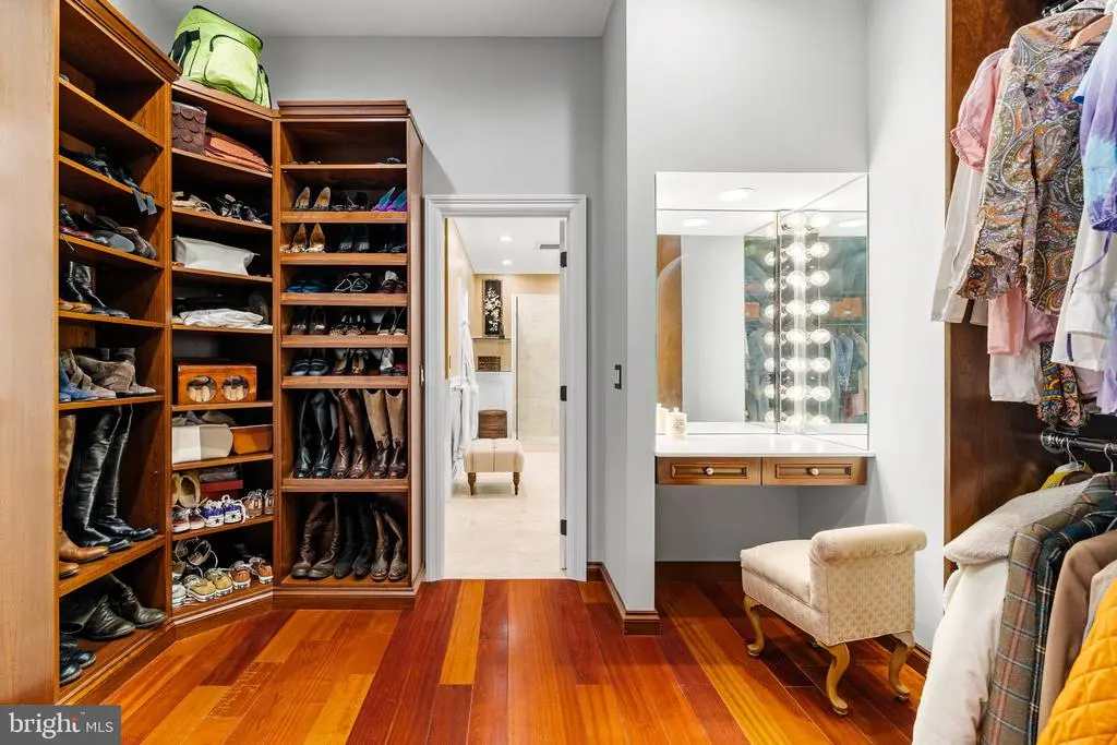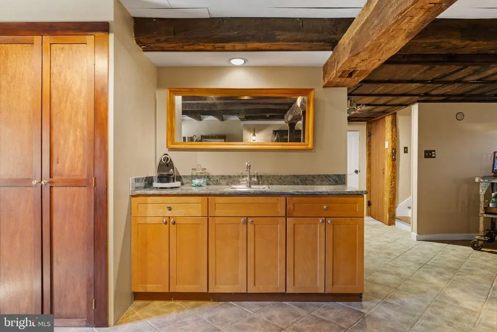 Bar, Bathroom - Soaking Tub, Exposed Beams, Primary Bath(s), Recessed Lighting, Upgraded Countertops, Walk-in Closet(s), Window Treatments, Wood Floors
