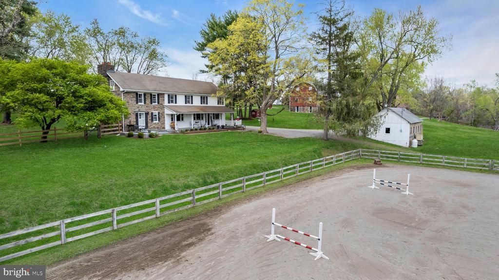 Welcome to iconic Statira Farm, a spectacular equestrian property that resonates with the lovely surrounding natural beauty! Prime acreage lends itself to continuing the storied past of a cattle farm or horse boarding facility. Perfectly situated on 46.9 acres in Hunterdon County’s Kingwood Township, this tranquil property offers purchase of not only a lifestyle but a legacy. Incorporating historic elements of the existing property with modern design & amenities, this turnkey farm is in essence it’s own ecosystem seamlessly operating in a harmonious balance. Equestrian facilities are impressive with the 110 x 63 COVERED CLEARSPAN RIDING ARENA with a sand&rubber base footing and overhead lighting taking the crown. The stately main barn in Gambrel style with gravel courtyard is a step away featuring 3 12x12 stalls in a bank barn shed row configuration, tack room & feed room plus hot/cold water utility. Ascend the stairs to find a fully functional second floor with electric and heat utilities which was previously used as a woodworking studio but can easily transform into a hobby, craft or antique storage area. Finally, the third floor offers a traditional hay loft area which could also transform into a casual entertaining space. A second detached horse barn offers 2 standard stalls & 1 oversize foaling stall plus storage and is across from a whimsical “red barn” used mainly for equipment storage as well as a neighboring detached garage. A short ride takes you to the additional 135 x 100 OUTDOOR RIDING ARENA with river sand footing. At the heart of the farm is a grand historic 4 bedroom 2 bath Colonial farmhouse with a whimsical front porch fronting the length of the house including the original stone home circa 1740…an entertainment & relaxation destination! The first floor features an inviting entry foyer, modern kitchen with stainless steel appliances, formal dining room with built-in cabinets, a delightful “pub” room, formal sitting room with original decorative fireplace & hallway full bath. As a bonus, a recent addition to further enhance the square footage of the home is the spacious family room with radiant heat floors and doors to access to the backyard patio. The second floor embraces this addition with an expansive primary bedroom suite overlooking the scenery of the farm. This level also includes 3 additional bedrooms, an office with Jersey winder stair access to lower level, hallway full bath & laundry/utility room. Step outside to a delightful setting for pure enjoyment! Follow the paths to walk or ride across lush acreage which features multiple grazing pastures dotted with run-in sheds for your equine athletes & companions plus a bonus 2 stall shedrow in the upper field. Do not miss the property trails which extend to the property lines for ability to ride and gallop your entire property! While on the upper tier of the pristine acreage, enjoy views of the 3 self-sufficient hay fields or catch a glimpse of local wildlife. While this property has been finely curated to enhance the equine experience, the features of this functional farm can easily transcend other agricultural endeavors such as a boutique livestock farm, heritage crop farm, private vineyard, herbary, apiary and onward. As a highlight, the property includes a 3 acre exclusion area from the total farmland preservation acres (43.9 acres). Within minutes to the fine culture and dining of Frenchtown, Stockton & Lambertville or cross the storied river to trendy New Hope! A location that cannot be duplicated, this majestic horse farm is a treasure for generations to come!