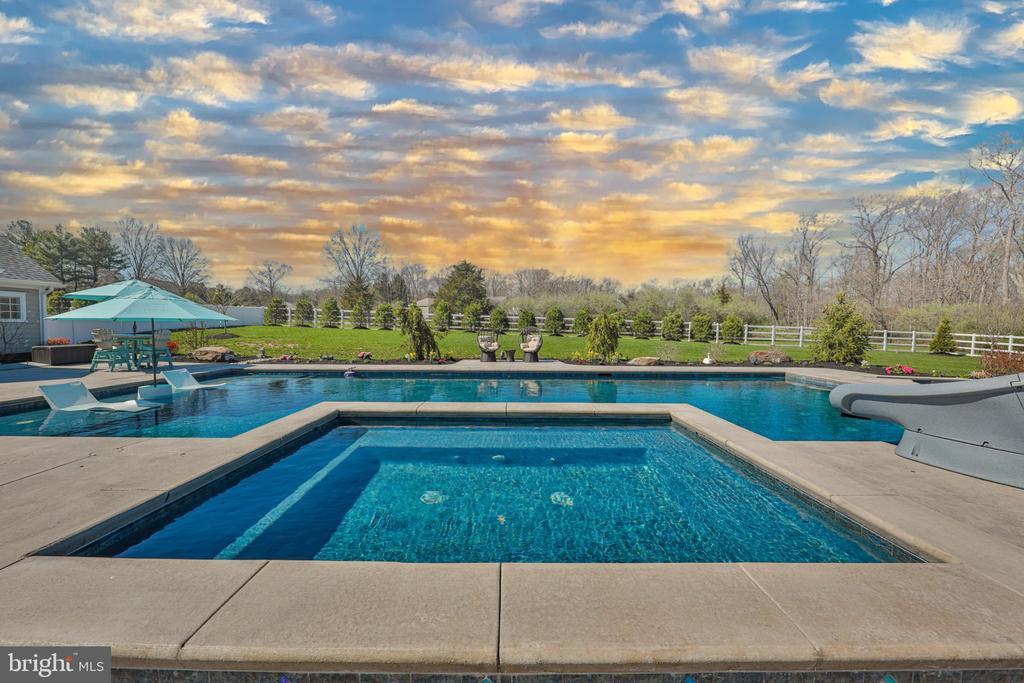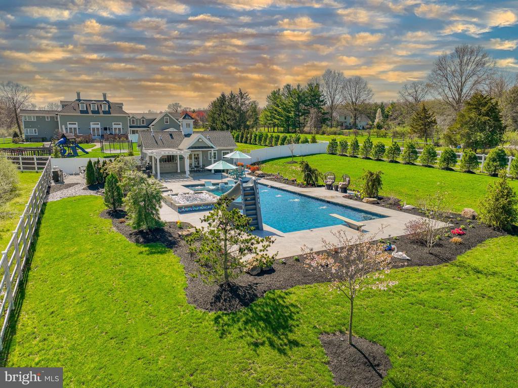 Spectacular Modern Estate with many Luxurious Amenities! This extraordinary 2021 custom-built home features exquisite living space, nestled on a private almost 8-acre lot. This expansive floor plan was designed w/luxury and convenience in mind. On the 1st floor, a fully appointed kitchen w/quartz countertops, SS appliances, island and an abundance of cabinets. An elegant grand room w/18 ft high ceilings and a classic fireplace. The 1st floor primary suite boasts a superior custom bath and enormous walk-in closet w/clothes washer & dryer. This floor also features an office, dining room, sunroom and mud room - there's even a dog shower! Upstairs, 4 suites w/3 full baths, & additional 2nd floor laundry. The 3rd floor offers another large suite w/bath and lounge area. The finished basement is an entertainer's delight: recreation room, custom media room, music studio, large gym w/infrared sauna, kitchenette, and full bath. Outside, this fenced backyard has it all: brick & bluestone terrace, raised garden beds, wet-set stone firepit, & fenced pet area w/custom turf. Enjoy a new in-ground concrete pool w/custom lighting, enhanced audio experience package, waterslide, & hot tub. A fully-equipped custom Pool House w/kitchen, bath, laundry, & HVAC. A freshly paved driveway w/4-car garage, storage shed & basketball & game striping. Only a short drive to New Hope & Lambertville, there's no shortage of entertainment options! You have to see this property for yourself!