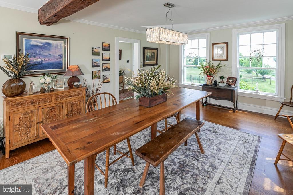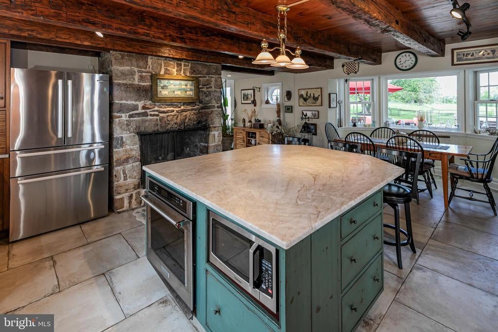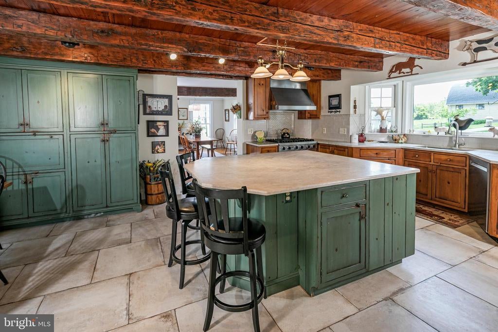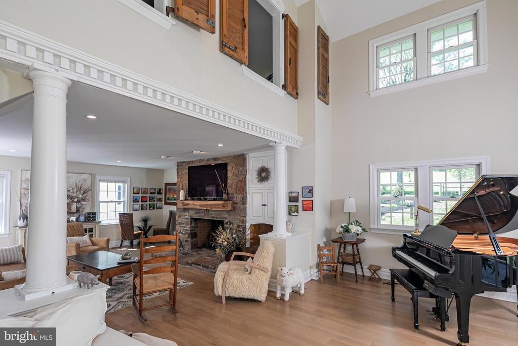 Just a few turns from New Jersey’s last covered bridge, 89 inspired acres roll out like a pastoral dream in the heart of Hunterdon County. This is not your average farmstead. This is a place where traditions are honored, animals are well-housed, and there’s a proper barn just for parties complete with a barrel-vaulted ceiling and a bar. The land itself is shaped by a network of fenced paddocks, dry lots, and barns that still serve their original purpose. One is ready for horses with four stalls, a heated tack room, and a hayloft that swallows up to 1,200 bales. Another once ran as a dairy barn, now brimming with potential, and there’s even a proper chicken coop. At the center of it all, the 19th-century farmhouse has been added upon and transformed into a place of pure comfort and grace, warmed by two gas fireplaces and the stories told around them. The kitchen, with its oversized island, hearth, and casual dining nook, is where the hours melt away. The great room, with its soaring ceiling and shuttered interior windows, is equal parts music hall and quiet escape. The living room spills out onto a wide bluestone patio. The dining room still knows how to host a holiday, and the upstairs main bedroom is thoughtfully tucked away from the others, one of which hides a cedar closet. There’s laundry upstairs, a sauna below, and a stone-walled nook that all but begs to become a wine cellar. Elsewhere on the property are surprises that stretch this estate beyond a single narrative: a garage with a finished game room above, a storybook cottage-style apartment, another two-bedroom apartment with a loft, and a studio with its own bathroom. Even the pets have their own fenced -acre patch to keep them safe. In a world that moves too fast, this is a place that knows how to slow down while keeping farm life humming. Comprised of two lots: 84 acres for the farm land and 4.92 for the main residence. Please note the bedroom and bathroom counts include the guest house and cottage apartment.