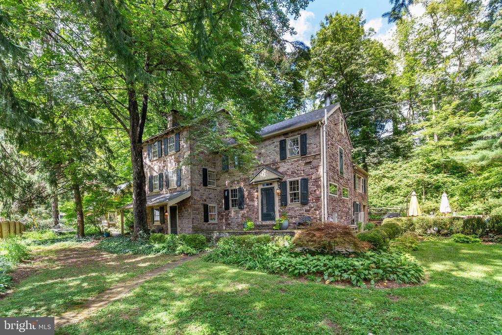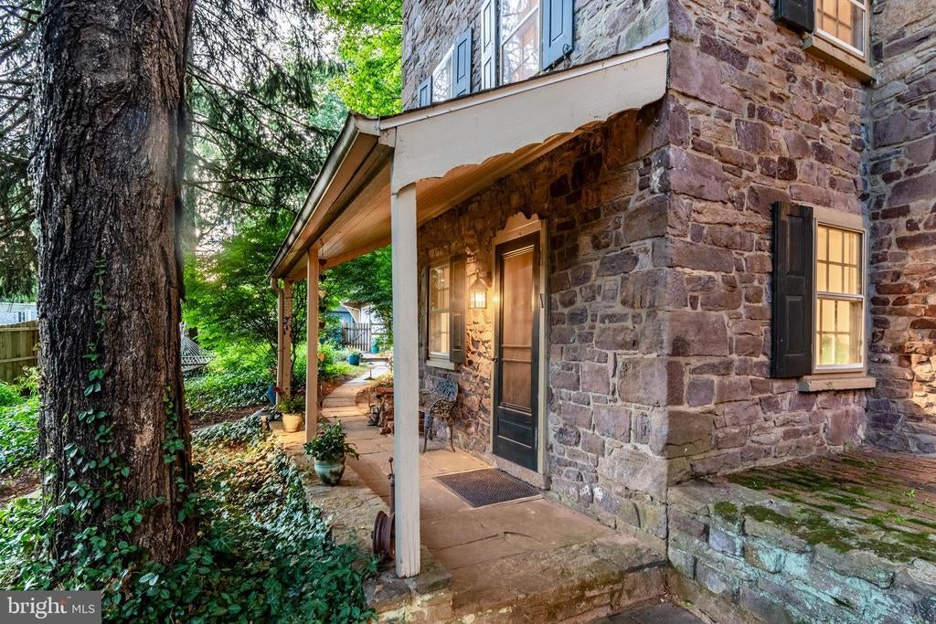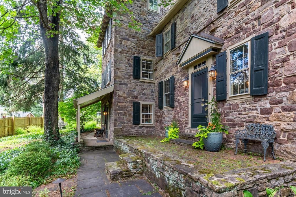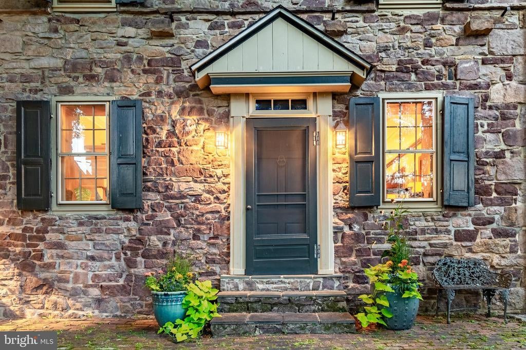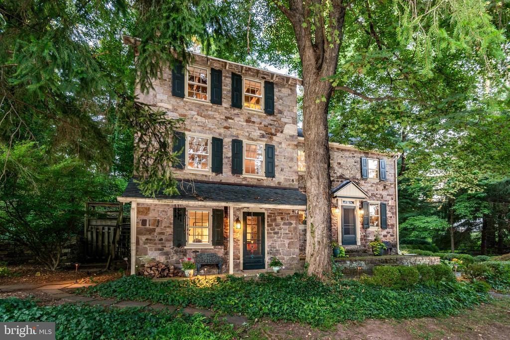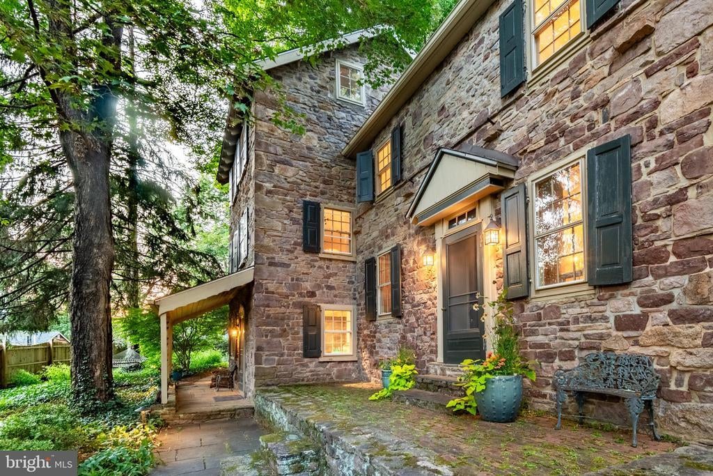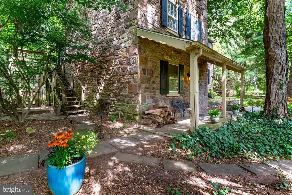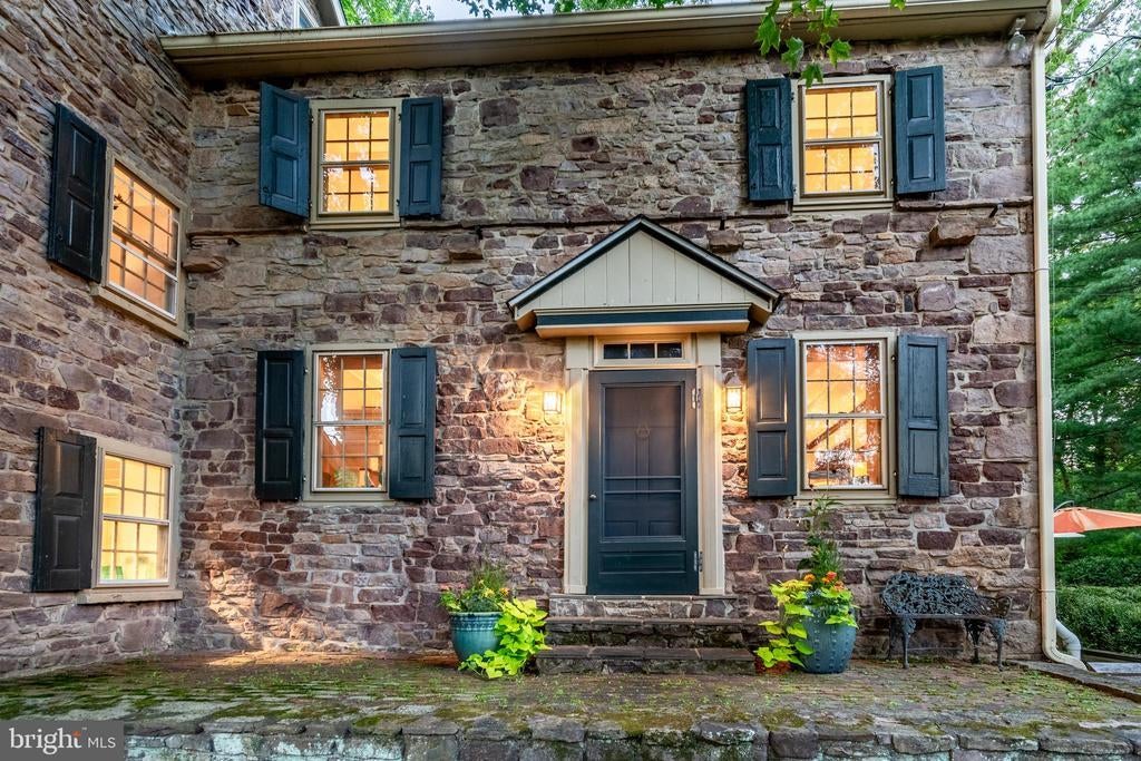 Just steps from the towpath and the Delaware River, this historic fieldstone house has enjoyed quiet transformations over time that blend history with contemporary ease. Originally built by Col. John Sharp, in 1842 and established by Daniel Sharp and Gershom Lambert, it became a general store until 1865. The property retains incredible features from the late 19th century, its thick stone walls, deep-set windows, random width hardwood flooring and exposed hand-hewn beams, but the atmosphere is unmistakably contemporary thanks to updates that balance reverence for the past with a clear-eyed embrace of modern living. The gourmet eat-in kitchen, anchored by granite counters and a farmhouse sink, stainless appliances, a six-burner gas stove with a vented hood, features radiant heated floors and glass-front cabinetry. The generous dining room is ready to host life’s celebrations with ease, featuring elegant stained-glass windows, exposed painted beams, random width hardwood flooring and houses a tucked-away powder room. The adjacent cozy family room is anchored by a stunning stone wood burning fireplace, flanked by charming built-in cabinetry and shelving for books and collectables. Two staircases lead to the 2nd level offering a formal living room focused around the wood burning fireplace w/decorative mantle and flanking built-in shelving and cabinetry. Within the primary, there’s a soothing bathroom with double copper vessel sinks, granite counters and a mosaic tiled walk-in shower plus plenty of closet storage. An adjacent sunlit home office with exposed stone walls and a doorway leading out onto the rear deck, connects the primary suite to a guest bedroom with a decorative fireplace and hardwood flooring. The third floor offers a third bedroom, including a loft, a full bath, and the laundry. Outside, the fenced yard shows off a generous bluestone patio, a covered porch and an open brick terrace open to a series of gardens that soften the home’s sturdy silhouette. An oversized two-car garage sits at the edge of the property, with ample space above for storage. A whole house generator has been added for peace of mind. Within walking distance, find the Stockton Market and the historic Stockton Inn, both recently re-opened and reimagined will most likely become your favorite spot to enjoy. Many options await for dining and antiquing in the historic award-winning towns of Lambertville and New Hope, just a few miles south, with the Delaware & Raritan Canal path nearby it’s a short bike ride away.