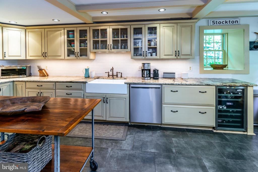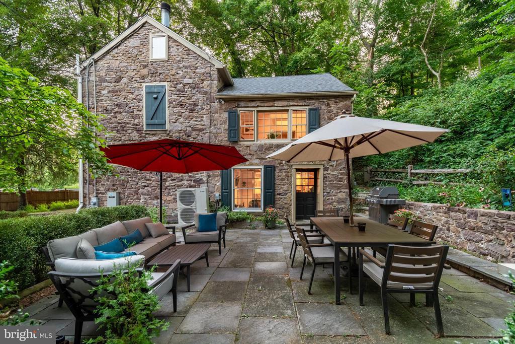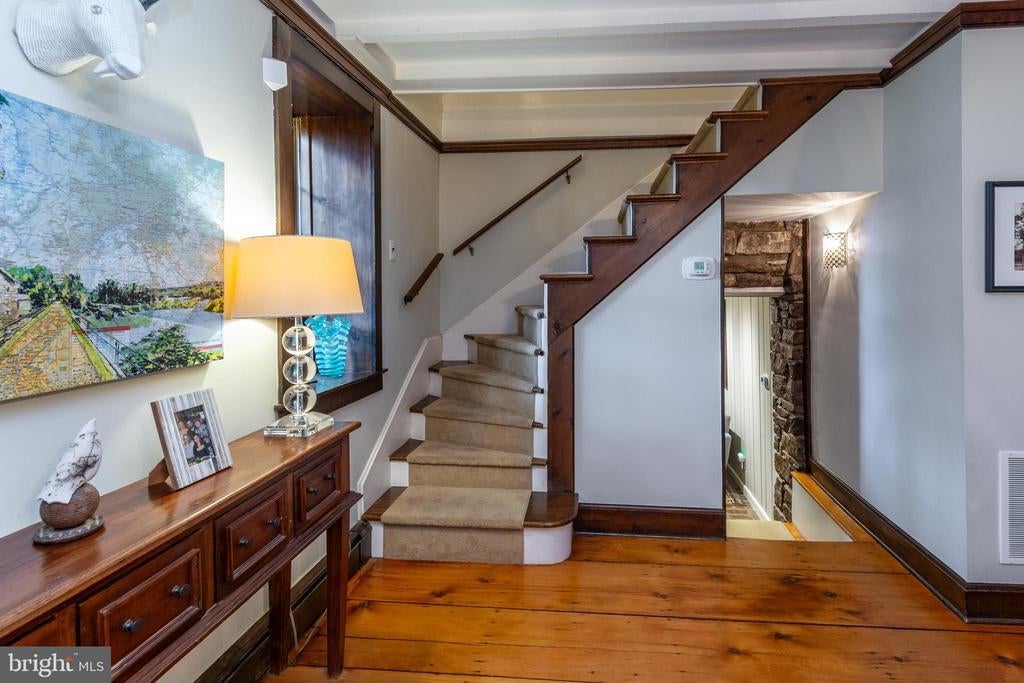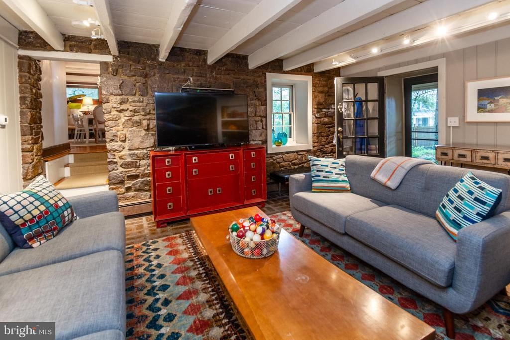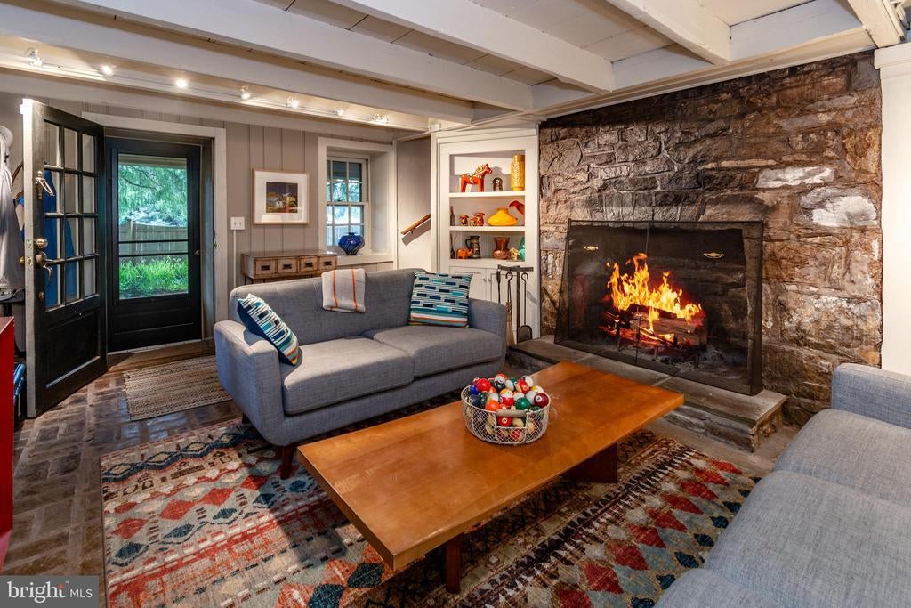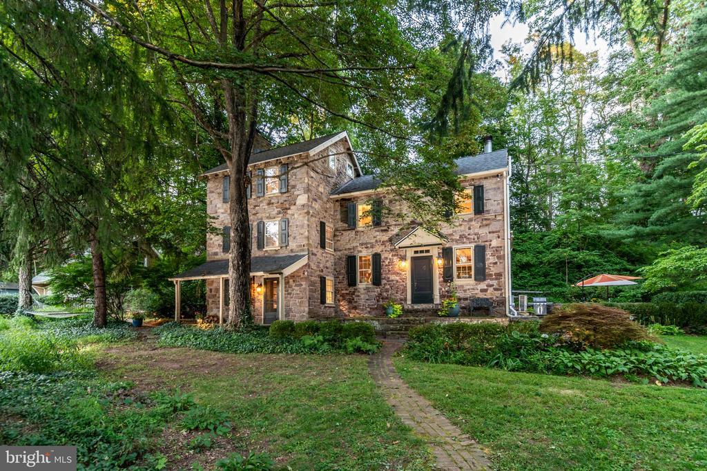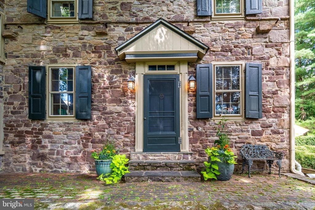 Just steps from the towpath and the Delaware River, this historic fieldstone house has enjoyed quiet transformations over time that blend history with contemporary ease. Originally built by Col. John Sharp, in 1842 and established by Daniel Sharp and Gershom Lambert, it became a general store until 1865. The property retains incredible features from the late 19th century, its thick stone walls, deep-set windows, random width hardwood flooring and exposed hand-hewn beams, but the atmosphere is unmistakably contemporary thanks to updates that balance reverence for the past with a clear-eyed embrace of modern living. The gourmet eat-in kitchen, anchored by granite counters and a farmhouse sink, stainless appliances, a six-burner gas stove with a vented hood, features radiant heated floors and glass-front cabinetry. The generous dining room is ready to host life’s celebrations with ease, featuring elegant stained-glass windows, exposed painted beams, random width hardwood flooring and houses a tucked-away powder room. The adjacent cozy family room is anchored by a stunning stone wood burning fireplace, flanked by charming built-in cabinetry and shelving for books and collectables. Two staircases lead to the 2nd level offering a formal living room focused around the wood burning fireplace w/decorative mantle and flanking built-in shelving and cabinetry. Within the primary, there’s a soothing bathroom with double copper vessel sinks, granite counters and a mosaic tiled walk-in shower plus plenty of closet storage. An adjacent sunlit home office with exposed stone walls and a doorway leading out onto the rear deck, connects the primary suite to a guest bedroom with a decorative fireplace and hardwood flooring. The third floor offers a third bedroom, including a loft, a full bath, and the laundry. Outside, the fenced yard shows off a generous bluestone patio, a covered porch and an open brick terrace open to a series of gardens that soften the home’s sturdy silhouette. An oversized two-car garage sits at the edge of the property, with ample space above for storage. A whole house generator has been added for peace of mind. Within walking distance, find the Stockton Market and the historic Stockton Inn, both recently re-opened and reimagined will most likely become your favorite spot to enjoy. Many options await for dining and antiquing in the historic award-winning towns of Lambertville and New Hope, just a few miles south, with the Delaware & Raritan Canal path nearby it’s a short bike ride away.