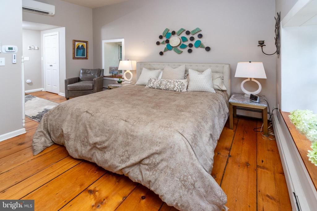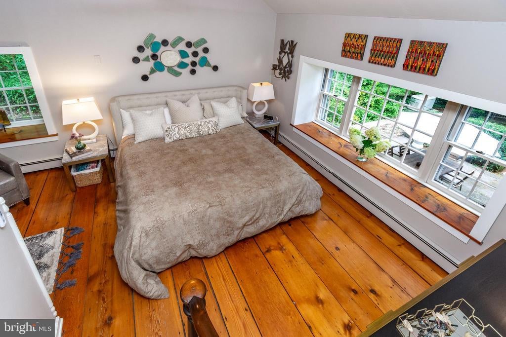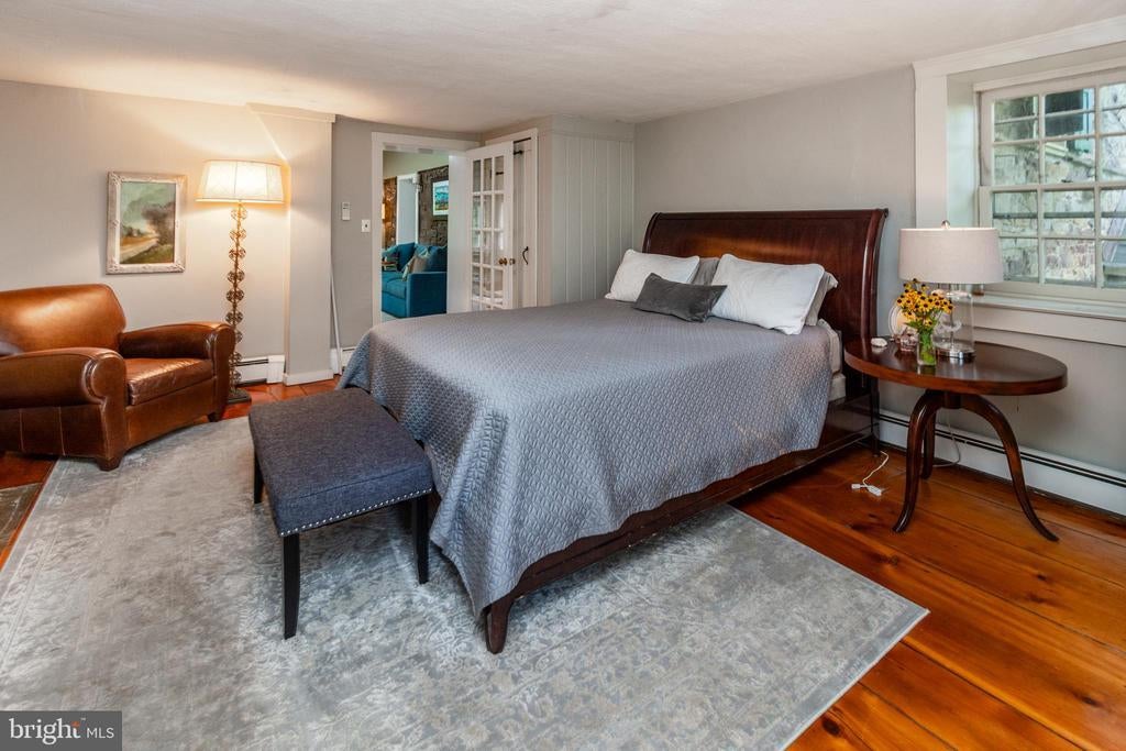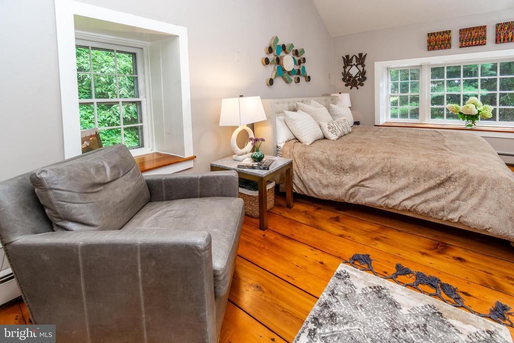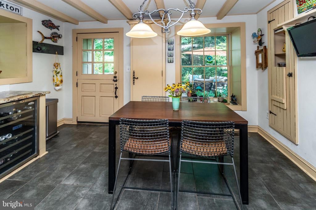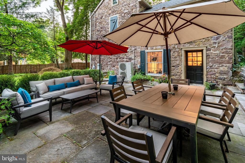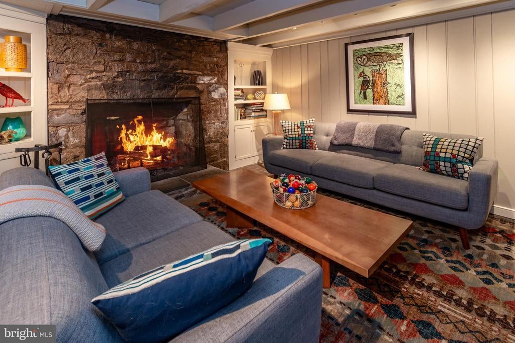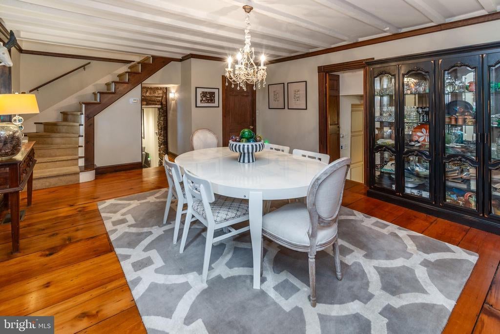 Just steps from the towpath and the Delaware River, this historic fieldstone house has enjoyed quiet transformations over time that blend history with contemporary ease. Originally built by Col. John Sharp, in 1842 and established by Daniel Sharp and Gershom Lambert, it became a general store until 1865. The property retains incredible features from the late 19th century, its thick stone walls, deep-set windows, random width hardwood flooring and exposed hand-hewn beams, but the atmosphere is unmistakably contemporary thanks to updates that balance reverence for the past with a clear-eyed embrace of modern living. The gourmet eat-in kitchen, anchored by granite counters and a farmhouse sink, stainless appliances, a six-burner gas stove with a vented hood, features radiant heated floors and glass-front cabinetry. The generous dining room is ready to host life’s celebrations with ease, featuring elegant stained-glass windows, exposed painted beams, random width hardwood flooring and houses a tucked-away powder room. The adjacent cozy family room is anchored by a stunning stone wood burning fireplace, flanked by charming built-in cabinetry and shelving for books and collectables. Two staircases lead to the 2nd level offering a formal living room focused around the wood burning fireplace w/decorative mantle and flanking built-in shelving and cabinetry. Within the primary, there’s a soothing bathroom with double copper vessel sinks, granite counters and a mosaic tiled walk-in shower plus plenty of closet storage. An adjacent sunlit home office with exposed stone walls and a doorway leading out onto the rear deck, connects the primary suite to a guest bedroom with a decorative fireplace and hardwood flooring. The third floor offers a third bedroom, including a loft, a full bath, and the laundry. Outside, the fenced yard shows off a generous bluestone patio, a covered porch and an open brick terrace open to a series of gardens that soften the home’s sturdy silhouette. An oversized two-car garage sits at the edge of the property, with ample space above for storage. A whole house generator has been added for peace of mind. Within walking distance, find the Stockton Market and the historic Stockton Inn, both recently re-opened and reimagined will most likely become your favorite spot to enjoy. Many options await for dining and antiquing in the historic award-winning towns of Lambertville and New Hope, just a few miles south, with the Delaware & Raritan Canal path nearby it’s a short bike ride away.