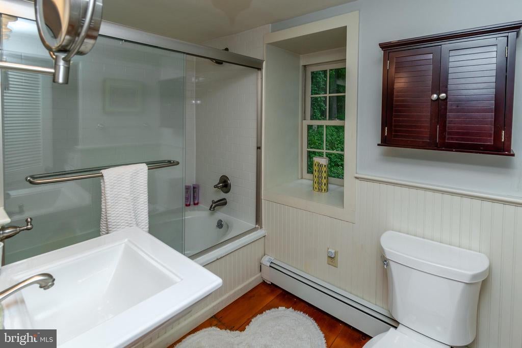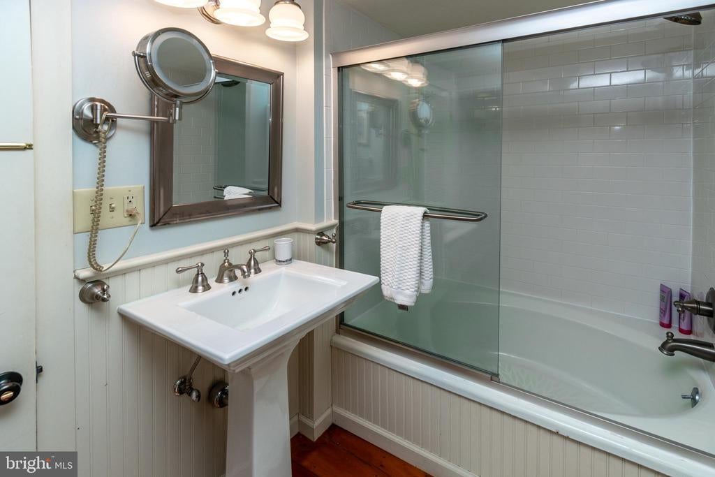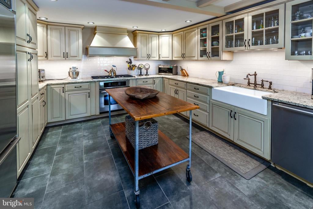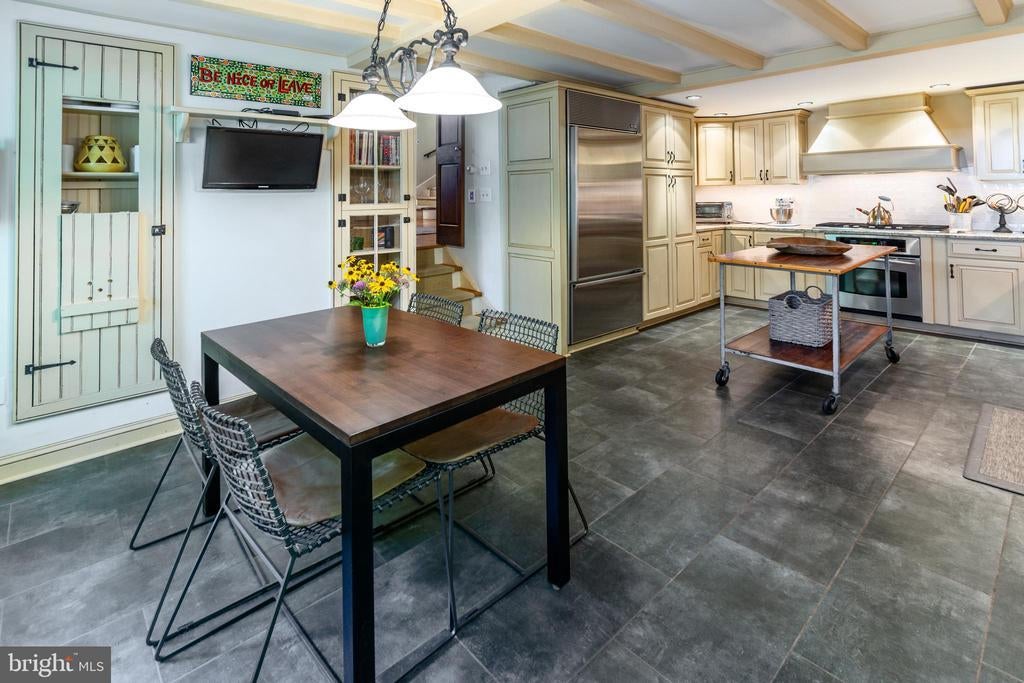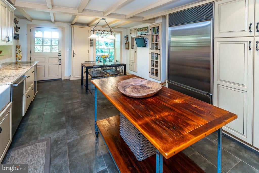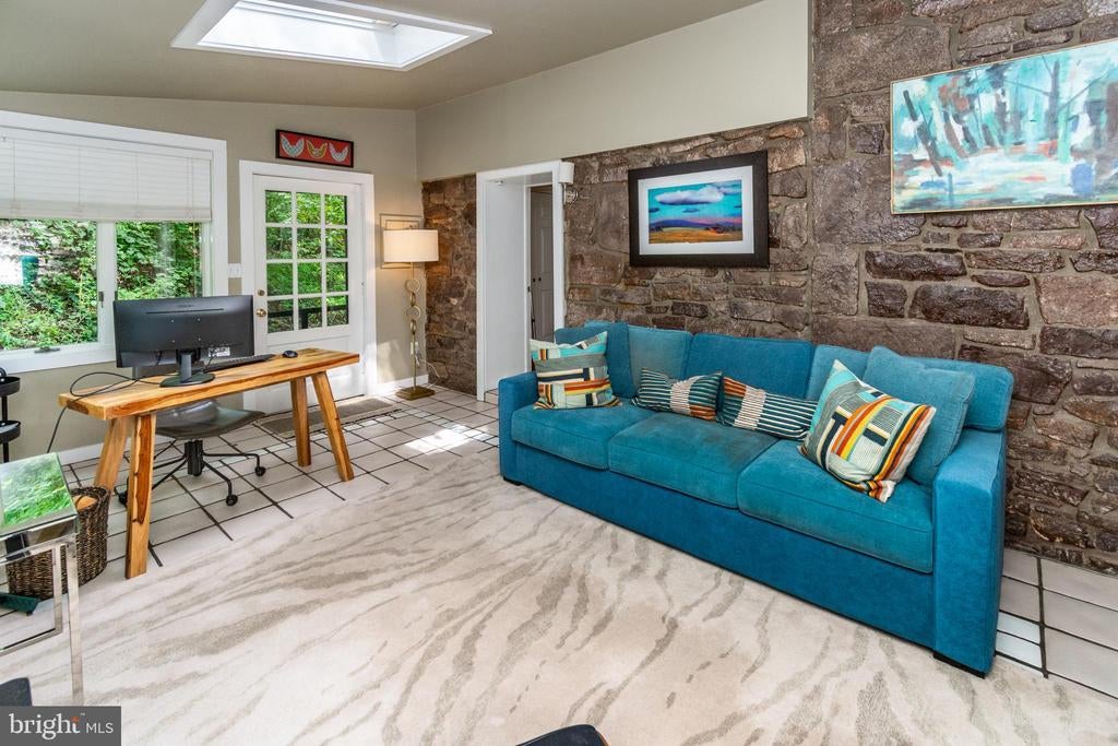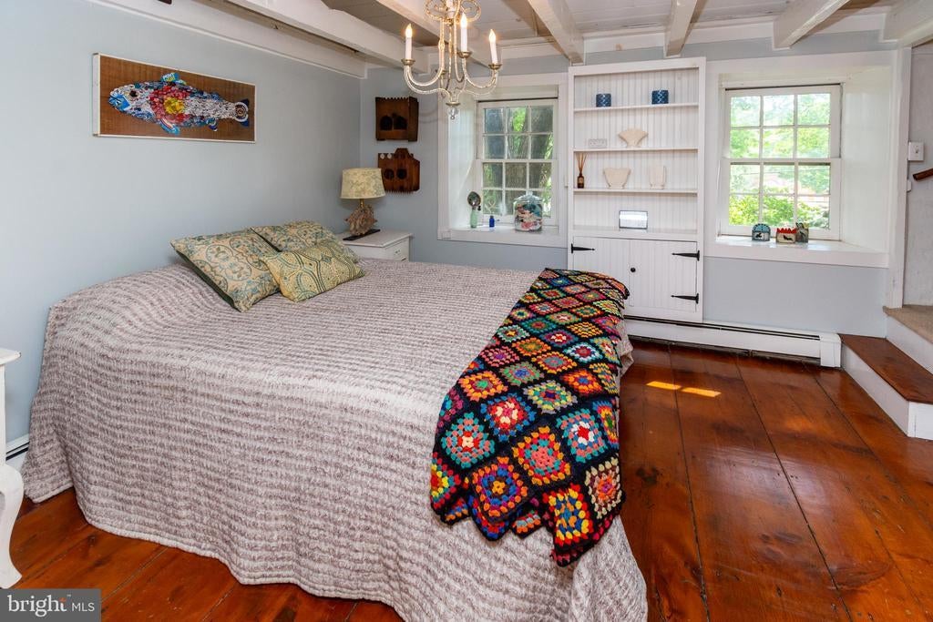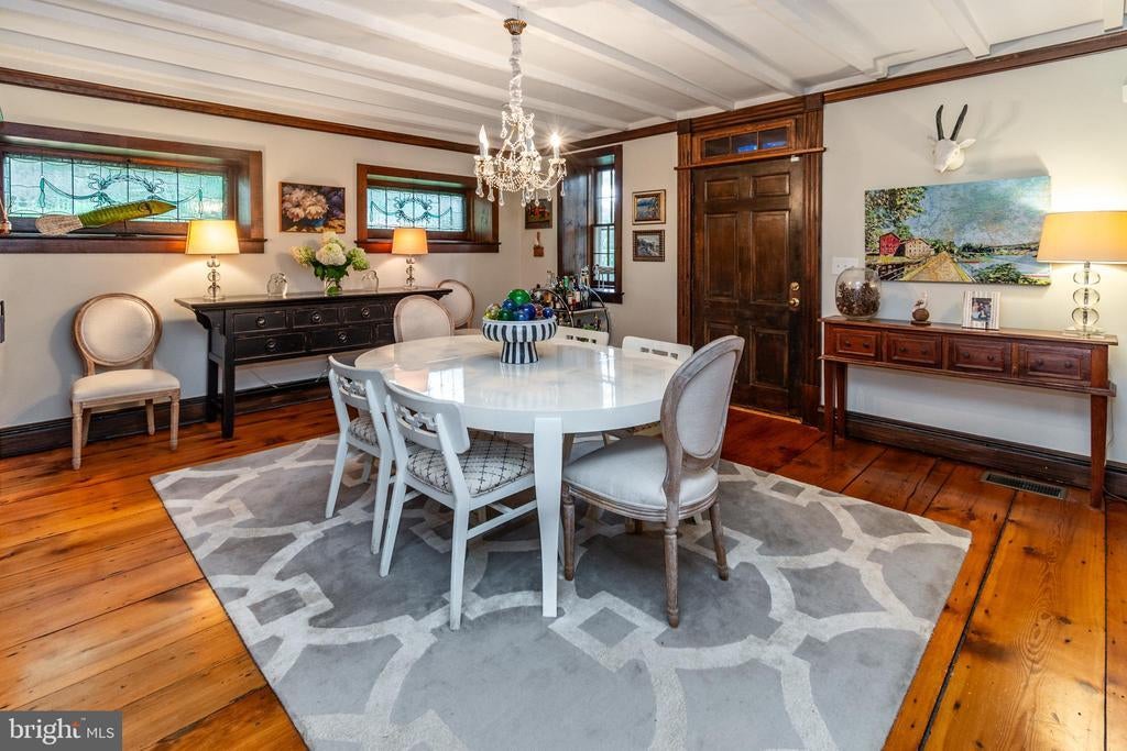 Just steps from the towpath and the Delaware River, this historic fieldstone house has enjoyed quiet transformations over time that blend history with contemporary ease. Originally built by Col. John Sharp, in 1842 and established by Daniel Sharp and Gershom Lambert, it became a general store until 1865. The property retains incredible features from the late 19th century, its thick stone walls, deep-set windows, random width hardwood flooring and exposed hand-hewn beams, but the atmosphere is unmistakably contemporary thanks to updates that balance reverence for the past with a clear-eyed embrace of modern living. The gourmet eat-in kitchen, anchored by granite counters and a farmhouse sink, stainless appliances, a six-burner gas stove with a vented hood, features radiant heated floors and glass-front cabinetry. The generous dining room is ready to host life’s celebrations with ease, featuring elegant stained-glass windows, exposed painted beams, random width hardwood flooring and houses a tucked-away powder room. The adjacent cozy family room is anchored by a stunning stone wood burning fireplace, flanked by charming built-in cabinetry and shelving for books and collectables. Two staircases lead to the 2nd level offering a formal living room focused around the wood burning fireplace w/decorative mantle and flanking built-in shelving and cabinetry. Within the primary, there’s a soothing bathroom with double copper vessel sinks, granite counters and a mosaic tiled walk-in shower plus plenty of closet storage. An adjacent sunlit home office with exposed stone walls and a doorway leading out onto the rear deck, connects the primary suite to a guest bedroom with a decorative fireplace and hardwood flooring. The third floor offers a third bedroom, including a loft, a full bath, and the laundry. Outside, the fenced yard shows off a generous bluestone patio, a covered porch and an open brick terrace open to a series of gardens that soften the home’s sturdy silhouette. An oversized two-car garage sits at the edge of the property, with ample space above for storage. A whole house generator has been added for peace of mind. Within walking distance, find the Stockton Market and the historic Stockton Inn, both recently re-opened and reimagined will most likely become your favorite spot to enjoy. Many options await for dining and antiquing in the historic award-winning towns of Lambertville and New Hope, just a few miles south, with the Delaware & Raritan Canal path nearby it’s a short bike ride away.