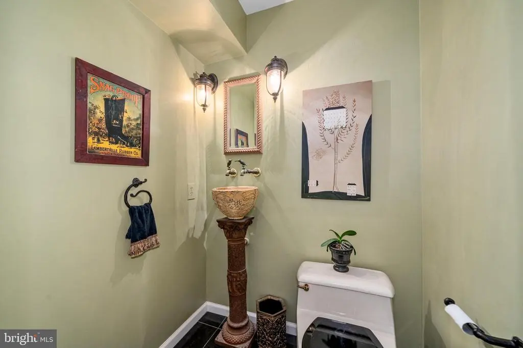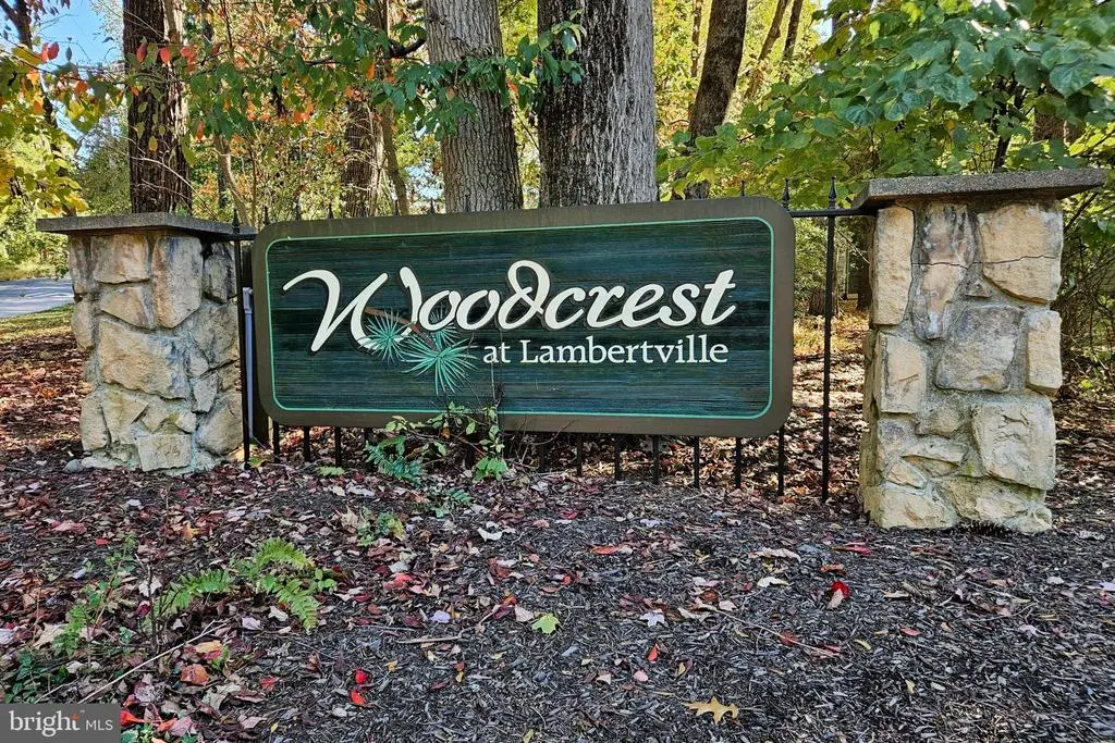 Tastefully updated and meticulously maintained, this elegant townhome offers comfort, style and convenience in the desirable Woodcrest neighborhood in Lambertville. Featuring two spacious bedroom suites, 2.1 baths and a one-car garage with freshly epoxied floor, this home is move-in ready and filled with thoughtful details. A curved brick walkway leads to the welcoming entry. Inside, the foyer’s neutral brick accent walls add warmth and texture. The renovated kitchen (2022) features granite counters, stainless steel appliances and an attractive pass-through to the dining room that enhances light and flow. Hardwood floors run through the library, living and dining rooms - accented with elegant crown molding. The dining room’s vintage chandelier adds timeless charm, while a double-sided gas fireplace with distinctive mantels serves as the centerpiece in the living room and library. Custom built-in shelves/cabinets flank the living room fireplace and glass doors open to a Trex deck overlooking mature trees. The library’s vaulted ceiling, skylights and transom window bring in abundant natural light. Upstairs, newer carpet runs throughout. Both bedrooms feature full baths and the primary suite offers a vaulted ceiling, linen closet and a custom-fitted walk-in closet. The primary bath includes dual sinks, a jetted tub and a large shower with a glass-block wall. The finished lower level provides wonderful versatility with a built-in entertainment center, built-in home-office area and a spacious 19×8 walk-in closet with high-end custom shelving and drawers, offering excellent storage and even the option to create an additional sleeping area if desired. This walk-out level opens to a brick patio surrounded by mature trees, ideal for outdoor relaxation. Strolling distance to Lambertville and New Hope’s vibrant downtowns, the D&R Canal towpath, or the Goat Hill Overlook with vast Delaware River views, this turn-key home offers the lifestyle you've dreamed of! All square footage is approximate. Approximate above ground square footage taken from tax records. Finished Lower level adds approximately 800 more square feet. All window treatments are included.