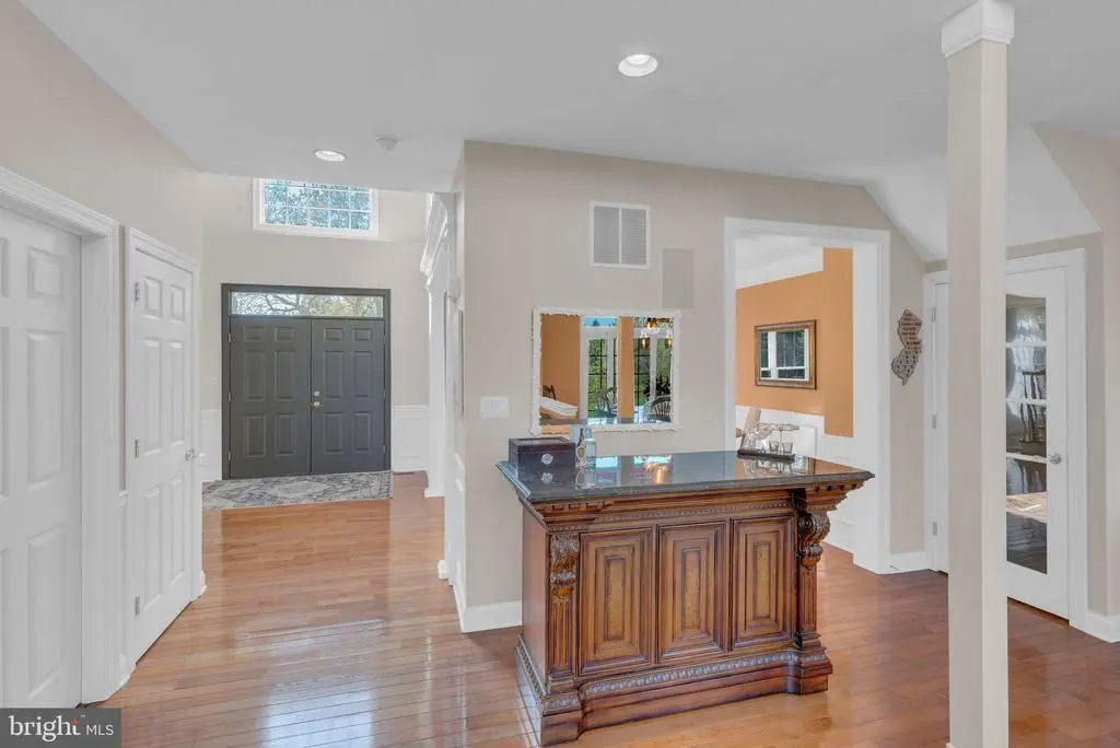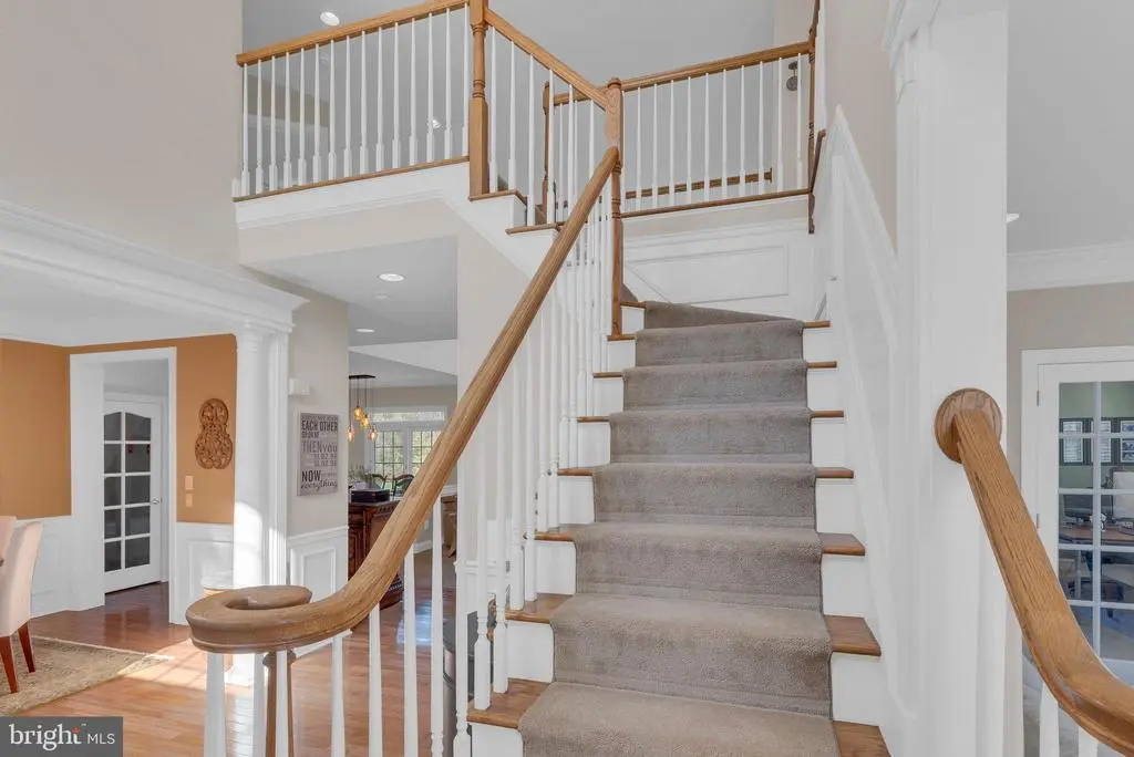 Additional Stairway, Bar, Chair Railings, Crown Moldings, Curved Staircase, Double/Dual Staircase, Recessed Lighting, Wood Floors