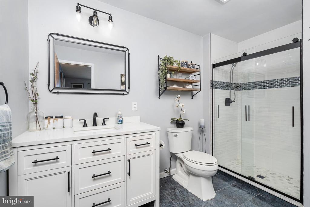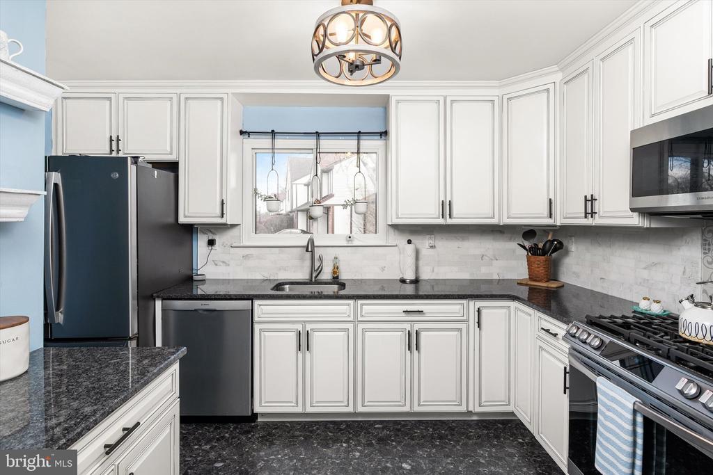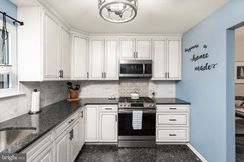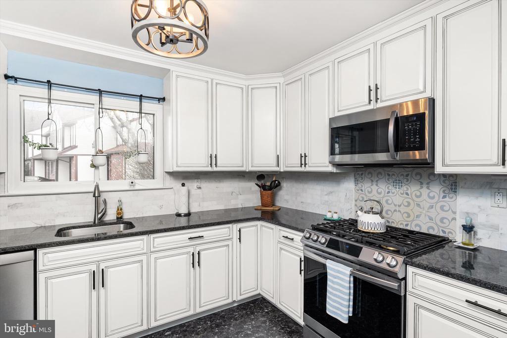 Nestled in the sought-after Tamar Commons community, this beautifully updated townhome offers a perfect blend of modern upgrades and comfortable living. Featuring three bedrooms, two and a half bathrooms, a full unfinished basement, and a one-car garage, this home provides ample space and convenience with low HOA fees. Step inside to discover a bright and inviting main level with luxury vinyl plank flooring throughout the living room, dining room, and family room. The updated kitchen boasts crisp white cabinetry, a stylish tile backsplash, granite countertops, stainless steel appliances, a gas range, and a built-in microwave, all complemented by ample storage space. The adjoining family room features a ceiling fan with lighting, a storage closet, and sliding doors that lead to a nicely sized deck—ideal for relaxing or entertaining. A spacious living room with a large window allows for plenty of natural light, and a beautifully updated powder room with a white vanity completes the first floor. Upstairs, the primary suite serves as a private retreat with a ceiling fan, walk-in closet, and a fully renovated bathroom showcasing tile flooring, a stall shower with elegant tiling and a glass door, as well as a stylish vanity, mirror, and lighting. Two additional bedrooms—one with a ceiling fan and one with luxury vinyl plank flooring—offer flexibility for guests, family, or a home office. A renovated full bathroom, a linen closet, and an extra storage closet complete the second floor. Additional highlights include a one-car garage with an automatic door opener and a full unfinished basement with a dedicated washer and dryer area. Important upgrades provide peace of mind, including a newer roof and windows (approximately two years old), an HVAC system (2016), and a hot water heater (2013). Conveniently located near Route 295, Route 29, Capital Health, TCNJ, Rider University, Princeton, and Bucks County, PA, this home also offers an easy commute to Philadelphia. As an added bonus, it includes a one-year America's Preferred Home Warranty. Don't miss the opportunity to make this beautiful townhome your own!