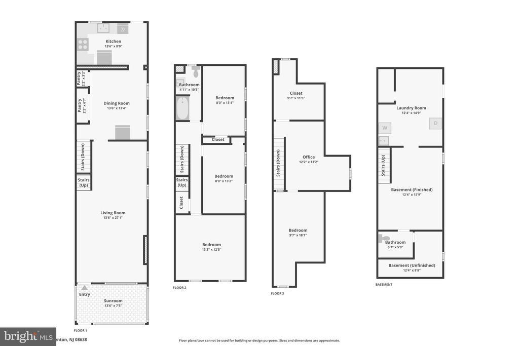 Welcome to this charming and spacious 4-bedroom, 1.5-bathroom home located in the heart of Trenton! This well-maintained property offers a warm and inviting atmosphere with plenty of room for comfortable living. The first floor boasts a generous living room, perfect for relaxing or entertaining guests, along with a well-equipped kitchen featuring ample cabinet space and functionality for all your culinary needs. A second living or dining area adds to the flexibility of the main level layout. Upstairs on the second floor, you'll find three nicely sized bedrooms and a full bathroom, providing privacy and convenience for the whole family. The third floor features a versatile finished space that can serve as a fourth bedroom, home office, guest room, or hobby area — tailored to fit your lifestyle. The home also includes a partially finished basement with a laundry area and a convenient half bathroom, adding extra utility and storage space. Step outside to enjoy the private backyard, ideal for outdoor gatherings, gardening, or simply relaxing in your own green space. Situated in a prime location, this property offers easy access to local schools, parks, public transportation, and major routes — making it a perfect blend of comfort and convenience. Don't miss this opportunity to own a delightful home in a desirable Trenton neighborhood!