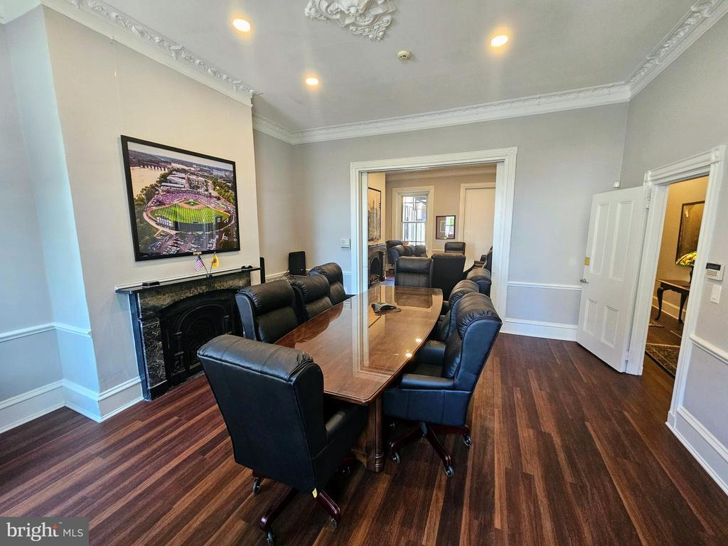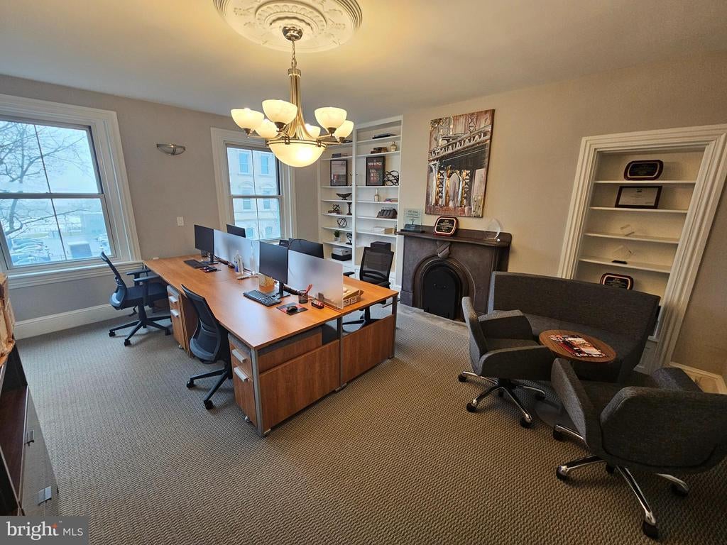 Meticulously renovated in 2019, this prime location has served as a showplace headquarters to Greater Trenton Inc, Choose NJ, as well as other professional organizations, directly across from the NJ Statehouse. This fully furnished, fully leased office property features a first floor conference room that seats up to 18 people and is available for shared usage by tenants. Attention buyers that want to occupy: you can occupy 1048 SF or more by January 1, 2026 (maybe sooner) while you retain rental income from existing tenants, and apply to receive $50,000 reimbursement for closing costs from NJEDA's Main Street Acquisition Support Grant. Attention investors: a compelling 11.5% cap rate isa compelling opportunity for you to receive a profitable return. 6 parking spots in rear. 2 bathrooms on each floor (6 total) and kitchenettes on first and third floor. Recent upgrades include new fire escape, new HVAC with separate zones, new flooring, roofing updates, LED recessed lighting, facade upgrades, surveillance/security enhancements, painting and more. The quality and cost of the furnishings included in this sale are significant and consist of custom conference tables, well-designed office desks, framed historical photos, kitchenette appliances and accessories and more. A buyer could potenitially depreciate the furnishings on an accelerated schedule.