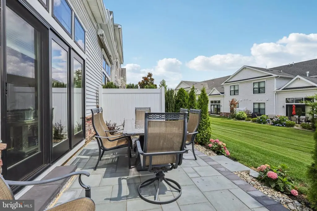 Step into elevated living at Venue at Cobblestone Creek, a premier 55+ active adult community in Lawrence Township. This beautifully upgraded Ridgewood model by Lennar offers 3 bedrooms, 2.5 bathrooms, and a thoughtfully designed open floor plan ideal for both everyday comfort and entertaining. The main level welcomes you with rich hardwood floors, a spacious living and dining area, and a cozy family room featuring a gas fireplace. The gourmet kitchen is a standout, boasting quartz countertops, stainless steel appliances, gas cooking, a large island with seating, and 42" shaker-style cabinets. A first-floor den provides a perfect home office or flex space. Upstairs, double French doors lead to a private primary suite with tray ceiling, walk-in closet, and en-suite bath featuring dual vanities and a soaking tub. Two additional bedrooms share a full hall bath, and the second-floor laundry room adds convenience. Additional highlights include a two-car garage, full-height basement, smart home technology (including Ring doorbell, Sono speaker system, and Wi-Fi CERTIFIED™ construction), and a professionally installed bluestone paver patio, perfect for outdoor relaxation and entertaining. Enjoy golf course views and resort-style amenities just steps away: a newly redesigned 18-hole golf course, 30,000 sq. ft. clubhouse, outdoor pool, fitness center, yoga studio, and on-site indoor/outdoor dining with scenic views of the 10th hole. The community is also pet-friendly with features like a dedicated pet room. The monthly HOA fee covers lawn care, snow removal, exterior maintenance, and includes a social residence membership to the private country club—offering exclusive access to the community's upscale amenities. Located minutes from downtown Princeton, with easy access to NYC, Philadelphia, shopping, dining, and transit—this home blends luxury, convenience, and community living. Don’t miss this opportunity to enjoy luxury living in a vibrant and amenity-rich setting—schedule your private tour today.