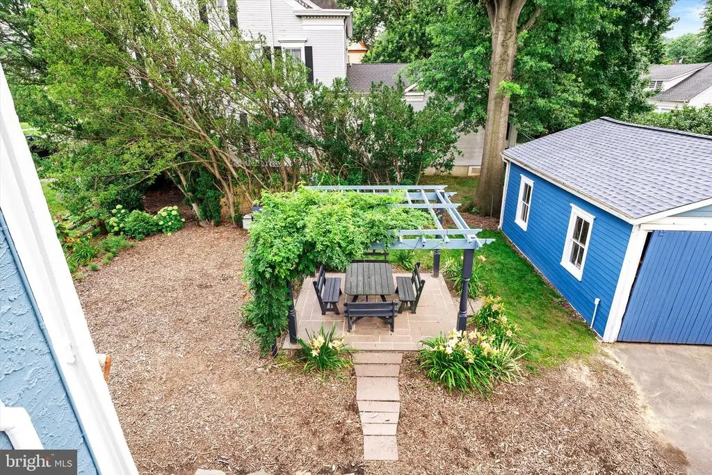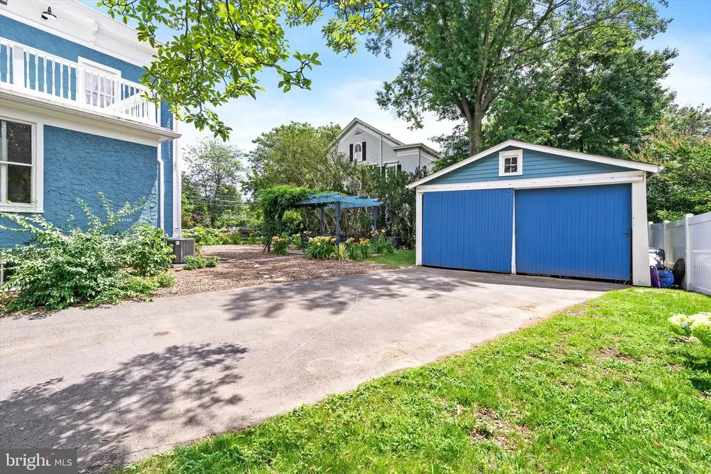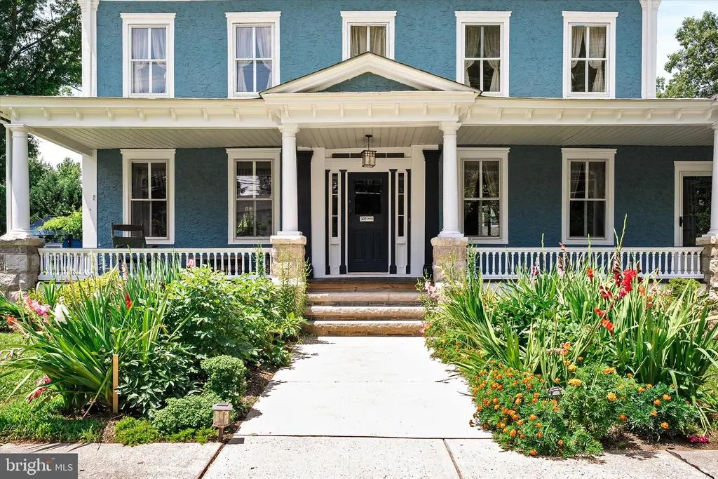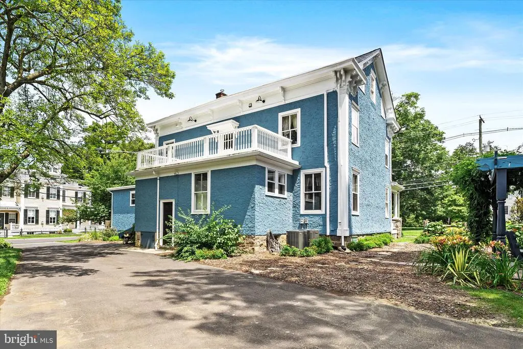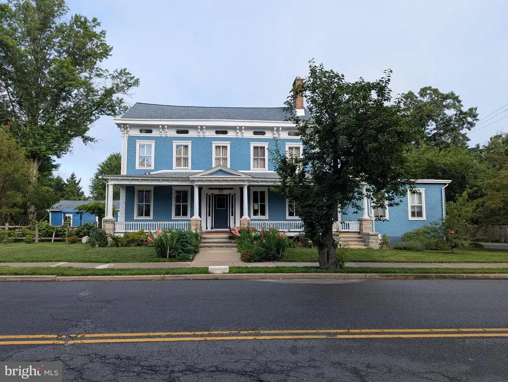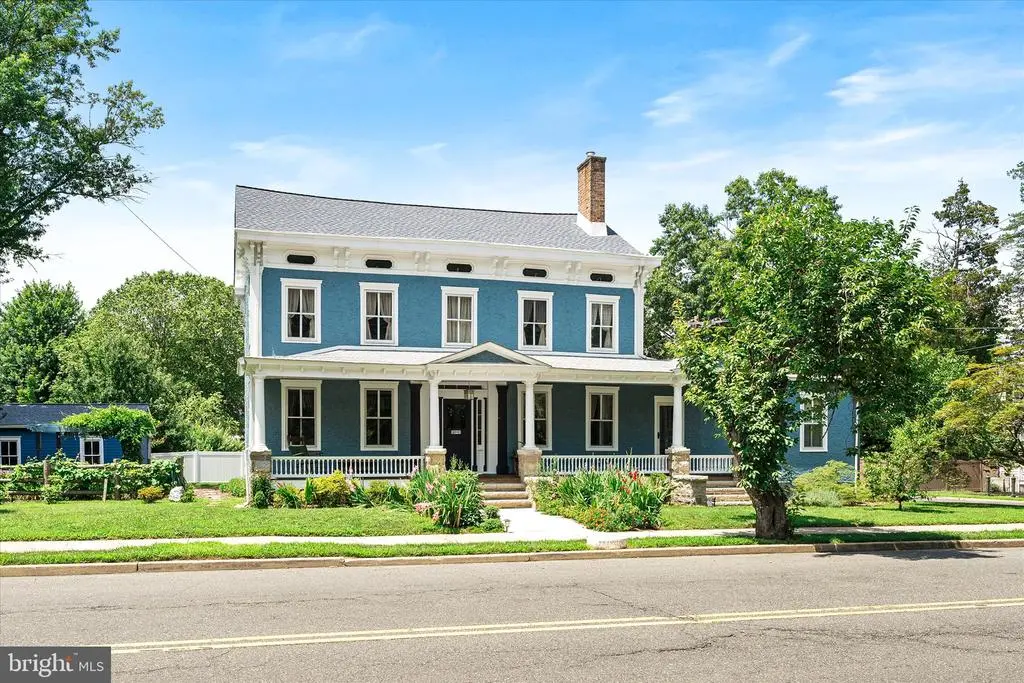 Luxuriate in space and exquisite finishes in a fantastic location. Walk up the limestone steps to the mahogany porch and be wowed when you step through the Dutch door onto the black and white marble of the center hall. Own a piece of Hightstown History. Built for Dr. Franklin in 1885, who assisted in treating Woodrow Wilson shortly before he was elected President, this house was lives and breathes comfort and grace. Exquisitely rejuvenated during the past three years, you walk into an impressive home with a black and white marble entry hall and original marble fireplace surrounds. A cherry cabinets in the kitchen highlight the original cooking hearth herringbone brick floor and extend past a full bath into the butlers pantry/laundry. The double parlor with original plaster moldings and floors looks out onto South Main Street and the Peddie School grounds. Enjoy the look and feel of steam heat emanating from the reconditioned period radiators, original wavy glass and a Harry Potter under the stairs closet. The former medical consultation rooms offer the opportunity for bedrooms, in-law suite, professional office with its separate door leading to the front porch. En-suite Bathroom and three grandly sized closets complete this wing, which is ideal for a professional suite, in-law suite or the main bedroom suite. Ascend the mahogany staircase to the second floor with three amply sized bedrooms and a roof deck. Main bedroom has a walk-in closet and second closet. Attached bathroom has both an walk-in shower, soaking tub and period 1940s accent fixtures - medicine cabinet and toothbrush holder. With a new 75 gallon water heater, you will always have a hot bath. All services have been upgraded. The roof on the main house and garage were installed in early 2025. This grand 1885 residence comes replete with a 4-zone AC system Up the stairs to the expansive open plan third floor with its ultra modern bath and bowling alley dimensions. Perfect for the above-ground man cave, teenage hangout or art studio space. Stairway lighting and window candles add to the allure Outside, enjoy the wisteria arbor with granite patio, beautiful magnolia tree and Japanese cherry trees in the Spring and the everblooming flowers and grape trellises. The two car garage can be used for vehicles as there is ample storage space in the full basement and on the third floor. For style, grace and space, you can't beat this Hightstown gem. Architectural Plans available for review. Please note that the real estate taxes are expected to increase as a result of renovations undertaken. Appointment required as there is a dog in residence.