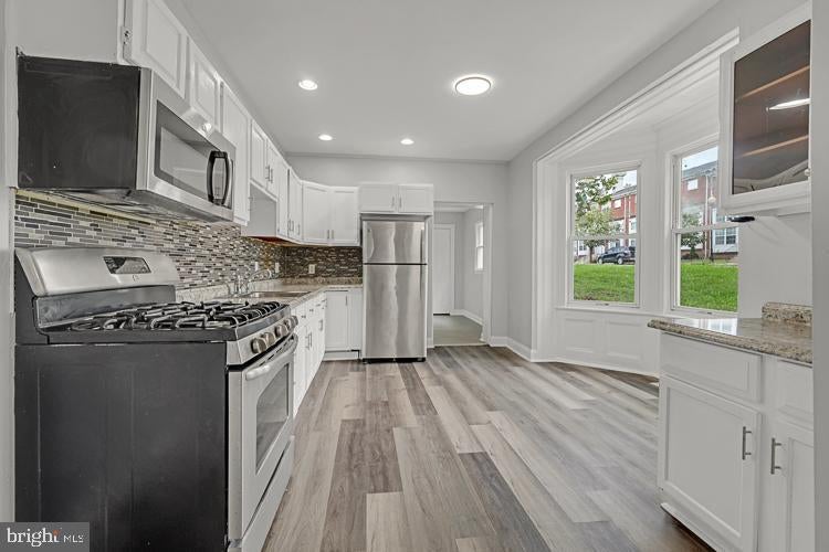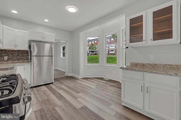 Back on the market, buyer got denied financing last minute. End-of-row single-family home with 4 bedrooms and 2 full bathrooms, fully updated and move-in ready. Recent renovations include new flooring throughout, fresh interior paint, and updated fixtures. The home features central heating and air conditioning, dedicated laundry area, and a full bathroom on each level for convenience. Located at the end of a quiet block, the home offers added privacy and reduced foot traffic. The backyard is fully fenced, spacious, and tucked away—ideal for tenants or owners looking for private outdoor space. Property is currently vacant. For access and further details, contact the listing agent.