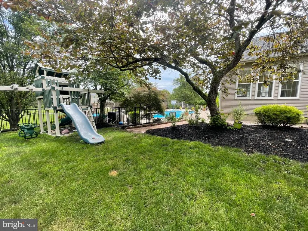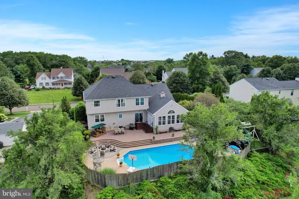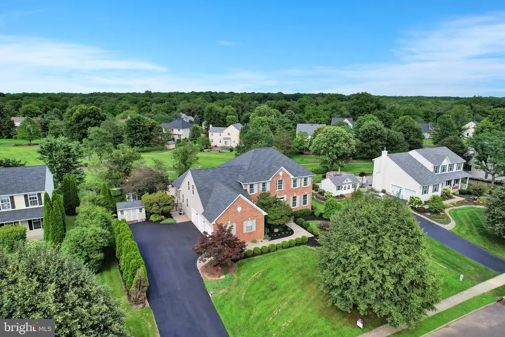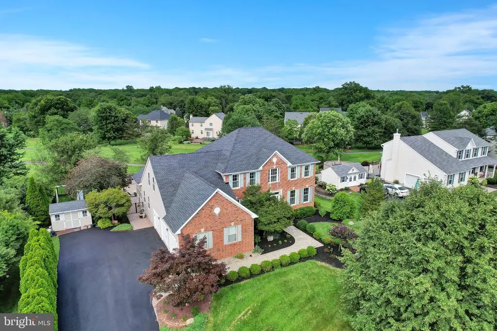 Come see this true 5-bedroom + office Colonial-style home with a 3-car garage, located in the sought-after Dalton Meadows community of Robbinsville, NJ! Set on a beautifully landscaped 0.42-acre lot, with a large HOA-maintained common area directly behind it, providing added open space & walking path, this elegant brick-front residence offers 5 upstairs bedrooms, a main-floor office, 2 full baths, 2 half baths, a gracious family room with custom built-ins, an adjoining sunroom, and over 1,000 sq ft of finished basement space—bringing the total finished living area to approximately 4,100 sq ft. It perfectly balances luxury, comfort, and functionality. Inside, gleaming hardwood floors flow throughout the main level. A two-story foyer is flanked by a spacious office and formal living room. Past the first half bath, you’ll find an inviting eat-in kitchen featuring a center island, pantry, and abundant cabinetry, all illuminated by sliding glass doors that open to the backyard patio and pool. Step down into the stunning family room with a double-sided fireplace and custom mantle. The oversized sunroom connects via two sets of French doors, creating a seamless space for entertaining. A formal dining room, main-floor laundry room, and a double-door coat closet next to a large pantry complete the first floor. Upstairs, the expansive primary suite offers a recently renovated en-suite bath with dual vanities, an oversized soaking tub, and a custom marble-tiled, glass-enclosed shower. Four additional bedrooms offer flexibility—ideal for a guest room, second home office, or even a second primary suite, as one is located near the second full bath. The finished basement features built-in surround sound and speakers, a large storage room, and additional crawlspace storage—perfect for entertaining and organization. Recent upgrades include a new asphalt driveway, newer back steps off the kitchen and sunroom, and a $11,000 pool equipment overhaul in 2023 (new liner, heater, and filter). A tankless hot water heater (2015) and many replacement windows enhance efficiency and curb appeal. A new roof (2019) on both the home and shed provides peace of mind. Take a walk around the private backyard oasis that includes a paver patio, in-ground pool, grassy play area with a vinyl-wrapped wood swing set, and direct access to open space and walking paths that are great for bike riding, playing ball and exercising—offering a peaceful and family-friendly retreat. Located in a charming neighborhood with sidewalks and streetlights, this home is just minutes from the Hamilton train station, major routes (195, 295, 95, and Route 130), downtown Princeton (15 minutes), and Trenton-Mercer Airport (20 minutes). All within the highly rated Robbinsville school district! This one is a beauty—and it won’t last!