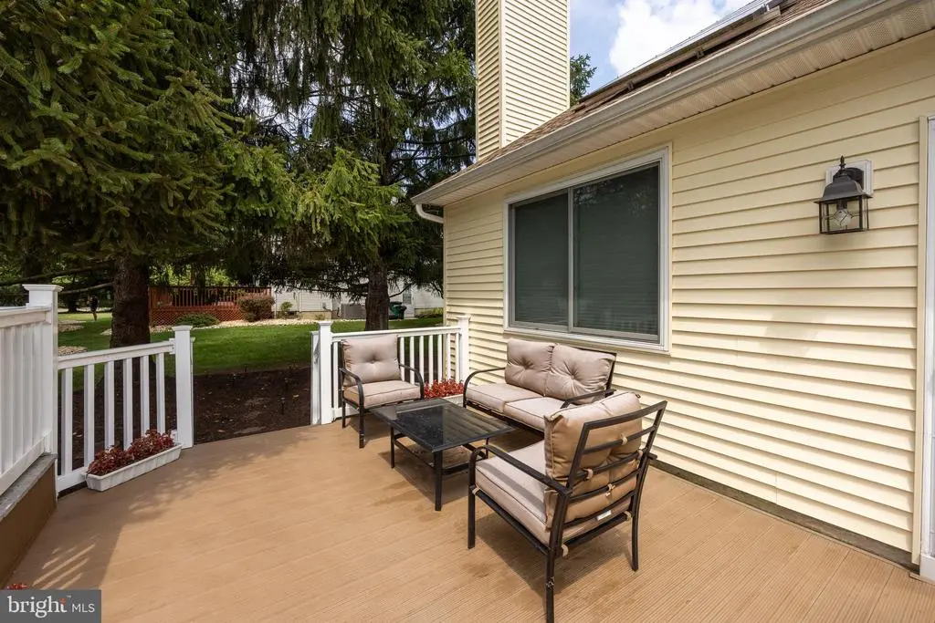 Welcome to this well maintained 3-bedroom, 2.5-bath residence located in the sought-after Robbinsville area. As you enter, you are greeted by an inviting open staircase foyer with elegant ceramic tile flooring. The main level boasts 9-foot ceilings and features a spacious living room and formal dining room with rich hardwood flooring and a large bay window in the dining area, allowing for abundant natural light. The updated eat-in kitchen is equipped with quartz countertops, ceramic tile flooring, and an additional bay window, creating a bright and airy atmosphere. A few steps down, the cozy family room offers a warm ambiance with Pergo floors, a charming fireplace, built-in bookcases, and a skylight, filling the space with natural light. From the family room, step out onto the expansive backyard, perfect for entertaining or relaxing. Enjoy a large deck, an above-ground pool with a Trex deck, and a paved patio ideal for evening gatherings. The backyard also backs up to a private, open space, and includes a shed and an enclosed vegetable garden for added privacy and convenience. Additional features on the main floor include a convenient half-bath and laundry room, which leads to the two-car garage. The second floor hosts three generously sized bedrooms, including the primary suite with vaulted ceilings, double closets (including a walk-in), and a private ensuite bath. Recent updates and amenities include: New Roof installed (2020) Siding (2021) Garage Doors (2021) HVAC System (2023) Water Heater (2023) Energy-efficient Attic Insulation (2023) Solar Panels (leased through 2033) Recessed Lighting Decorative Molding Anderson Windows (2013) Security System This home is ideally situated near Hamilton Marketplace for everyday shopping and dining, as well as Veterans Park and Mercer County Park for recreation. Convenient access to I-95, Route 295, the NJ Turnpike, and the Hamilton Train Station ensures an easy commute to surrounding areas. Don’t miss the opportunity to make this beautiful house your home.