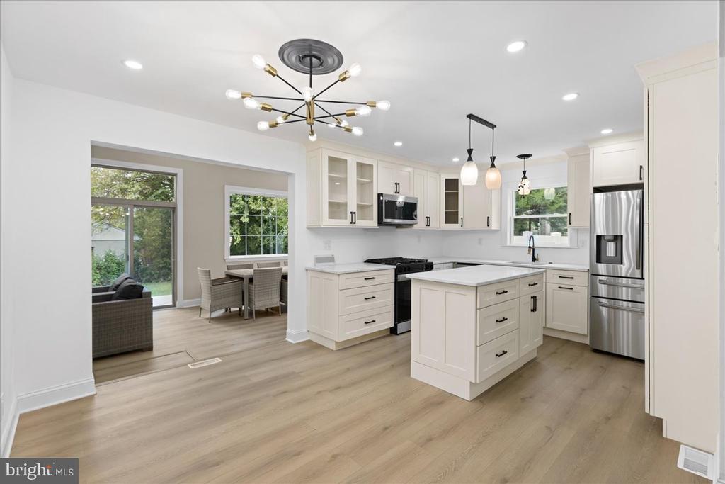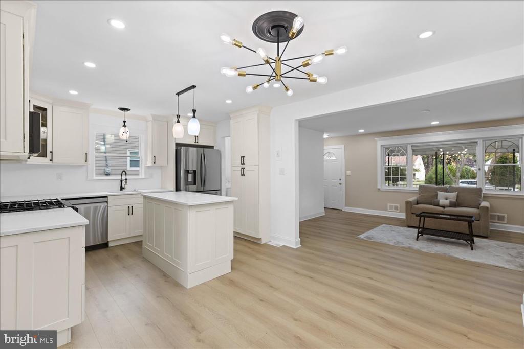 This charming ranch-style home offers warmth and sophistication. Step inside to discover an open floor plan that seamlessly connects the living spaces, creating an atmosphere of spaciousness and light. The family room, conveniently located off the kitchen, is perfect for gatherings, featuring recessed lighting that enhances the ambiance. The kitchen space is both functional and stylish with new stainless steel appliances, quartz countertops, and a central island, ideal for entertaining or enjoying a quiet meal. The three well-appointed bedrooms make it a perfect sanctuary. Ceiling fans throughout the home ensure a comfortable climate year-round, while luxury vinyl plank and ceramic tile flooring add a touch of elegance and durability. The main floor laundry adds convenience to your daily routine. The outdoor space offers potential for personal touches, whether it be a garden oasis or enjoying your new patio perfect for entertaining. Parking is a breeze with a dedicated driveway, ensuring that you and your guests always have a place to park. The exterior of the home is adorned with durable aluminum siding and HardiPlank, providing both aesthetic appeal and low maintenance. Experience the perfect blend of a well-established neighborhood with comfort and style. This renovated home offers a new roof, new HVAC, new flooring and new appliances. The home is conveniently located to local amenities, parks and a local university, TCNJ. Join me at the Open House on 9/20 & 9/21 from 2pm-4pm.