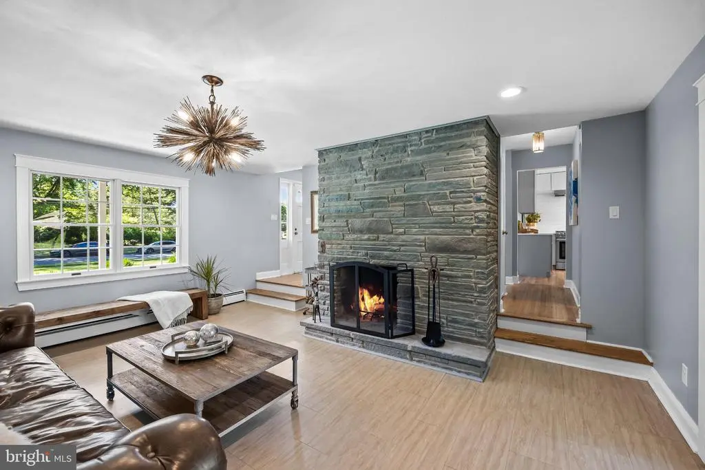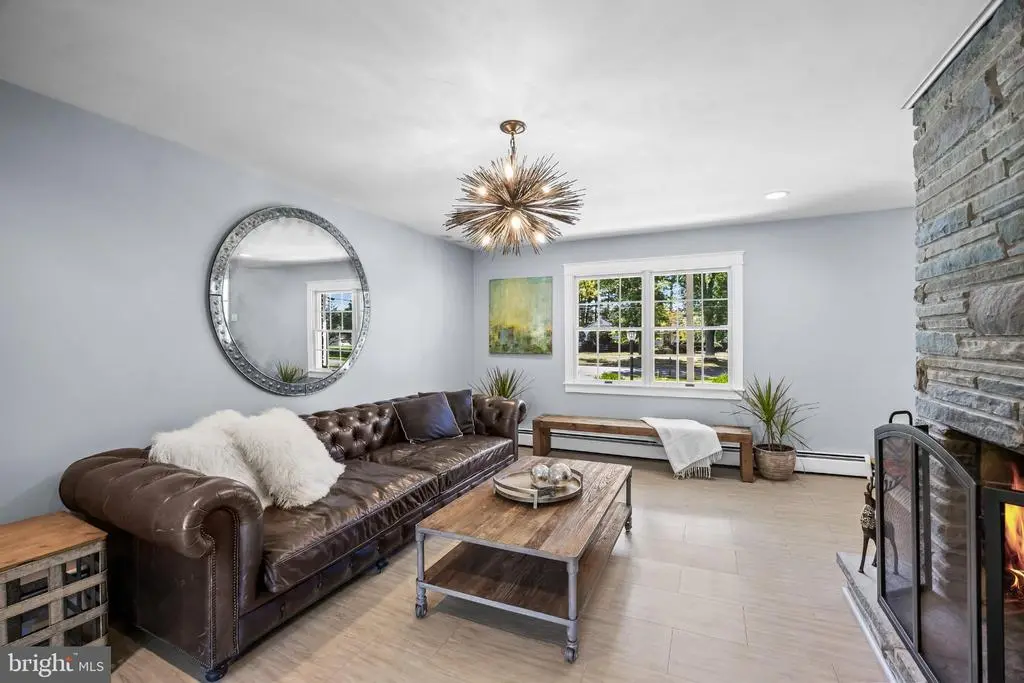 Welcome to Larkspur Lane, one of the most coveted streets in Lawrenceville! Set on on a quiet non-trafficked street, this fully renovated 4-bedroom, 2.5-bath center hall colonial is 100% turnkey. A stone-paved driveway welcomes you with natural light, hardwood floors, and very spacious rooms. The main level is designed for gatherings of all sizes, featuring a living room that comfortably accommodates 20+ guests, a formal dining room, and a high-end eat-in kitchen with quartz countertops, custom cabinetry, and new stainless steel appliances. Just beyond the kitchen, you'll find a modern laundry area and a contemporary powder room. The heart of the home extends into a sunken family room, featuring a dramatic floor-to-ceiling natural stone wood-burning fireplace. Sliders open to a wonderful screened-in three-season sunroom — the perfect setting for morning coffee, casual entertaining, or relaxing in nature. Upstairs, a wide hallway leads to four large bedrooms and two fully renovated bathrooms. The renovated master bath is expanded, which is a rare find in this neighborhood, and has increased the usable square footage significantly. The lower level provides lots of room for storage or can be finished for additional living space. Offering a large yard in a neighborhood of gently winding roads and sidewalks, this home provides easy access to 295 and downtown Princeton, midway between New York City and Philadelphia. This quiet, picturesque street is truly the pride of the neighborhood, and this is a beautifully renovated home with a great floorplan!