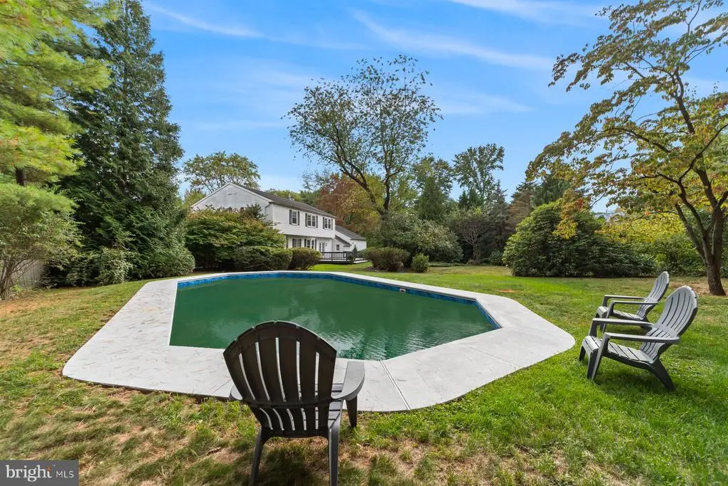Tucked into a quiet cul-de-sac in the sought-after Lawrenceville Green neighborhood, this beautifully renovated 4-bedroom, 2.5-bath Colonial is the epitome of modern living. From the moment you step inside, the home’s fresh updates and thoughtful design choices shine—new laminate hardwood floors, upgraded lighting, and a soothing neutral palette create a sense of elegance throughout. The spacious living room is filled with natural light from three large front-facing windows and flows seamlessly through French doors into the dining room, where a bay window frames peaceful views of the backyard—perfect for gatherings large or small. The showpiece kitchen is both stunning and highly functional, featuring white cabinetry, a marble backsplash, quartz countertops, stainless steel appliances including a gas range, center island with built-in microwave, open shelving, and a beverage station complete with a beverage fridge. A sunny breakfast nook with its own bay window opens to the expansive Trex deck, ideal for outdoor dining and entertaining. Just steps away, the family room offers a cozy raised-hearth fireplace, recessed lighting, and a charming reading nook, while the adjoining sitting room provides even more space to relax. A practical laundry/mudroom with abundant storage and utility sink completes the first level. Upstairs, the primary suite is a true retreat. A spacious bedroom is paired with a private sitting room/den, a walk-in closet with custom built-ins, and a spa-like bath featuring dual vanities with LED-lit mirrors, a seamless glass shower with multiple heads, and a freestanding soaking tub. Three additional bedrooms and a stylish hall bath provide comfort for family and guests. A basement provides additional room for storage. Outside, the .77-acre lot offers plenty of room to enjoy, with a sparkling in-ground pool, expansive Trex deck, and lush lawn for play and relaxation. A three-car side-entry garage adds both convenience and curb appeal. With its prime location close to Princeton and downtown Lawrenceville, this home offers easy access to dining, shopping, and cultural destinations—while providing the peace and charm of a cul-de-sac setting. Every detail has been considered, making 8 Knox Court a home to fall in love with.