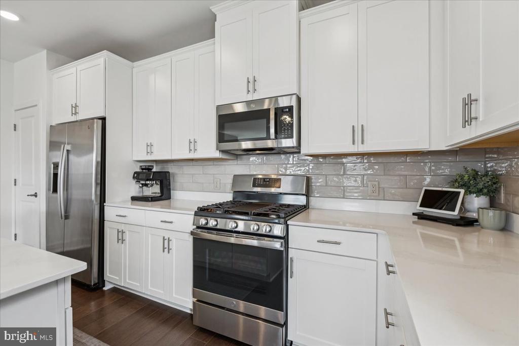 Reduced Price! Light Filled 3 Bed/2.5 Bath End Unit Arnold model Townhome offers upgrades throughout—better than buying new! The only End-Unit townhome for sale in Hopewell Parc with a Premium Location backing to green space and wooded views. Extra windows bring in natural light to both levels! The gourmet kitchen shines with quartz countertops, shaker cabinetry with soft-close drawers, stainless steel appliances including a 5-burner gas range with griddle, custom tile backsplash, upgraded lighting with dimmers, a pantry with added outlets, and convenient upgraded USB-A/C charging ports. Every detail of the interior reflects an elevated design sensibility. Custom painting and hardwood plank flooring throughout all levels transforms the space into a picture-perfect interior designer’s delight. Thoughtful touches include striking shiplap detail in the entryway and main level powder room, custom mirrors, and designer hardware. Adding to the polish are rich window treatments—matching blinds, rods, and curtains—designed to enhance light and frame the serene wooded backdrop while playing off of the dark wood flooring. Upstairs, the primary suite feels like a retreat with a spa-inspired bath, frameless glass shower, quartz vanity, and upgraded fixtures. A Container Store custom closet system maximizes storage, while hardwood flooring and a ceiling fan add luxury touches. Two additional bedrooms also enjoy serene views of the green space—an exceptionally rare feature in Hopewell Parc—making every bedroom in this home uniquely private and light-filled. A designer-finished full bath and a custom laundry with built-in cabinetry and drying racks complete the second floor. Additional features include upgraded mirrors and fixtures in all bathrooms, ceiling fans in every room, and a painted 1 car garage currently used as a home gym. Driveway parking and additional street parking available. Residents of Hopewell Parc enjoy a vibrant new community with a dog park, tot lot, walking paths, and a clubhouse and pool opening soon. Conveniently located in the top-rated Hopewell Valley School District, close by commuter routes, and train service to NYC and Philadelphia, this townhome offers both lifestyle and location. Energy-efficient systems, a tankless water heater, and Lennar’s extended warranties (mechanical through 2026 and structural through 2033) provide peace of mind. PILOT program offers significant tax reduction for the next 8 years.