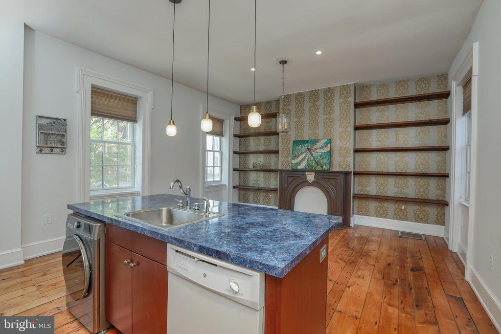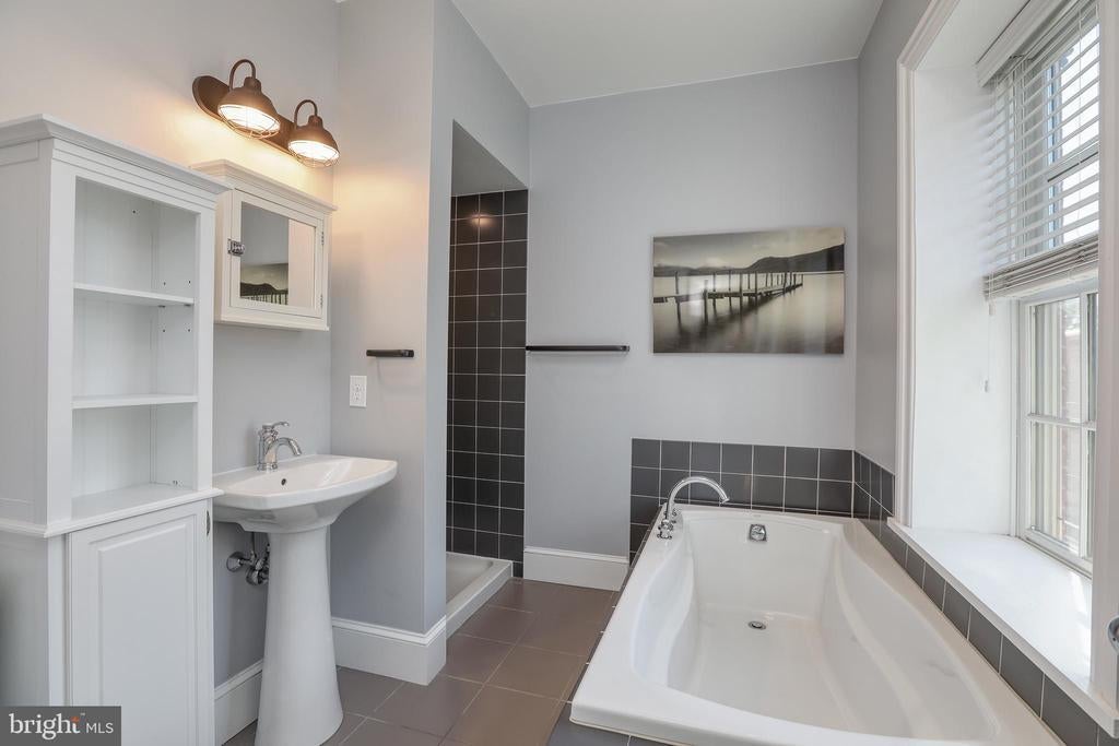 Experience historic charm and modern comfort in this beautifully restored 19th-century Victorian Cracker Factory conversion. This tri-level condo offers a spacious layout with knotty pine and hardwood flooring throughout. The third floor features a serene primary suite with a beautifully updated bathroom showcasing sleek tilework, a deep soaking tub, walk-in shower, and stylish modern fixtures. Large windows allow natural light to fill the space, creating a spa-like retreat. The suite also includes a faux fireplace, walk-in closet, and access to a private outdoor patio. The second bedroom is bright and inviting, while the main bathroom on the second floor features contemporary finishes and clean tiled flooring. The open-concept living room includes built-in shelving and large windows that fill the home with light. The eat-in kitchen is perfect for entertaining, featuring a center island, stainless-White appliances, and ample cabinetry. Additional highlights include a full basement, private garage space, and its own separate entrance—no need to go through the lobby. A lovely outdoor garden area provides the perfect space to relax and unwind. Located in Trenton’s historic district, the Cracker Factory offers a rare blend of industrial character and modern style, close to downtown shops, restaurants, and major transportation.