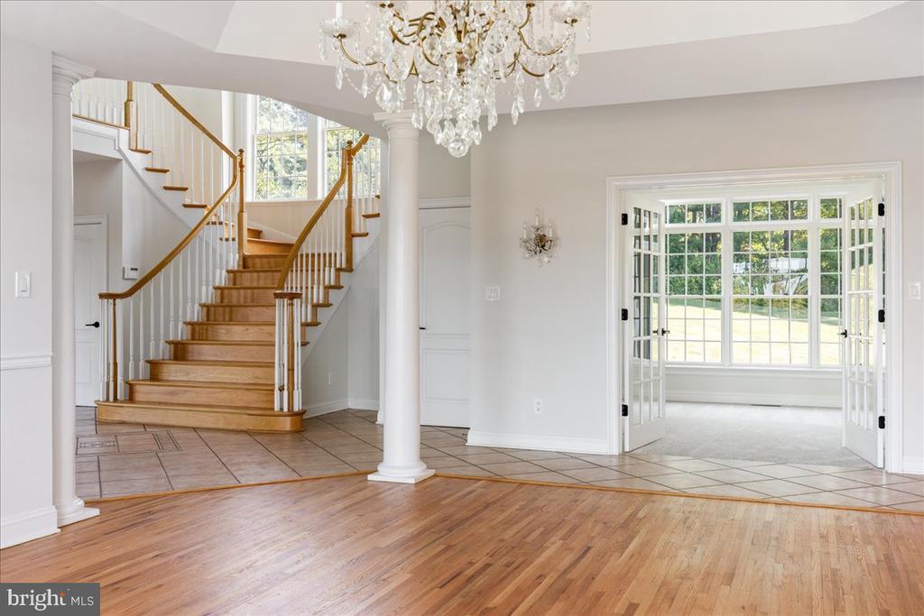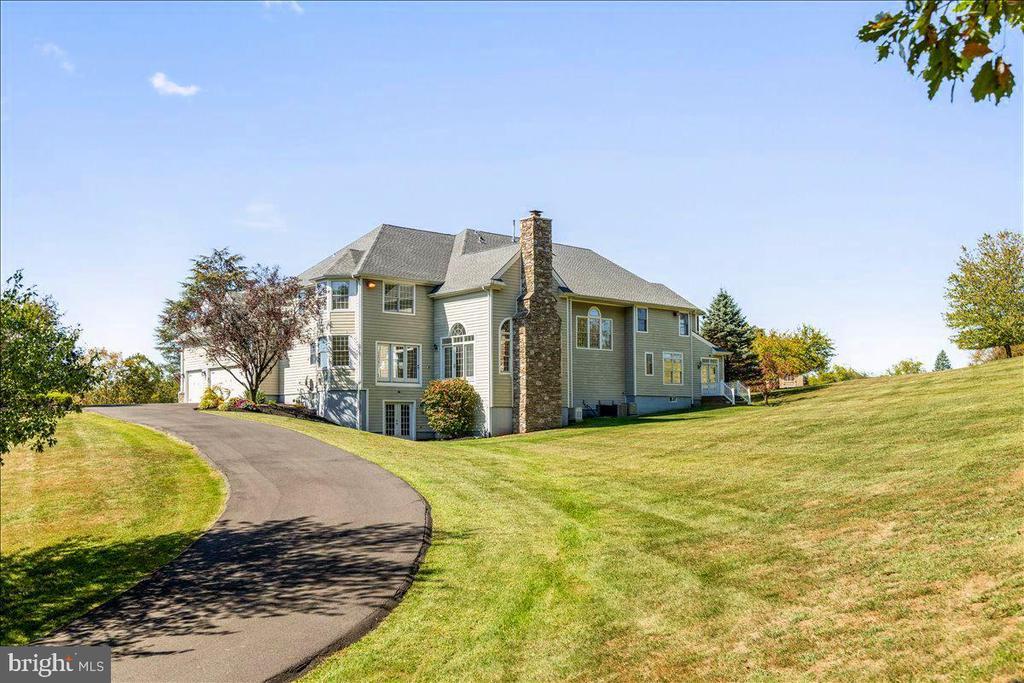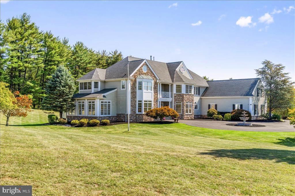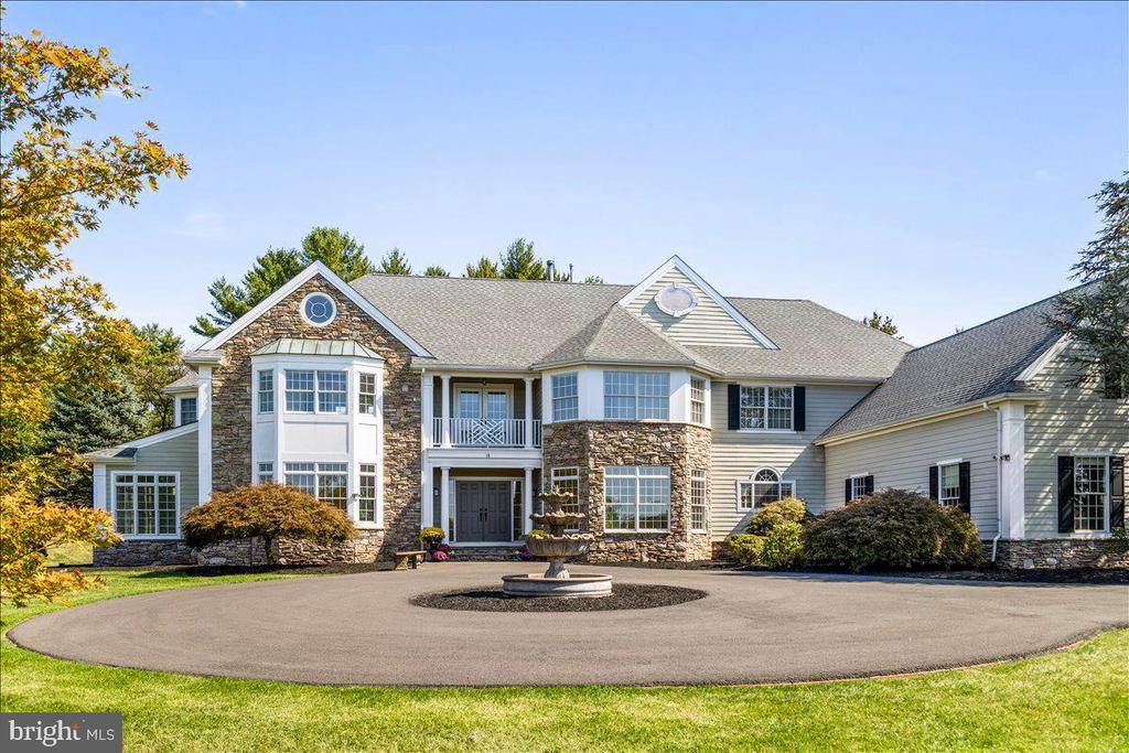Welcome to this stately residence perched on a hill at the end of a quiet cul-de-sac in one of Hopewell Township’s most desirable neighborhoods. Nestled in a serene setting just minutes from the Delaware River and the charming river towns of Lambertville and New Hope, this home offers a rare combination of space, elegance, and convenience. Enjoy the best of both worlds—peaceful suburban living with easy access to Princeton, Philadelphia, and NYC. Step inside through the impressive entryway and be greeted by a grand staircase and a sense of timeless sophistication. To the left, a light-filled sitting room leads to a private office and a sunroom, creating an ideal work-from-home or relaxation retreat. A full bath on this side of the main level adds flexibility for guests. To the right, a formal dining room connects seamlessly to the expansive chef’s kitchen, appointed with a KitchenAid refrigerator, Jennair six-burner gas cooktop, double ovens, quartz countertops, and a spacious island with seating. A sunny breakfast room invites casual dining, while the adjoining family room offers a warm and inviting gathering space. Completing the main floor are a second office, a convenient laundry room, a half bath, and abundant closets and storage throughout. A three-car garage and circular driveway with fountain provide both function and curb appeal. The home’s thoughtful design includes two staircases - one grand in front, and one more discreet in the back - leading to the upper level. Upstairs, five generous bedrooms share two full baths, while the primary suite enjoys its own private wing. This luxurious retreat features soaring ceilings, dual walk-in closets, and a spa-like ensuite bath with soaking tub. The lower level offers a vast unfinished basement with walk-out access to the backyard, rough-in for an additional bath, and ample space to customize as desired. Modern systems include dual HVAC, two water heaters, a sump pump, and the security of a full-house generator. Outdoors, a large grassy yard is perfect for play or entertaining, while the elevated position provides a sense of privacy and open sky. With hardwood and tile flooring on the main level, new interior paint throughout the home, soft carpet upstairs, and meticulous attention to both form and function, this home is a true gem. Combining classic elegance with modern convenience, 18 Todd Ridge Road is ready to welcome its next chapter.