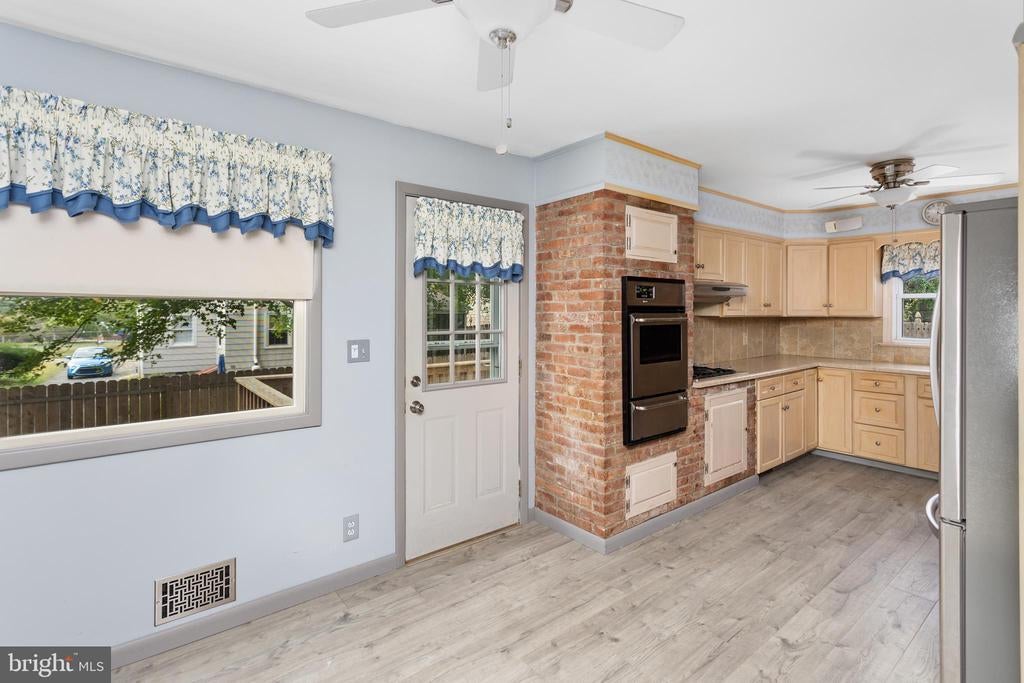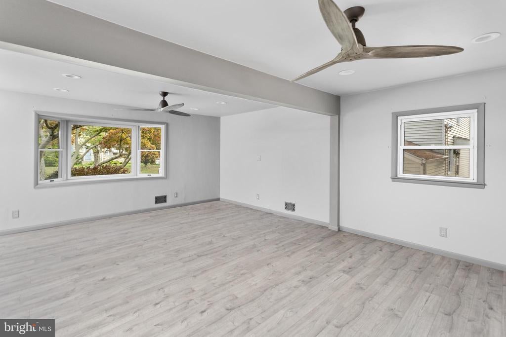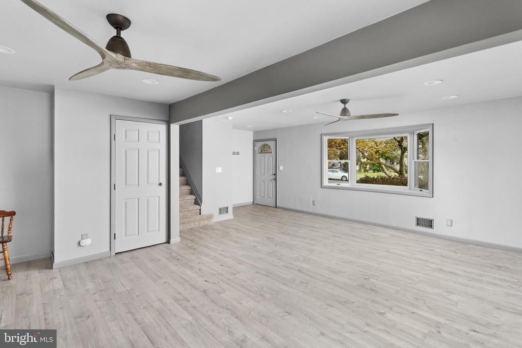 Opportunity awaits in this spacious 4-bedroom, 1.5-bath split-level home, located in Ewing Township. Step inside to a bright and open main level featuring a seamless living and dining area with freshly updated flooring. The generously sized eat-in kitchen includes a built-in oven, gas range, and a charming peek-a-boo window to the living space—ideal for entertaining. Upstairs, you'll find two comfortable bedrooms and a full bath on the second level. The third level offers even more space with an additional bedroom and a large primary suite, complete with a walk-in closet. Original hardwood flooring lies beneath all carpeting except in the primary bedroom. The lower level features a versatile flex space that could serve as a cozy family room, home office, or be easily converted back into a garage. This level also includes a convenient half bath and laundry room. Step outside to a fully fenced backyard complete with large wooded deck—an open canvas ready for your landscaping vision or garden retreat. Located just minutes from the train station with direct routes to both Philadelphia and New York, as well as easy access to I-95 and major highways, this home offers space, flexibility, and unbeatable convenience. Bring your creativity and make it your own!