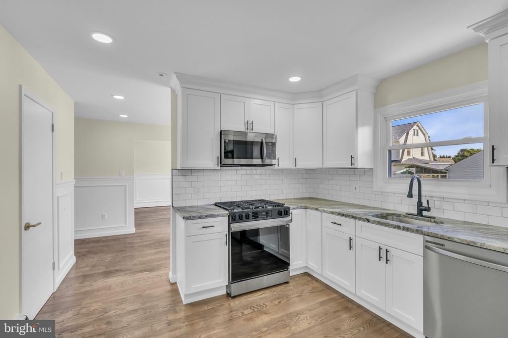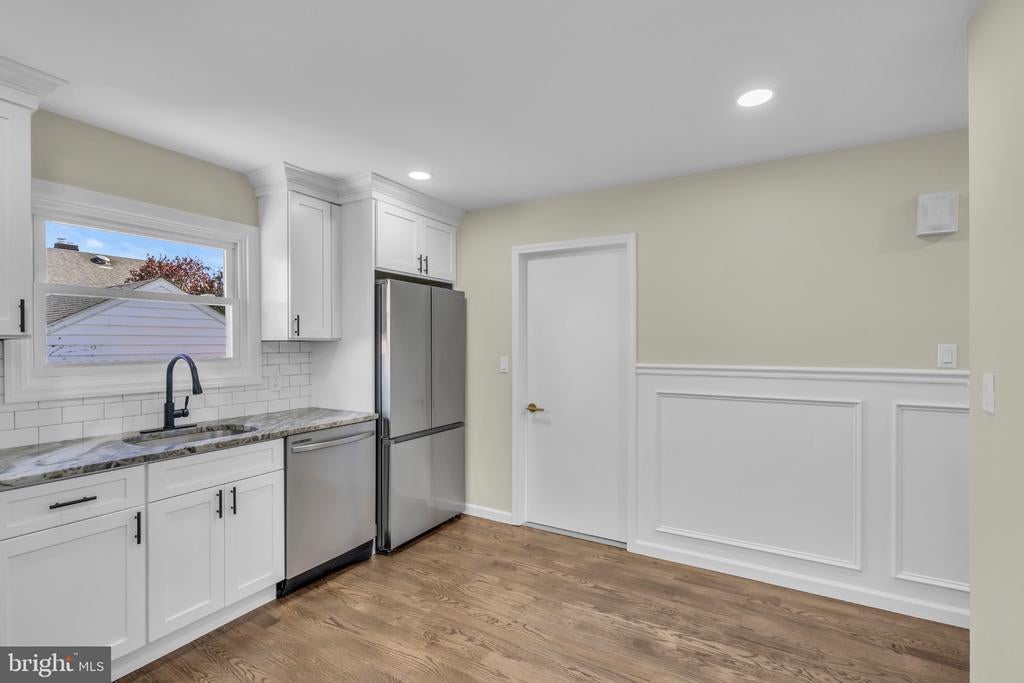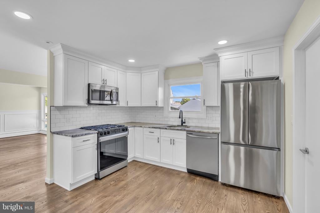 This 2-bedroom ranch is great for all ages!! Featuring new hardwood floors, kitchen with granite countertops & stainless steel appliances, brand new AC unit, separate laundry room with slop sink, and an attached garage with electric opener. Off the kitchen you'll find a private staircase leading straight to the attic, great for easy storage access, PLUS the large basement offers endless potential, already equipped with a wet bar and walkout access to the backyard. Outside, enjoy a partially fenced yard with a patio, perfect for relaxing or entertaining. Located just 12 minutes from the train station and walking distance to bus routes. With thoughtful updates and plenty of room to grow, this home is ready for its next owner. Schedule your showing before it's gone!