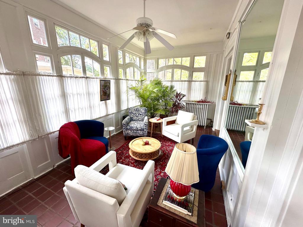 Come experience the timeless charm and elegance of this stately three-story brick home, built in 1916 and gracefully perched atop a hill in Trenton’s prestigious Cadwalader Heights neighborhood—an area masterfully designed in the 1880s by famed landscape architect Frederick Law Olmsted, creator of New York’s Central Park. At approximately 4,400 square feet of living space, this grand residence features six bedrooms and four beautifully appointed bathrooms providing the perfect blend of historic character and modern comfort for family living and entertaining. From the front steps take note of the finer details: arched doorway with opposing columns and leaded glass windows, large eight-over-eight windows with historic shutters and keystones, arched gabled dormers, original slate roof, and brick quoins on the outer corners, all forming a symmetrical and appealing presentation. Upon entry, you'll find yourself in the grand 23-foot-long foyer. Notice the intricate millwork, wide trim baseboards, and deep crown moldings, which set off a striking staircase. This exceptional woodwork continues through to the dining room with two built-in china cabinets and a window seat, as well as to the living room with its built-ins, mantel, and detailed fireplace surround. The adjoining sunroom with quarry tiled floor, accessible from the living room via two sets of double doors, is airy and bathed in light from three walls of windows and another double door opening to the courtyard. Hardwood floors are notable throughout. The kitchen combines beauty and function, showcasing porcelain tile flooring, recessed lighting, a new professional-grade six-burner dual-fuel range, a spacious 26+ cu. ft. refrigerator, new high-end dishwasher, and abundant counter space, cabinetry, and drawers. There is also a nine-foot walk-through butler’s pantry with built-ins and an additional refrigerator, adding both charm and convenience. Winding your way back to the foyer, you'll pass the first-floor powder room conveniently tucked under the staircase. Ascend the stairs to see custom leaded windows on the interior library wall where a corner wood-burning fireplace and two walls of built-in bookcases create a warm and inviting retreat. The curved open foyer at the top of the stairs leads to four bedrooms and two full baths. The current owners have transformed one set of Jack-and-Jill bedrooms, connected by a full bath, into a comfortable and spacious primary suite with three closets. On the finished third floor there are two more bedrooms off the center hall, a sizable flex room, and a full bath with soaking tub and heated floor. The full basement contains the laundry, utilities and an outside entrance. This property also comprises a 19-foot enclosed back porch with jalousie windows, new screens, and custom wood shades; a courtyard; and a detached 2 1/2 car brick garage with mechanic’s pit and automatic door openers. Both the house and garage have the same copper-lined interior gutter system and Vermont green slate roofing known for having up to a 175-year life expectancy. The home is situated directly across the street from Trenton's famed nearly-100-acre Cadwalader Park where residents can enjoy picturesque views and easy access to lush green spaces, walking and running paths, a picnic pavilion, boating on the canal, tennis, baseball, and more. This prime location offers a perfect balance of tranquility and neighborhood community, making it an ideal place to call home. Additionally, it is conveniently close to public schools, within 30 minutes to multiple, highly regarded private schools, and less than 10 minutes from train stations to NYC, Philadelphia, and beyond, as well as the Trenton Mercer Airport, and access to major roadways. Don't miss this opportunity to own this piece of history in one of Trenton’s most sought-after neighborhoods. Schedule your private tour today; you won’t be disappointed.