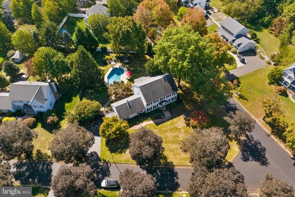 Nestled on a quiet street at the beginning of a cul-de-sac in the sought after Fox Run neighborhood. The main level features spacious rooms and a convenient laundry room. French doors connect the living room to the family room, which features a wood-burning fireplace, creating an open and inviting flow. The eat-in kitchen boasts a breakfast bar, pantry, recessed lighting, and plenty of cabinetry and counter space, and includes a sliding door leading to the bright sunroom equipped with a gas heater—perfect for year-round enjoyment. A formal dining room rounds out the main level, ideal for hosting gatherings. Upstairs, the primary suite offers a beautiful Primary Bedroom & Bath and a nice size sitting area. 3 additional bedrooms and a shared full bath provide comfort and flexibility for family or guests. Main level-Step outside to your secluded backyard oasis - featuring a patio & deck area with an outdoor shower overlooking the built-in saltwater inground pool—perfect for summer relaxation and entertaining. A fenced-in yard, long driveway, and two-car garage complete this exceptional property. Lower level has a partially finished basement which is carpeted with recessed lighting & drainage. Plenty of storage space! Extended Laundry Room & Garage. Many upgrades including hardwood floors, stunning oversized sunroom over looking the backyard paradise. Conveniently located near Robbinsville township top rated schools, parks, shopping, and major highways. This Fox Run Colonial truly combines location, luxury, and lifestyle. Welcome home!