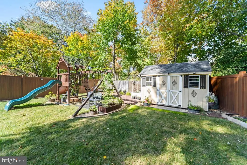 Every detail has been thoughtfully updated in this beautifully maintained 4-bedroom, 2.5-bath Colonial in the heart of Lawrence Township. With 2,292 sq. ft. of living space, this home combines timeless design with modern comfort. A welcoming front entry opens to a spacious living and dining area accented by wainscoting, custom trim, and gleaming hardwood floors. The chef-inspired kitchen features 42-inch American Woodmark cabinetry, travertine backsplash, Namib Gold granite countertops, and stainless-steel appliances, including newer GE gas range and microwave (2023), Samsung refrigerator (2024), and Miele dishwasher (2025). Upstairs, the generous primary suite offers dual closets and an updated ensuite bath with travertine tile shower and floors. The additional bedrooms provide ample closet space and share a stylish hall bath with beadboard ceiling, granite-topped vanity, and Kohler fixtures. A convenient powder room and dedicated laundry area complete the main level. Major system improvements include a new roof and plywood (2022), encapsulated crawlspace with sump pump and dehumidifier (2022), 50-gallon Bradford White water heater (2022), and a smart Wi-Fi garage opener (2023). ADT-monitored security system, attic fan, and motion-activated exterior lighting add everyday peace of mind. Step outside to a private backyard oasis featuring a new vinyl fence (2023), landscaped gardens with irrigation system, and a 10x20 pergola (2025) with adjustable louvers for all-weather enjoyment. The attached one-car garage, large attic with plywood flooring, encapsulated crawling space and garden shed offer great storage options. Centrally located just 0.3 mi from Lawrence Shopping Center and Lidl, with easy access to Route 1, I-295, and Princeton Junction trains. Nearby parks, local dining, and schools make this home a standout in both comfort and convenience.