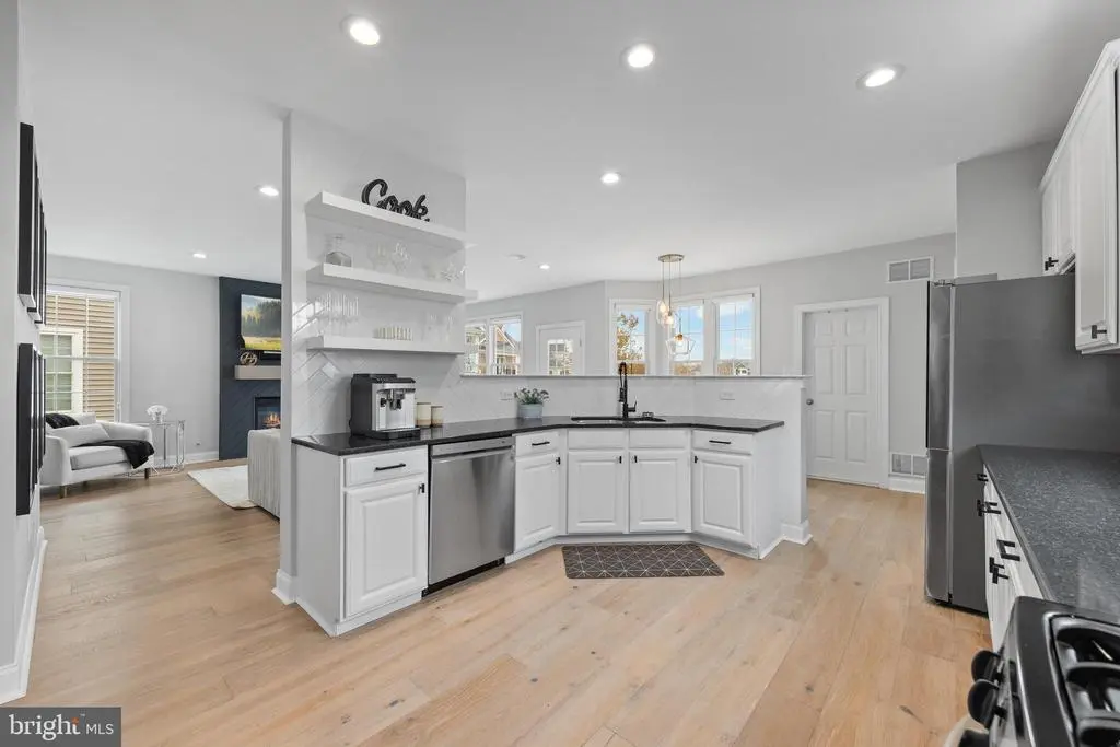 Welcome to this stunning northwest facing 4-bedroom, 2.5-bath home perfectly situated in Robbinsville’s sought-after Town Center neighborhood, just steps from the lake. Thoughtfully designed with an open floor plan, this home blends elegant craftsmanship with modern upgrades for easy, comfortable living. Enjoy outdoor living on two spacious porches—one on each level—or take in peaceful water views from the brand-new Trex deck overlooking the lake, complete with built-in lighting for relaxing evenings. Enjoy a brand-new fence and and expanded driveway with sleek pavers. Inside, the family room and primary bedroom both offer beautiful lake views, filling the home with natural light and serene ambiance. The interior showcases a custom fireplace, intricate molding, and beautiful custom woodwork in the bedrooms. The breakfast nook features a built-in bench—perfect for casual dining or cozy mornings with a view. A custom staircase serves as a striking architectural centerpiece, while the upgraded half bath and upstairs hall bath, along with a new HVAC system and water heater, provide modern comfort and peace of mind. Nestled on a premium lot in the heart of Robbinsville’s Town Center—just moments from shops, dining, parks, and community events—this rare home offers the perfect blend of lakeside serenity and small-town convenience, with unobstructed lake views that are truly one of a kind.