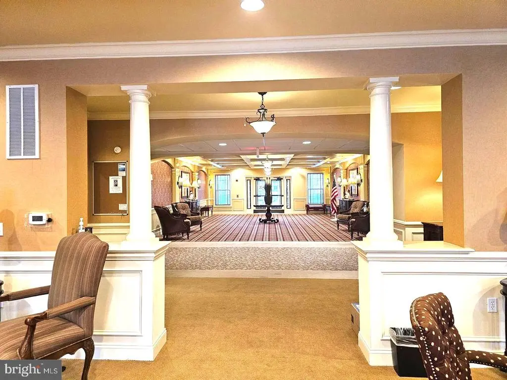 Welcome to 1121 Colts Circle, a freshly painted first-floor condo in Carriage Park at Lawrence, a 55+ community known for its comfortable layout and convenient location. This two-bedroom, two-bath home offers a practical floor plan with a spacious living/dining area and a kitchen with generous cabinetry and plenty of workspace. Being on the first floor makes access simple—no stairs, no elevator waits, and close proximity to the assigned parking spot. The primary bedroom suite includes a walk-in closet and a private bath with a double vanity, soaking tub, and separate shower. The second bedroom, positioned on the opposite side of the unit, works well for guests or a home office and has a full bath nearby. Additional highlights include in-unit laundry, multiple walk-in closets, and a dedicated basement storage space. Residents of Carriage Park enjoy a clubhouse with a fitness center, swimming pool, game rooms, and library, along with indoor mail delivery and close proximity to the Senior Center, library, and local shopping. At least one resident must be 55 or older.