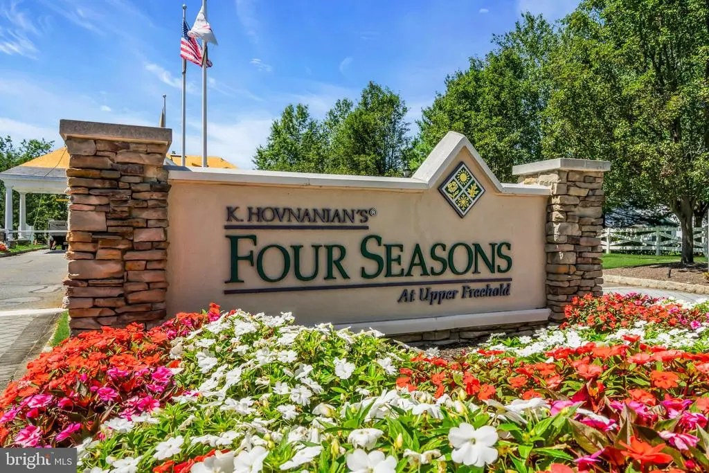 Welcome to 40 Bunker Hill Drive, a sunlit gem in the sought-after Four Seasons at Upper Freehold 55+ community. This stunning Captiva Model blends timeless elegance with modern convenience, featuring gleaming wood floors, recessed lighting, ceiling fans, and a gourmet eat-in kitchen with 42” cabinetry, stainless steel appliances, quartz countertops, custom tile backsplash, and an under-mount stainless steel sink. Enjoy morning coffee in the sunroom, while dedicated spaces for a formal living room, dining room, and family room offer the perfect setting for grand entertaining and everyday comfortable living. The expanded primary suite features two spacious walk-in closets and a luxurious en-suite bath, complete with a soaking tub, stall shower, dual vanities, and a dedicated makeup area. The second bedroom is equally inviting, with access to a beautifully renovated full bath. A rear staircase leads to a generous bonus room above the garage, perfect for storage or hobbies. Step outside to a private patio overlooking professionally landscaped grounds, complete with an electric retractable awning and built-in gas line for grilling. Recent upgrades include a new roof, solar panels (with no payments to the new Owner), a new water heater, a new sliding glass door, and multiple replaced windows—offering peace of mind and enhanced energy efficiency. Four Seasons is renowned for its vibrant community, scenic surroundings, and unparalleled access to shopping, dining, and major transportation routes.